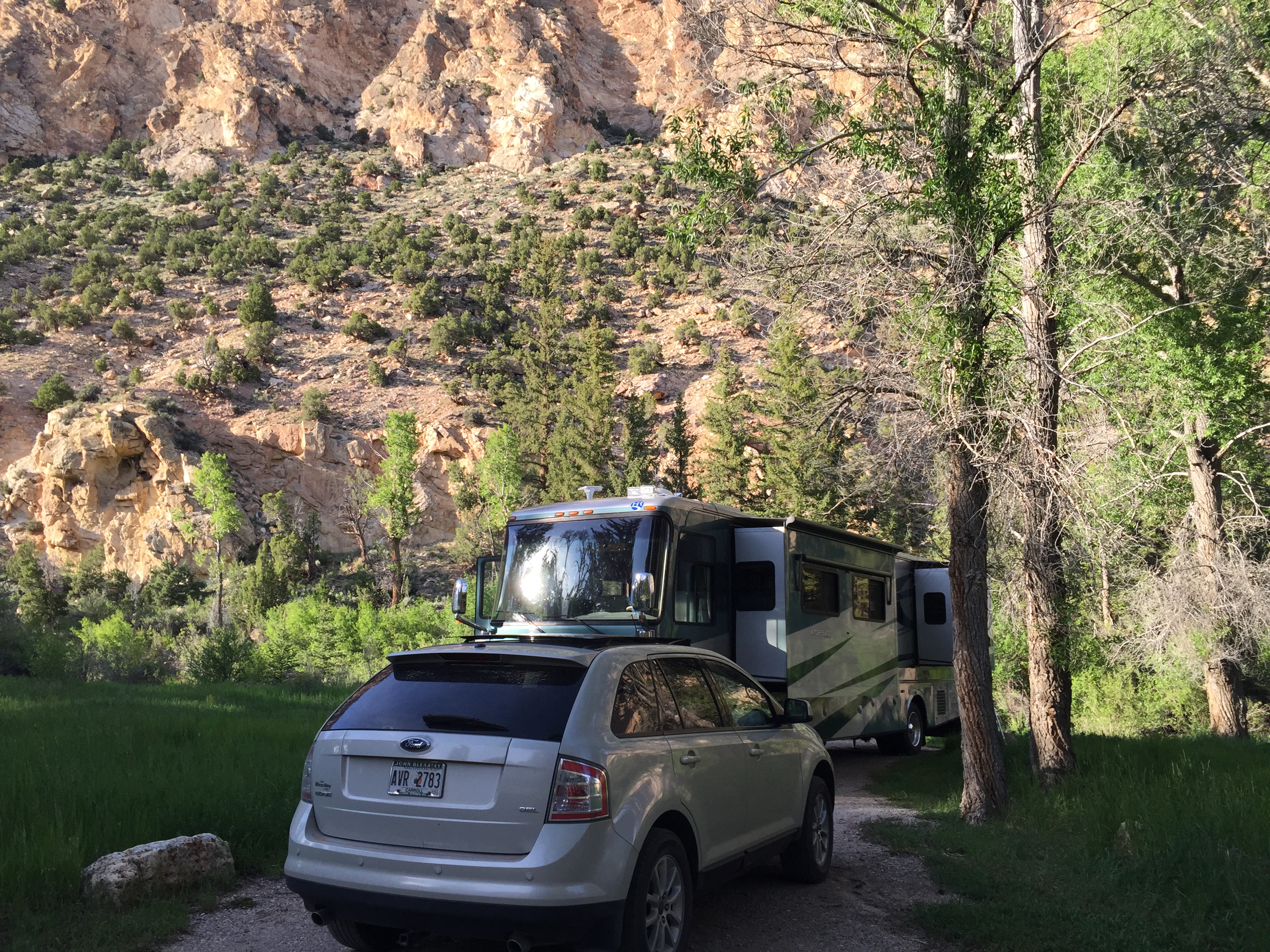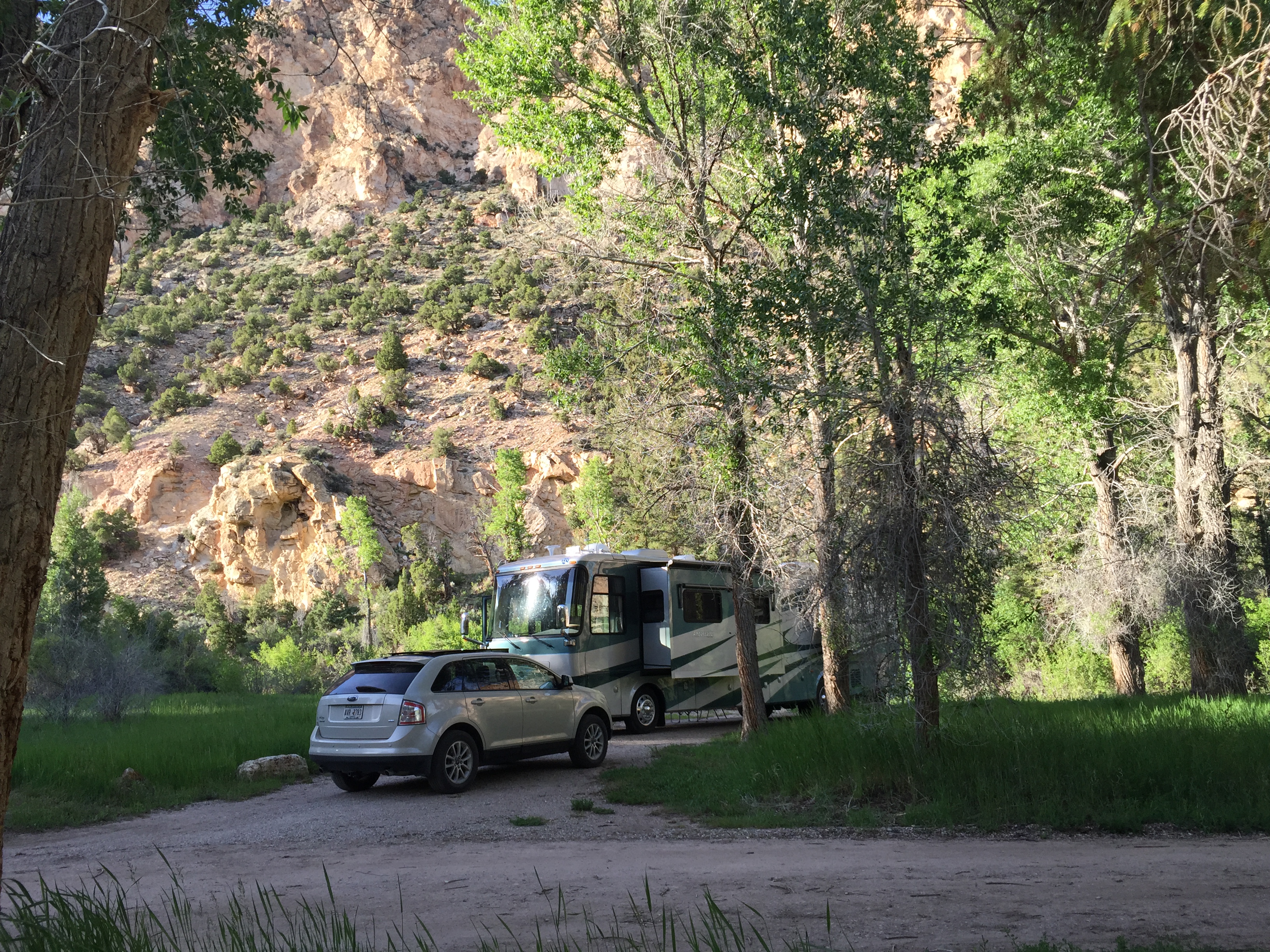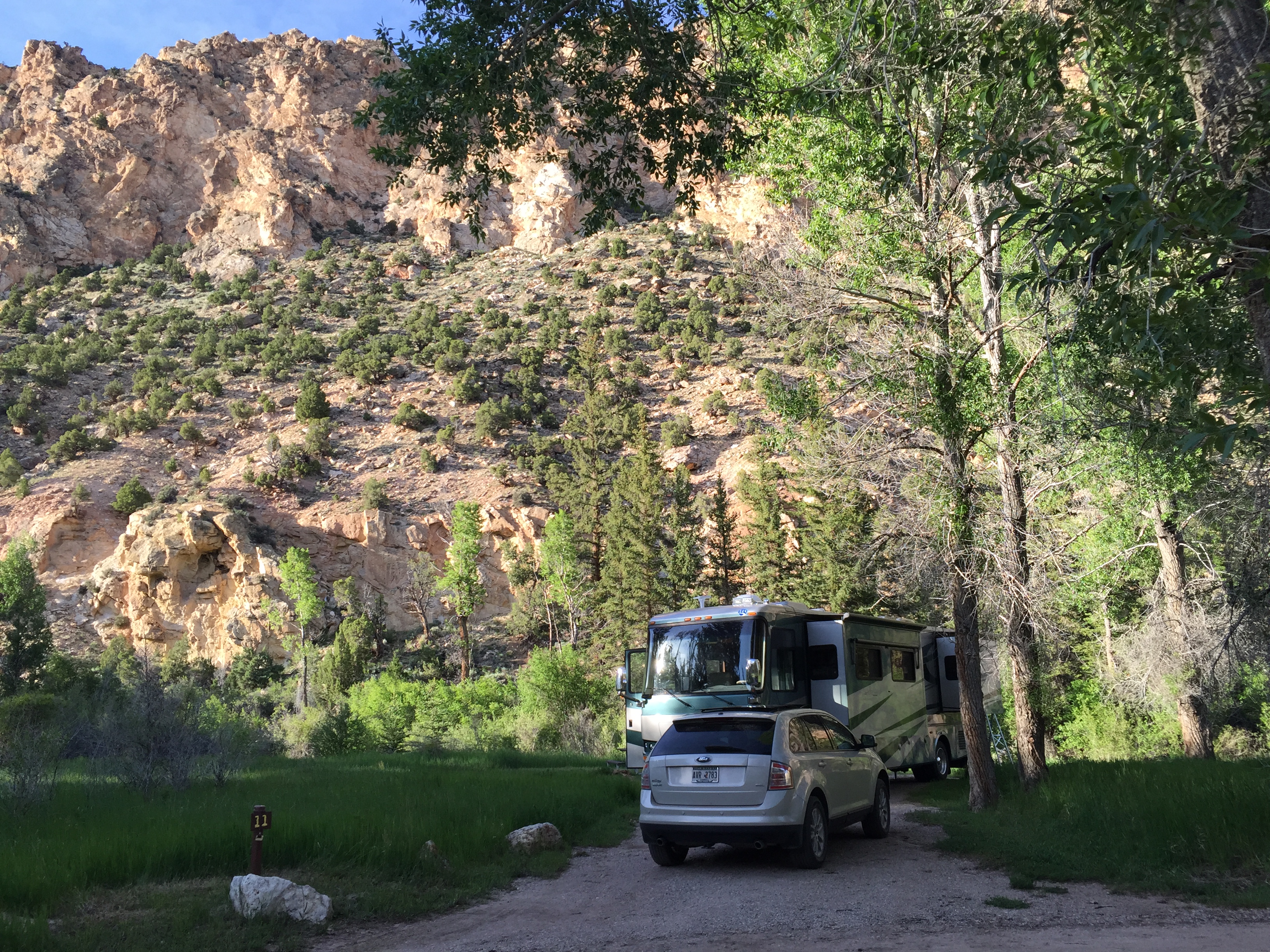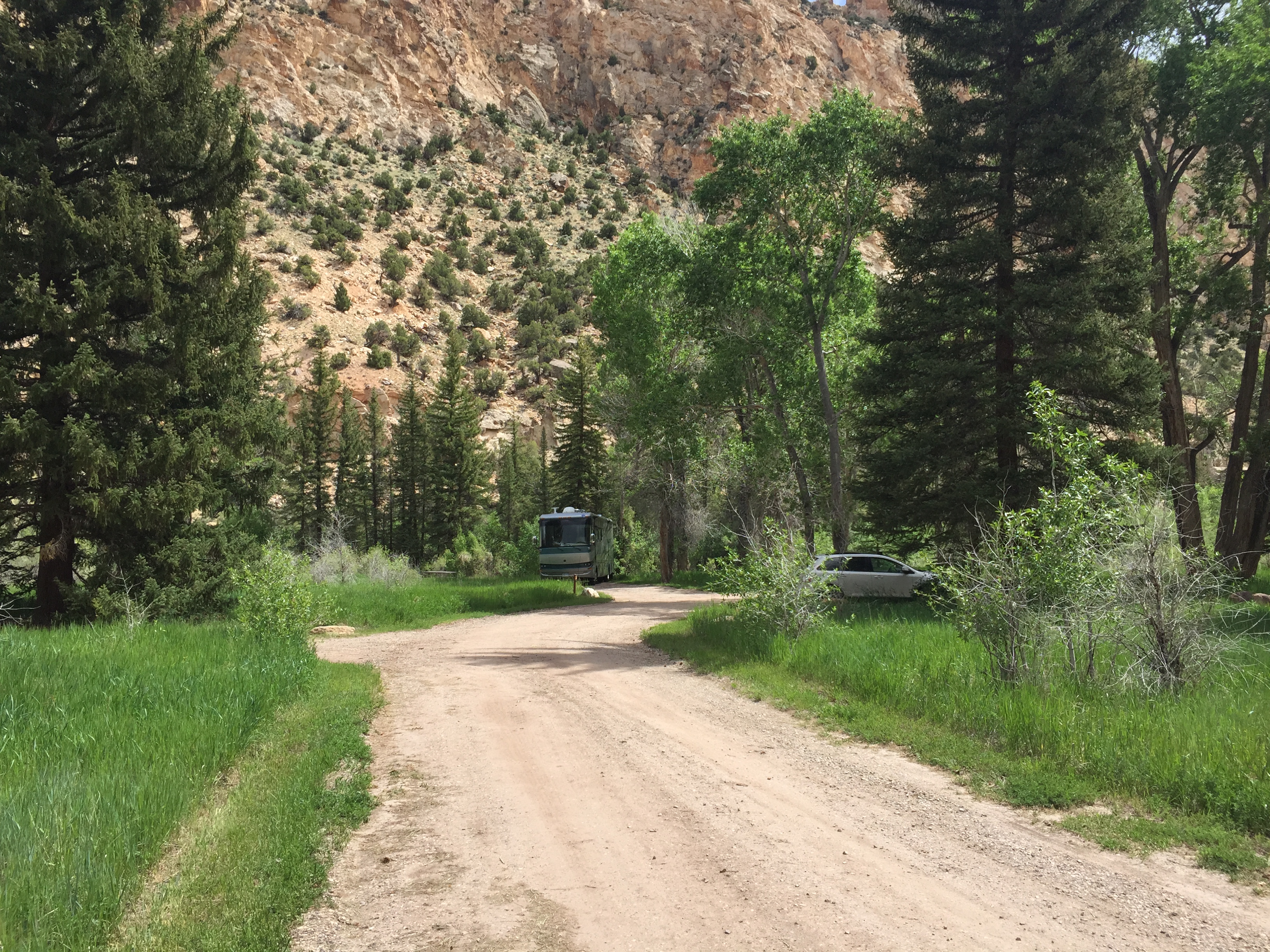 Setting:Secluded next to a small river with canyon walls on two sides. Beautiful views & quite.