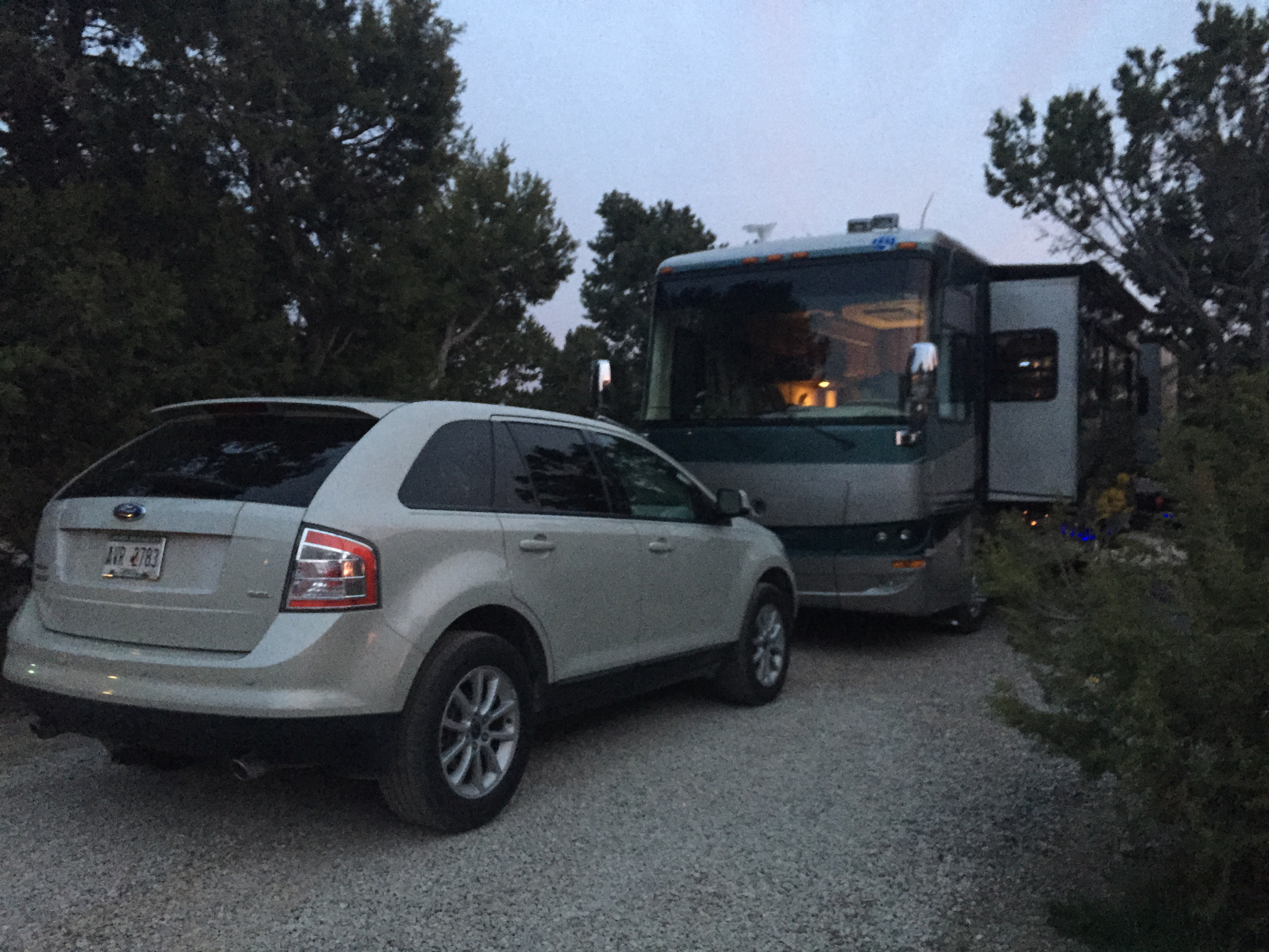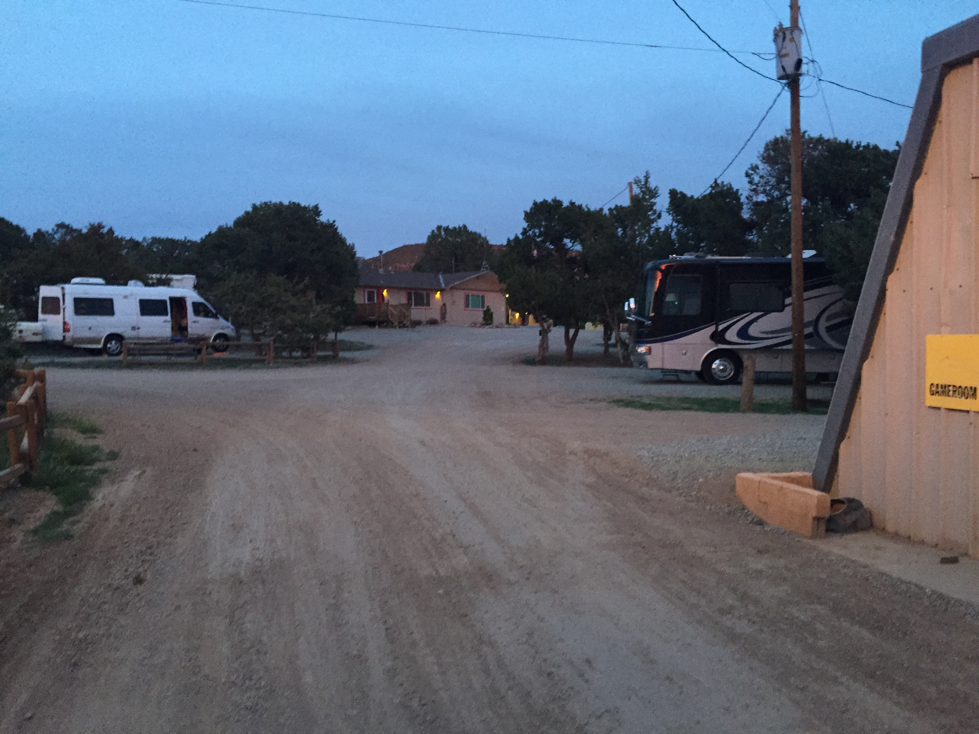 Setting: This is a small campground and is off I-25 east of Santa Fe. The site was very tight for our 40 foot motorhome; when the slides opened on both sides there was no room left to hardly move. It is dark and quiet at night. The exit close to the park is currently closed and requires a 6+ mile round trip to get in and out. The cost is high for the location and time of year.