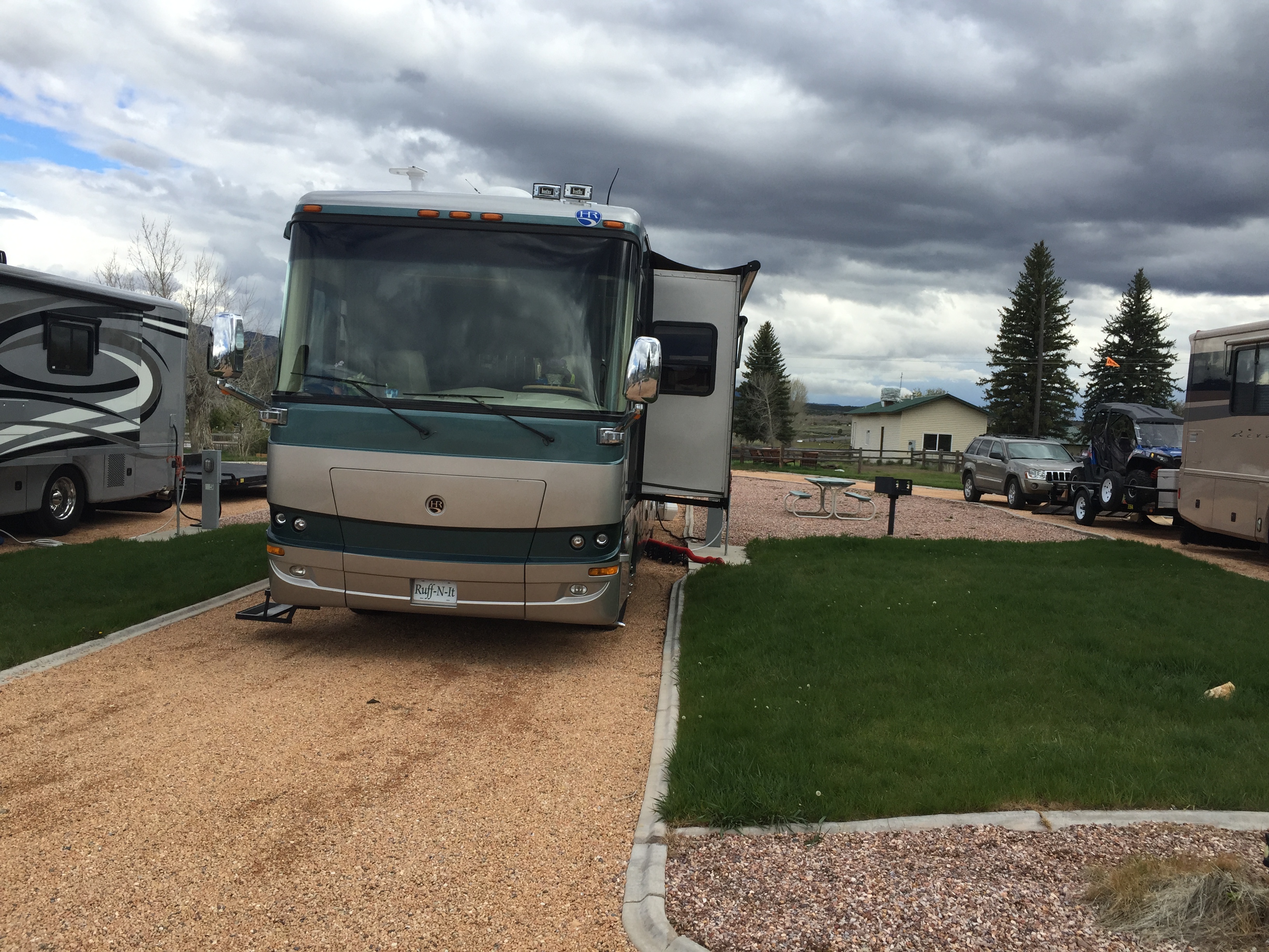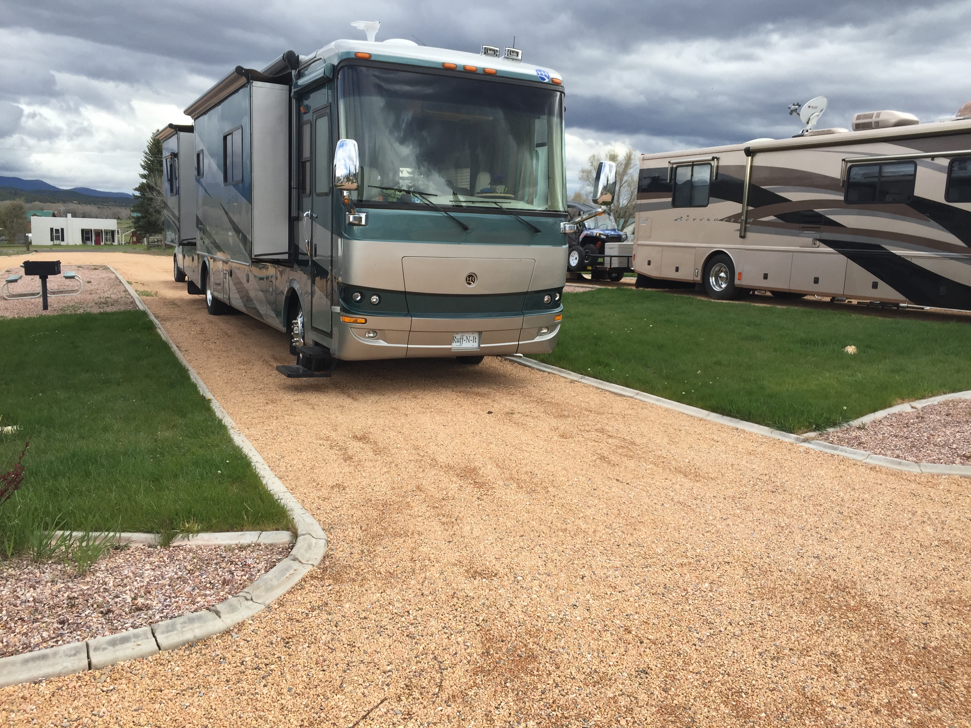 Setting:This is a small campground on the Main street of Hatch, its quiet and well maintained with lovely views of the mountains and pretty landscaping. Level sites with long pull throughs, plenty of space for your RV and towed, no need to unhook. There is no laundry but the bathrooms are spotless. Small local shops and restaurants close by, handy for visiting Bryce, but no crowds. We ate over the road from the campground at the Mountain Harvest Restaurant, good food and good service.