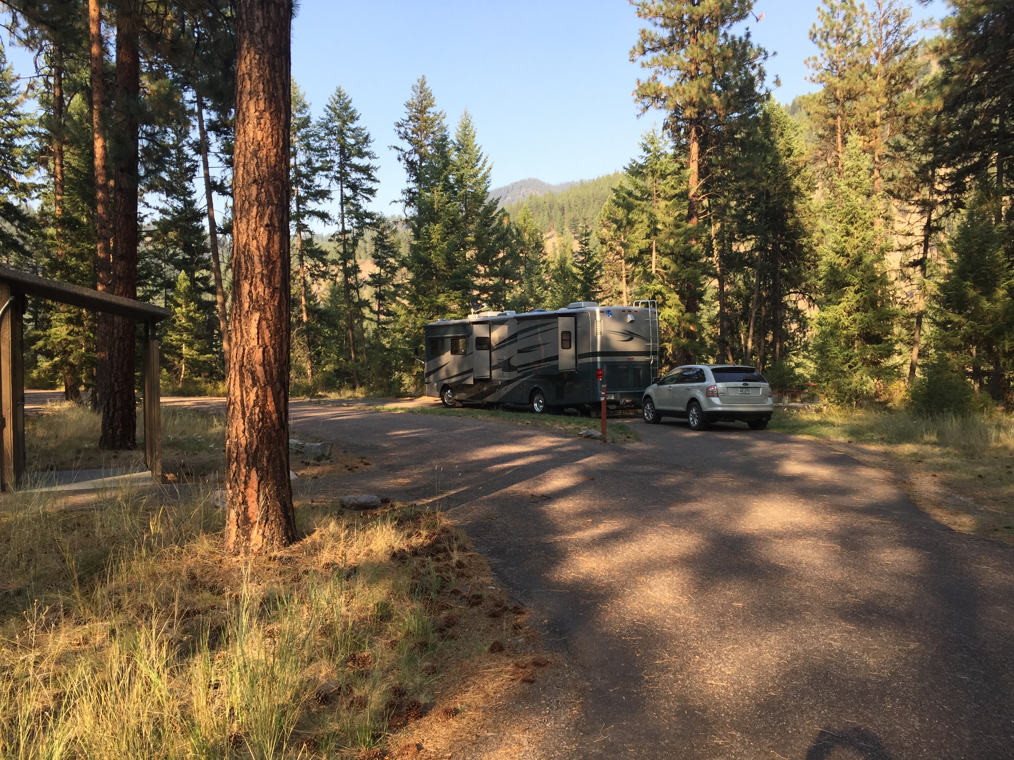 Location: Off Interstate 90, either east or westbound, this campground is located 11 miles east of Superior, Montana at mile marker 58. There is no exit ramp so follow the campground signs, and drive through the rest area to access the campground entrance.