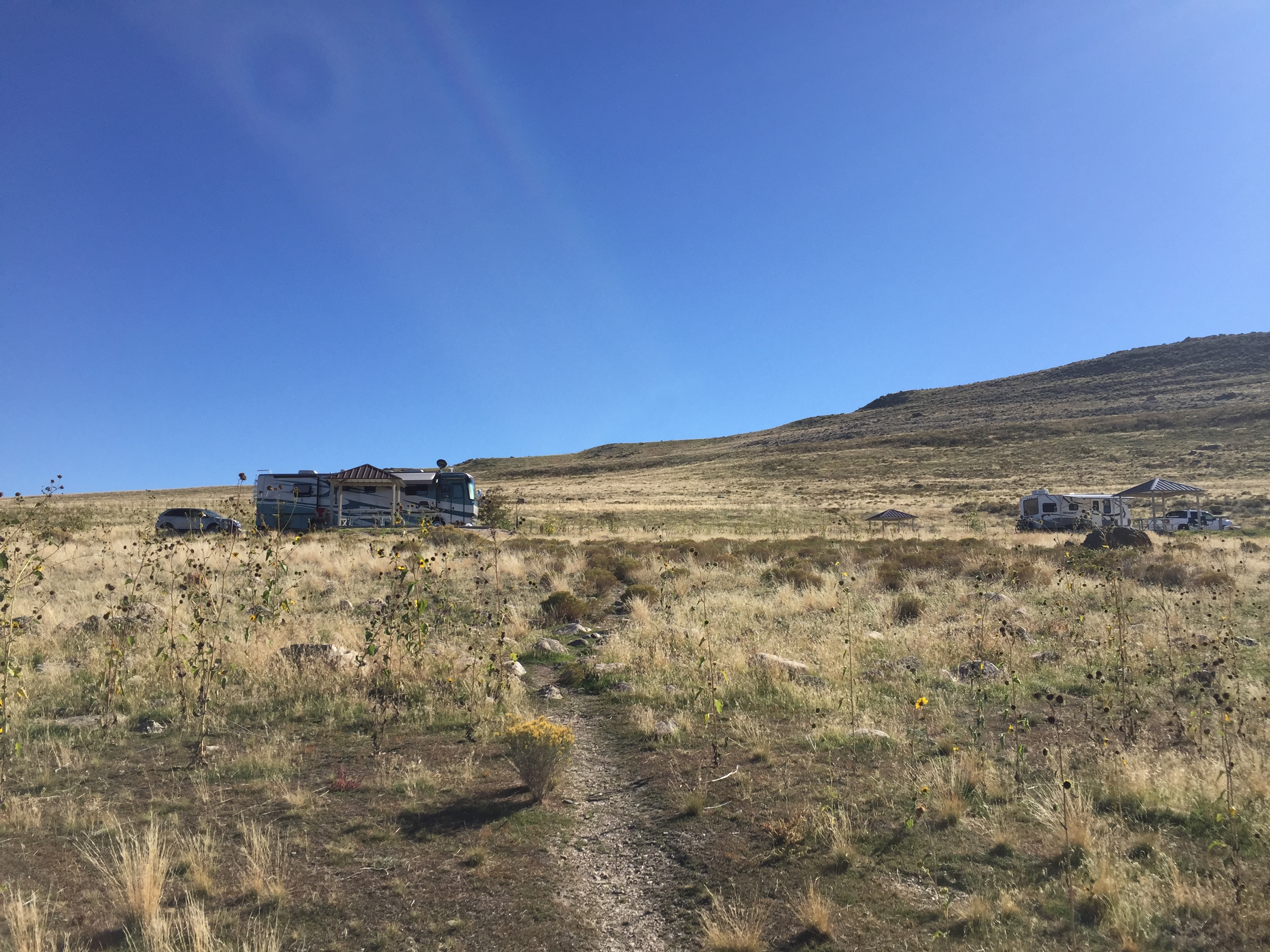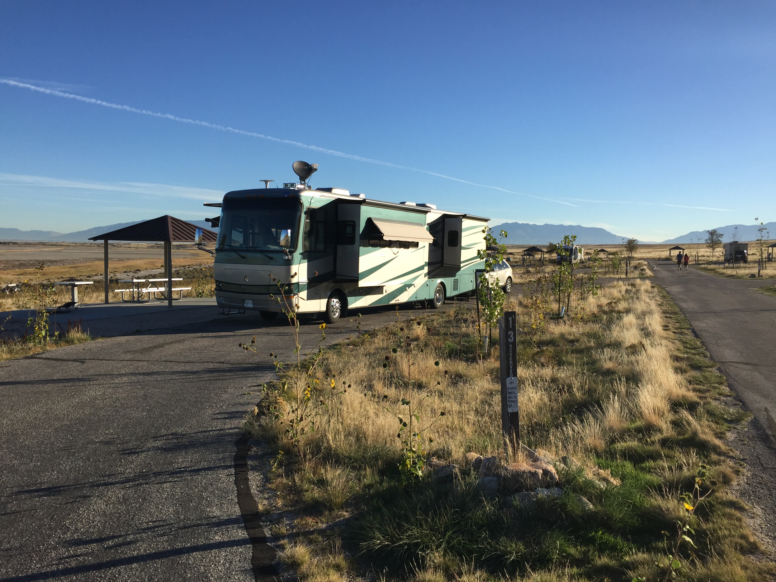 Setting: Antelope Island is the largest island in Great Salt Lake and can be reach by a 7-mile road across the lake from Syracuse. It’s a unique place with very little traffic, lots of views, miles of hiking trails, beach walks, marina, visitor center and historic ranch (a must see for anyone that grew up on a farm). We saw Buffalo and Antelope free roaming over the island and got some great pictures. There are 2 camping areas on the island, both on the north side (Bridger Bay for RVs / Tents) and (White Rock groups camping). Bridger Bay has 26 spacious paved sites with good separation. We visited in October so did not experience the biting gnats that are bad from April-June .