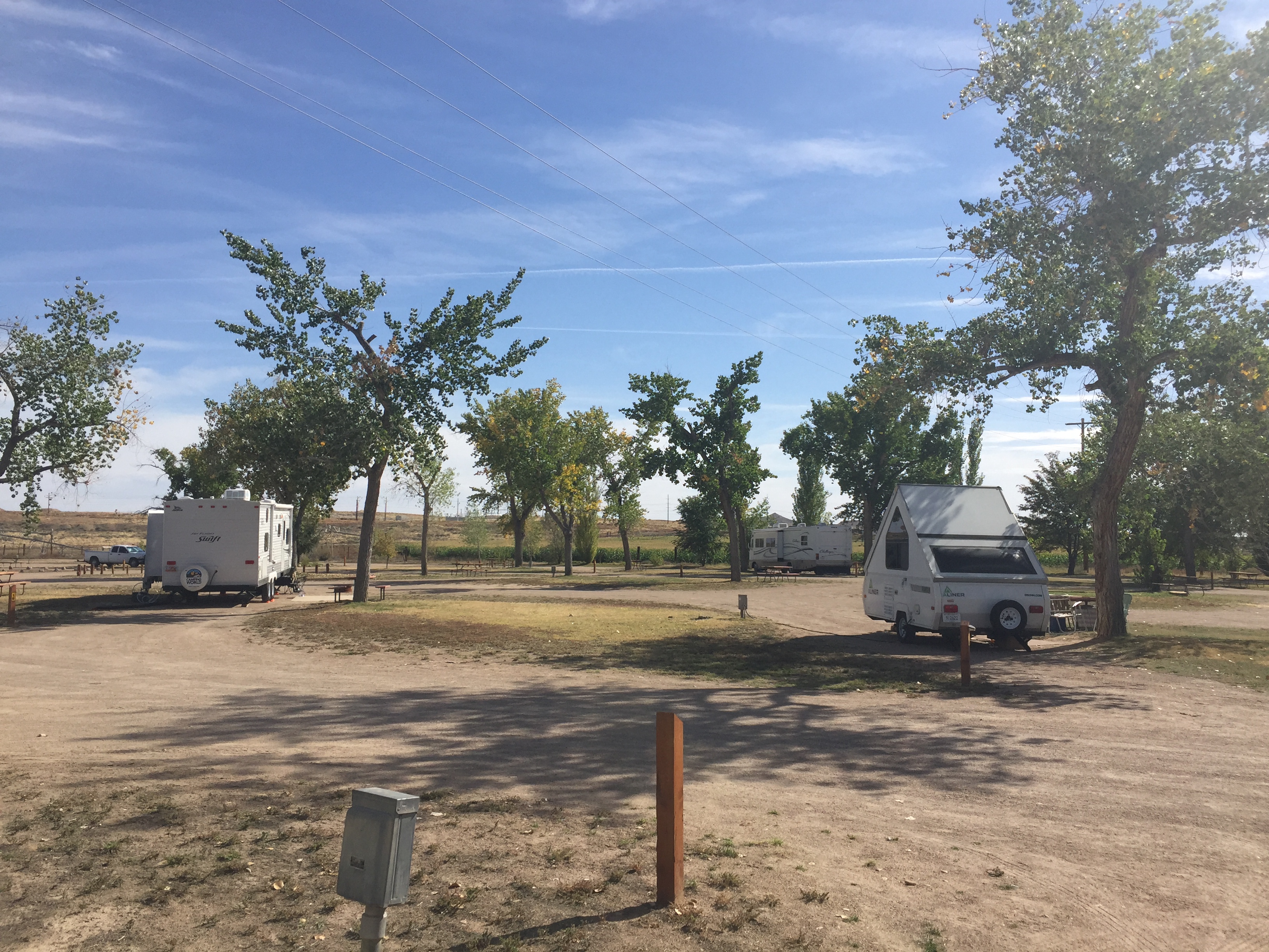 Very pricey for the accommodations provided, Sites are dirt but level with grass between, a few have trees providing partial shade. Utilities are placed far apart; electric and cable toward front of site and sewer toward the back. Our site ran one way and site next to us was just the opposite so our neighbor was awning to awning to us giving no privacy. They spread out and took over their patio and our patio area. If traveling in this area would look for a different location due to price and park lay-out.
