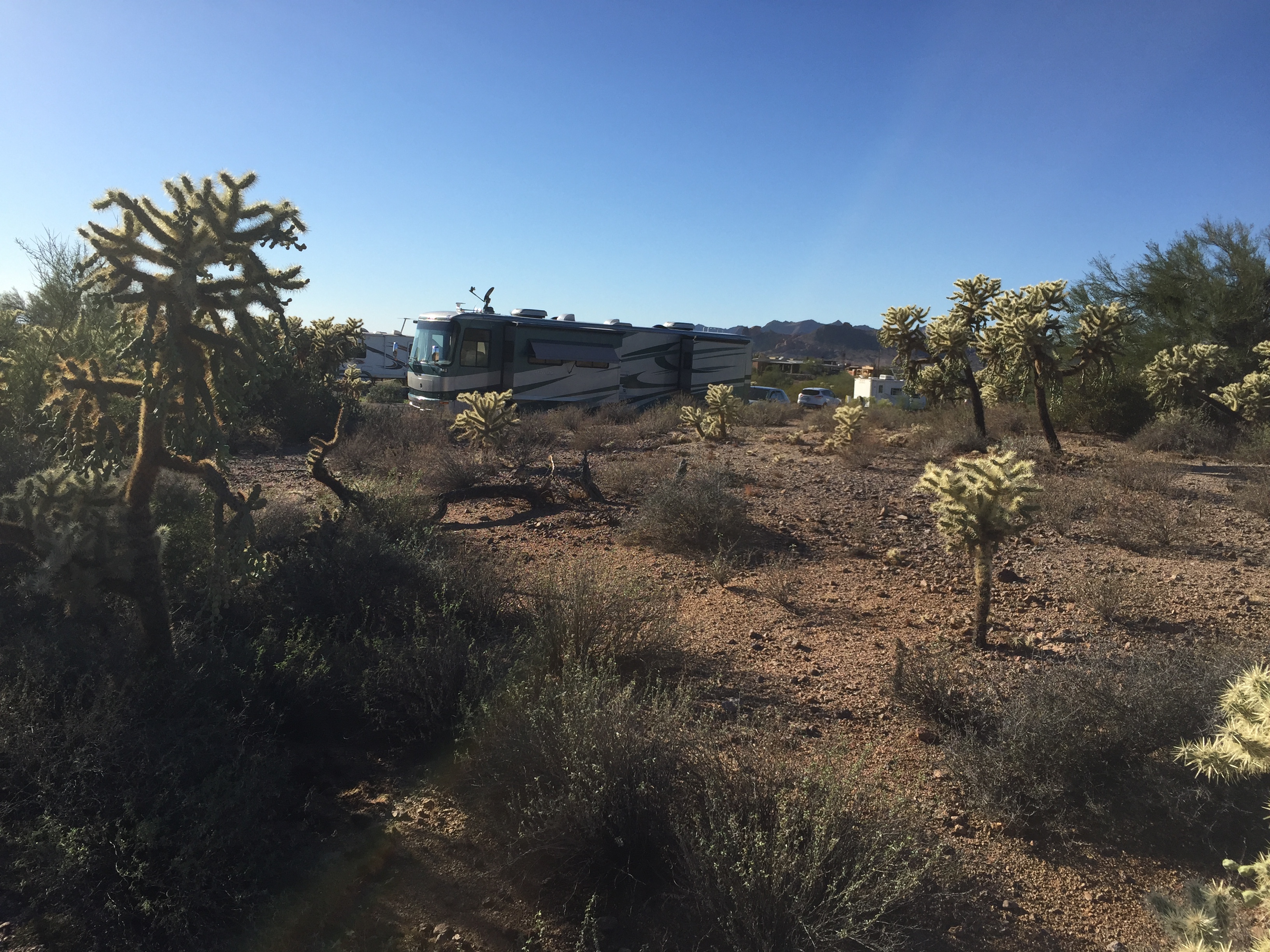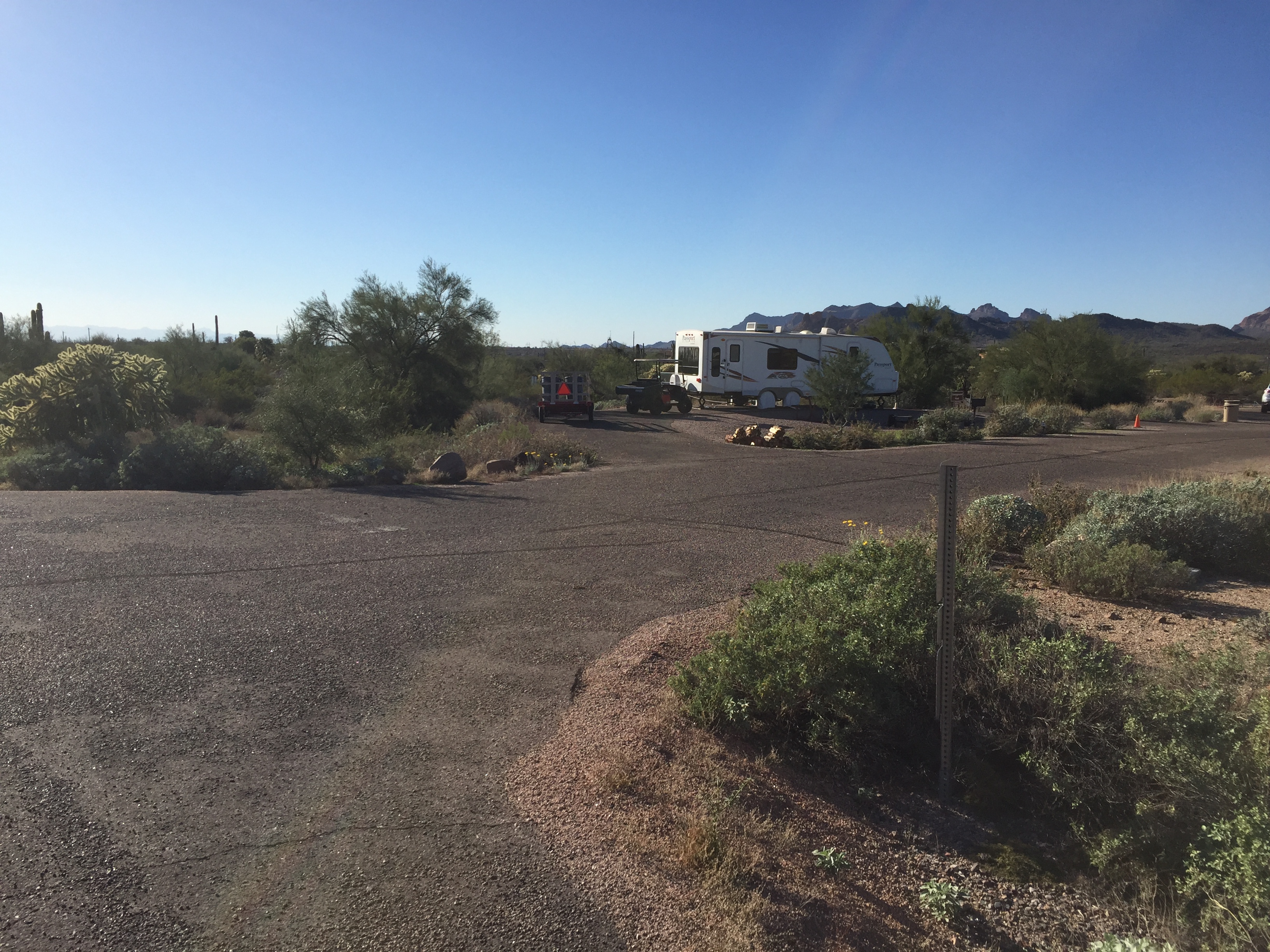 Setting: We enjoyed our time at this campground. Beautiful mountain views. Campsites only include water and electric, but a dump station is available. Campground is near the old mining town of Goldfield that has shops and restaurants and about 7 miles from shopping. Campsites are large with good seperation between sites. Many hiking trails with varying degrees of difficulty available throughout the park.