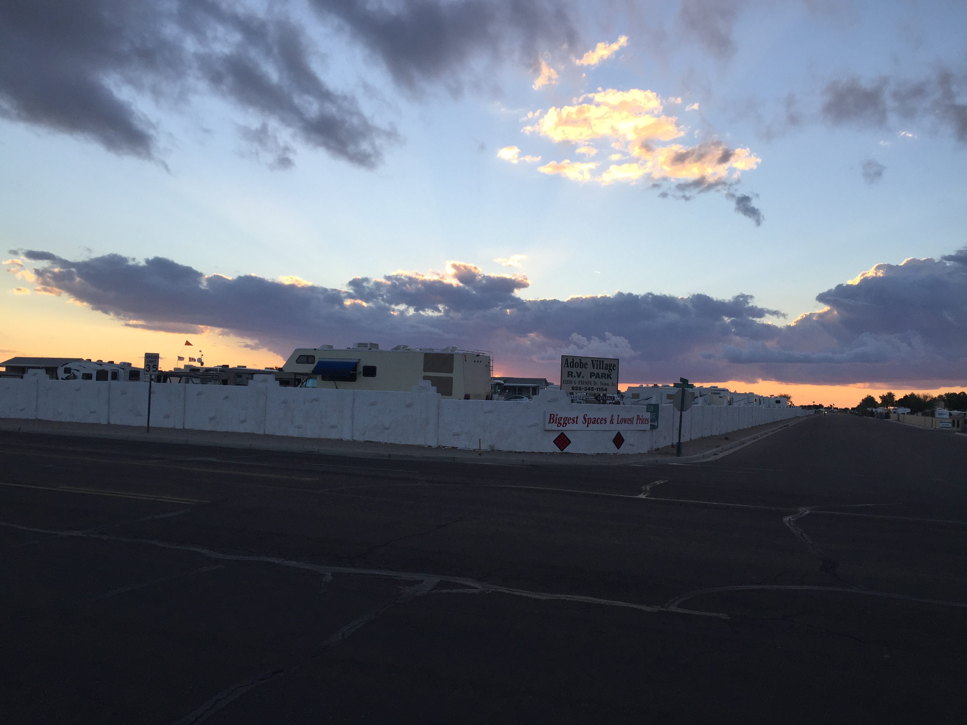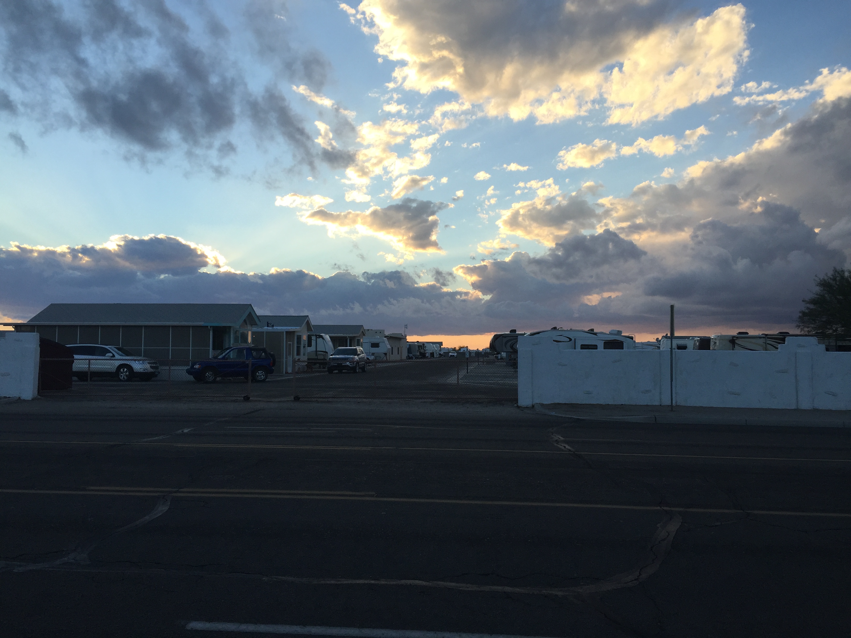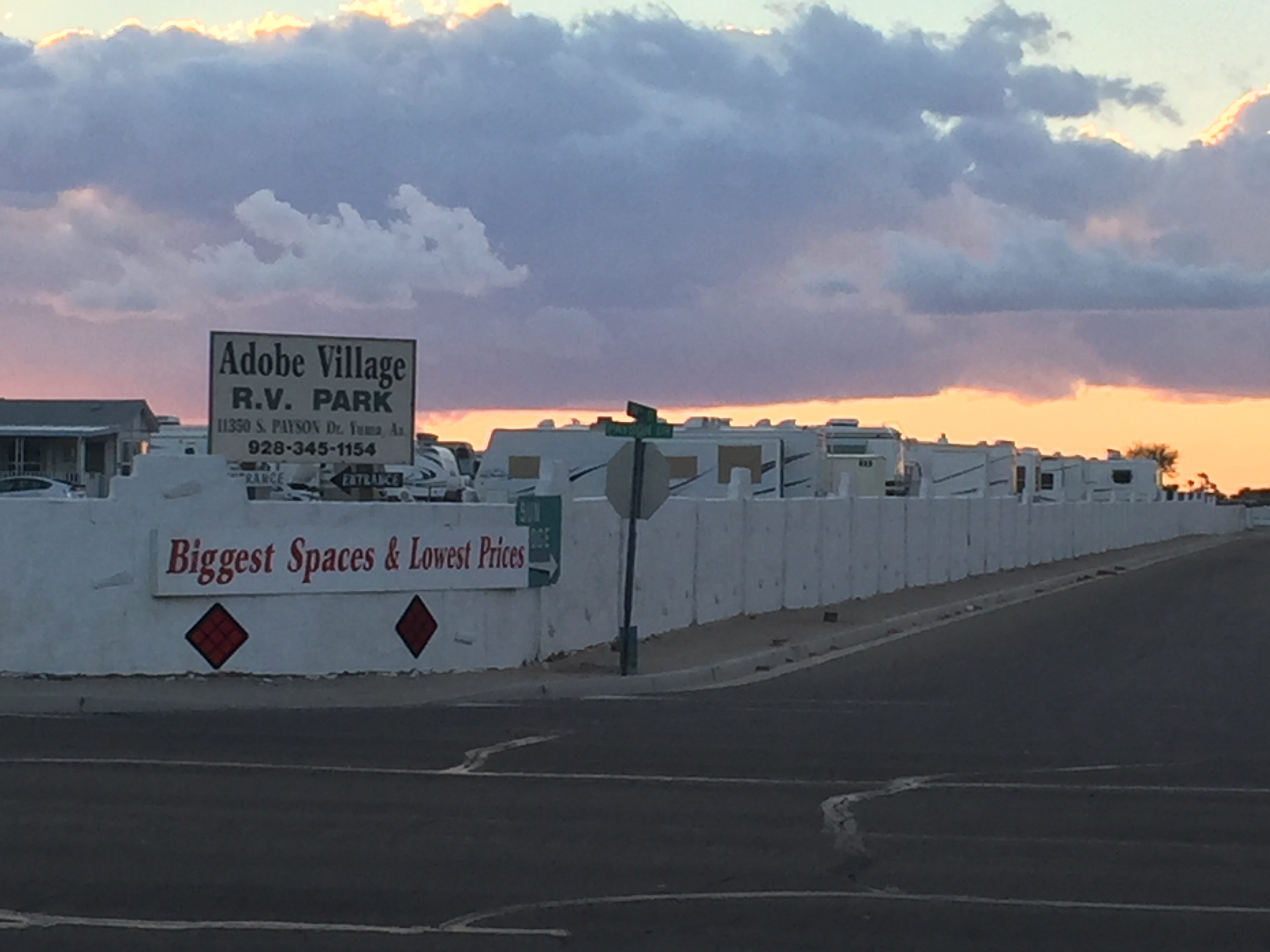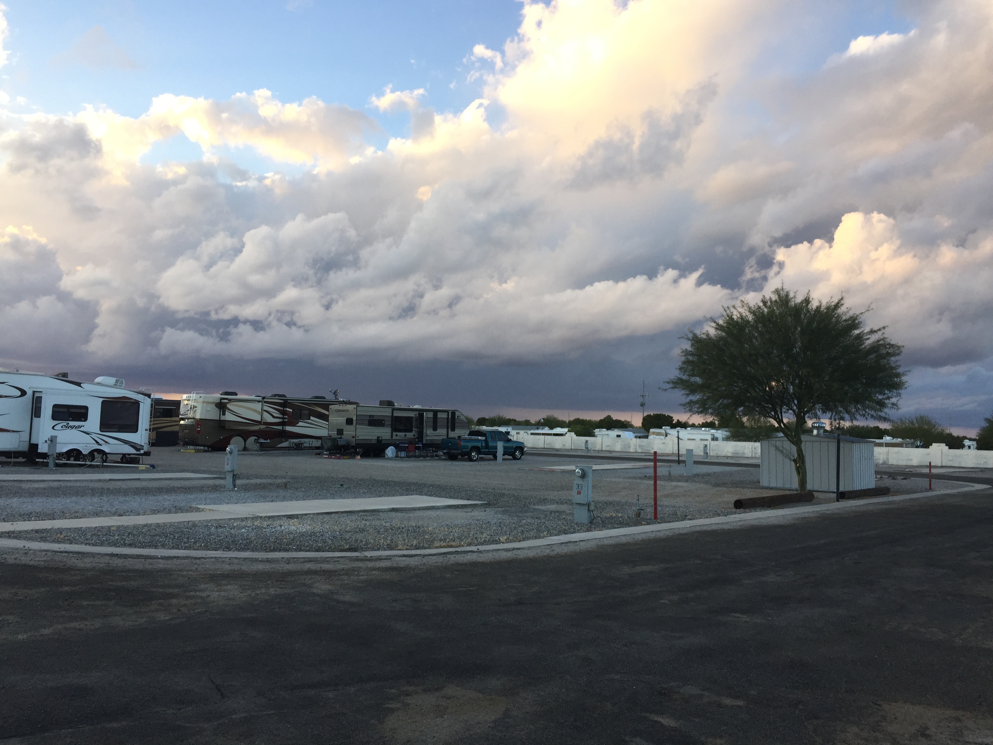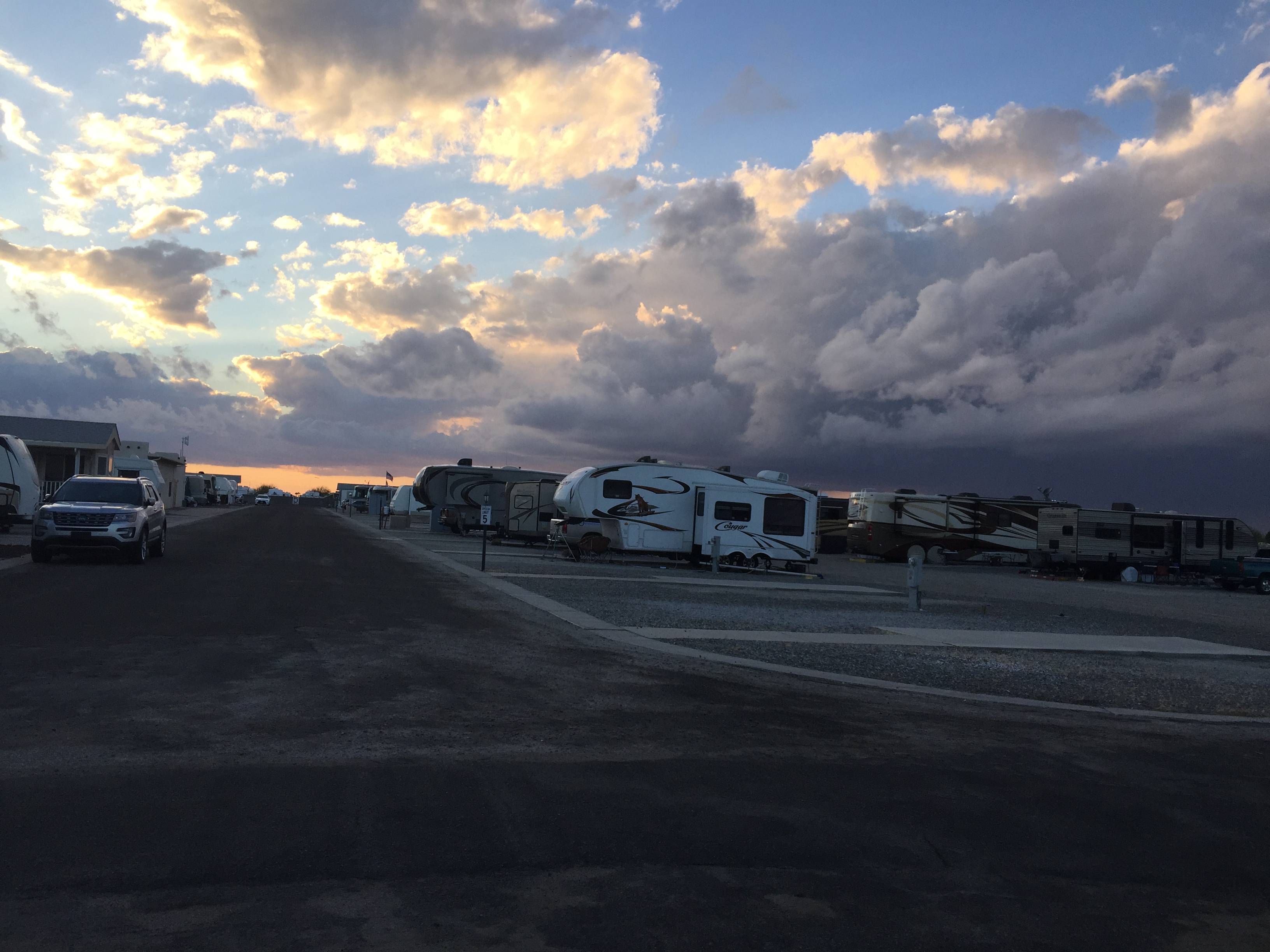 Setting: This is advertised as a Pets Welcome park but there is no pet walks, no pet walking is allowed within park. Pets must taken outside the fence on the sidewalk area near a busy street. No WiFi at sites unless you are willing to pay extra. Aside from the usual hookup on left (water, power, sewer), there is a power station on right.