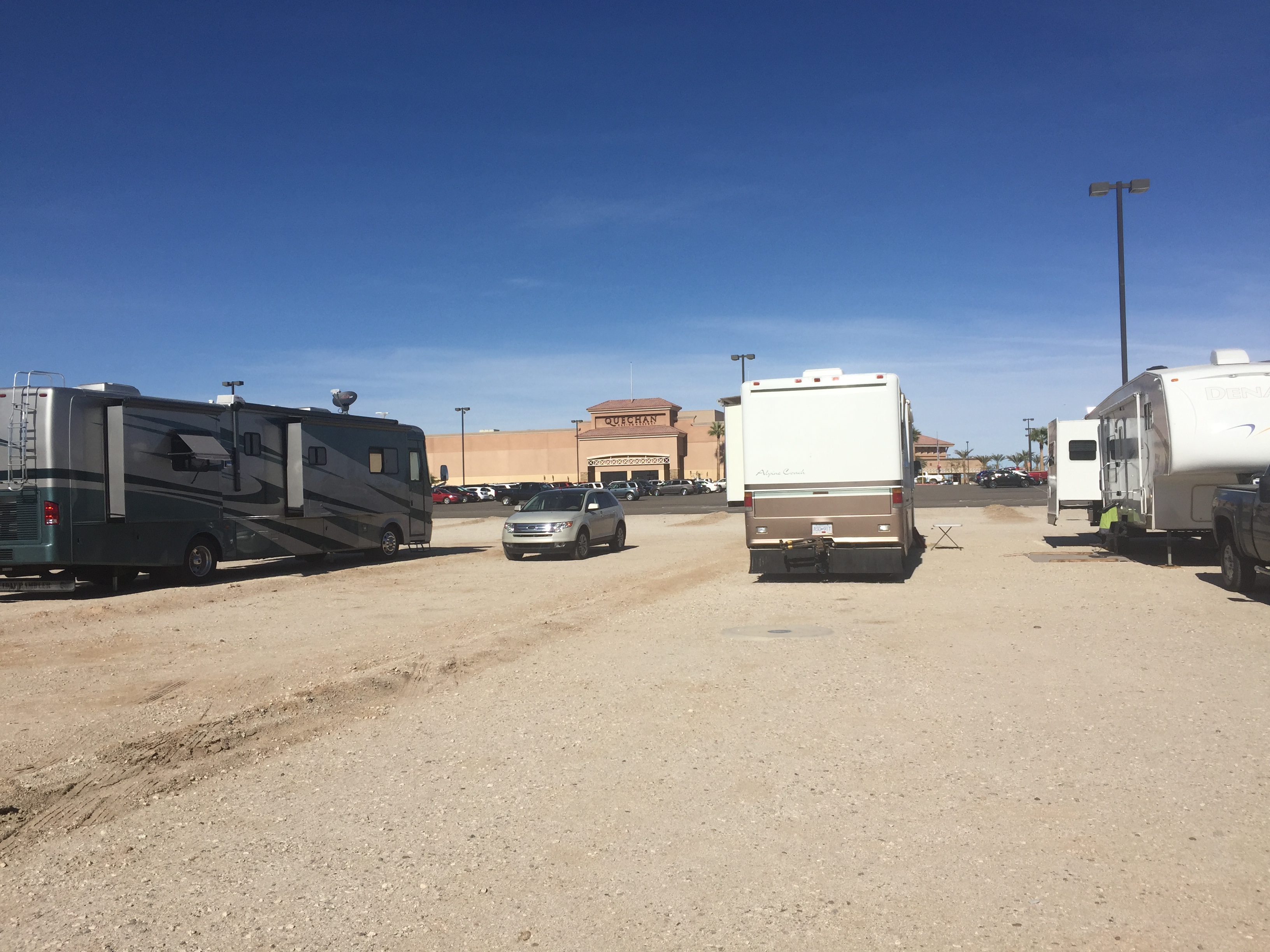 Setting: Large sand / dirt parking at casino with no services but its free, with restaurants and entertainment only a short walk away. Yuma is only 8 miles away and Los Algodones is two miles away. The Quechan can’t be beaten for its location to Los Algodones