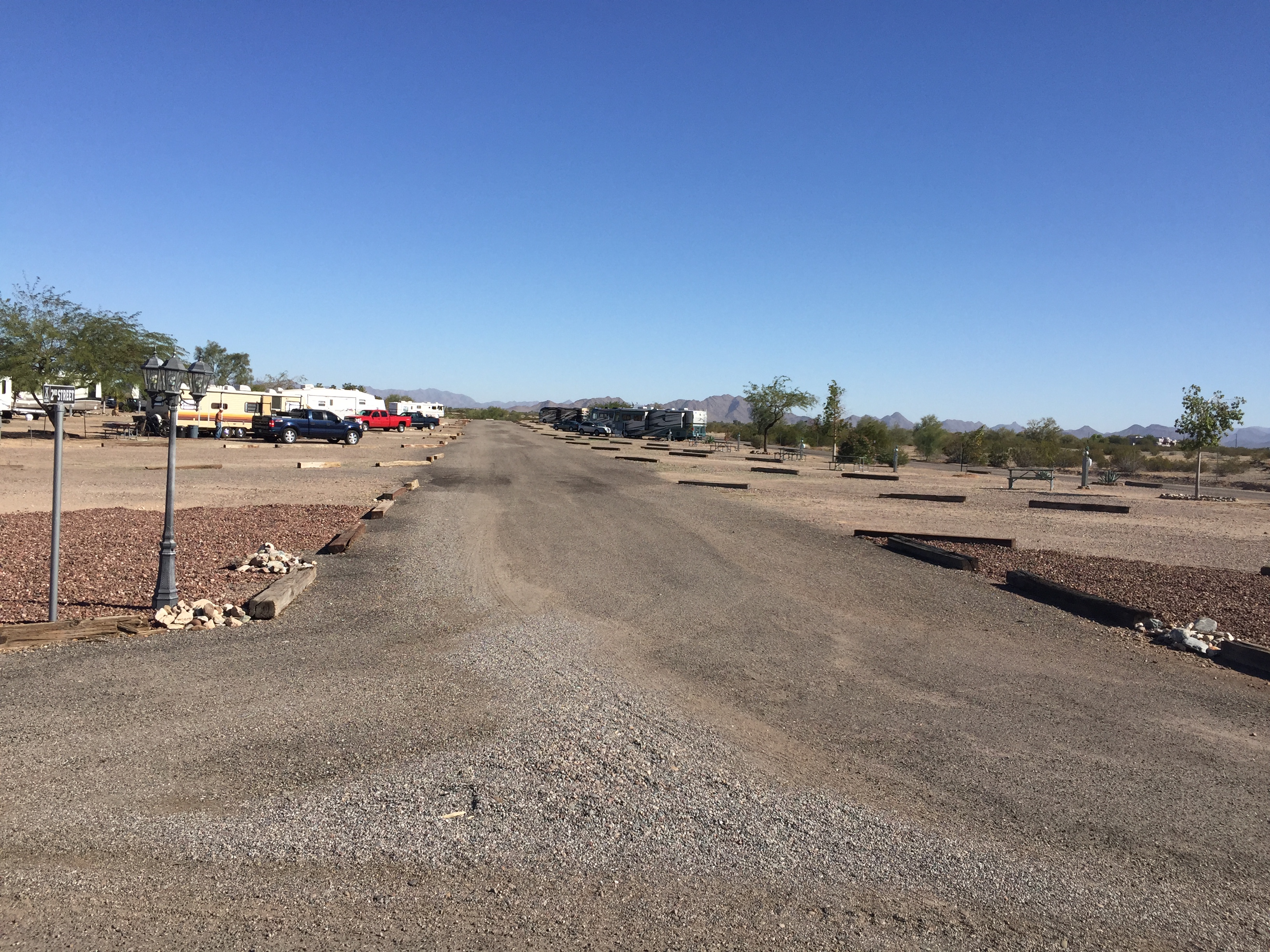 Setting: This is Augie’s Quail Trail RV Park and is in the process of changing over to a Gila Bend KOA. It is a very nice clean park with large mostly pull through spaces, management is friendly and helpful. There are several places to eat in Gila Bend but the closest shopping is 40 miles away in Goodyear AZ. We would stay here again if in the area.