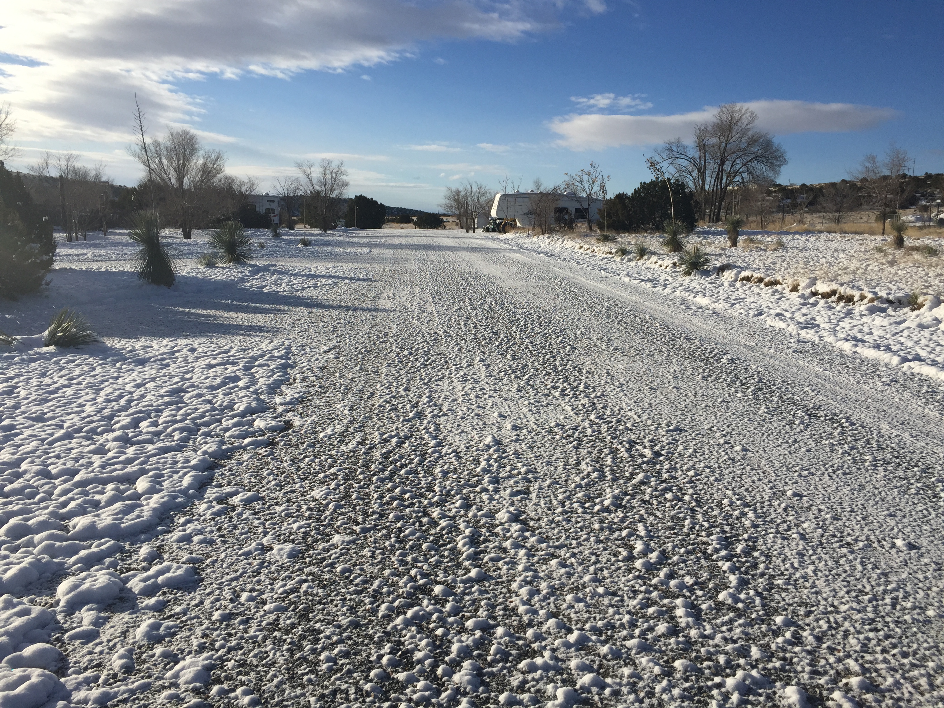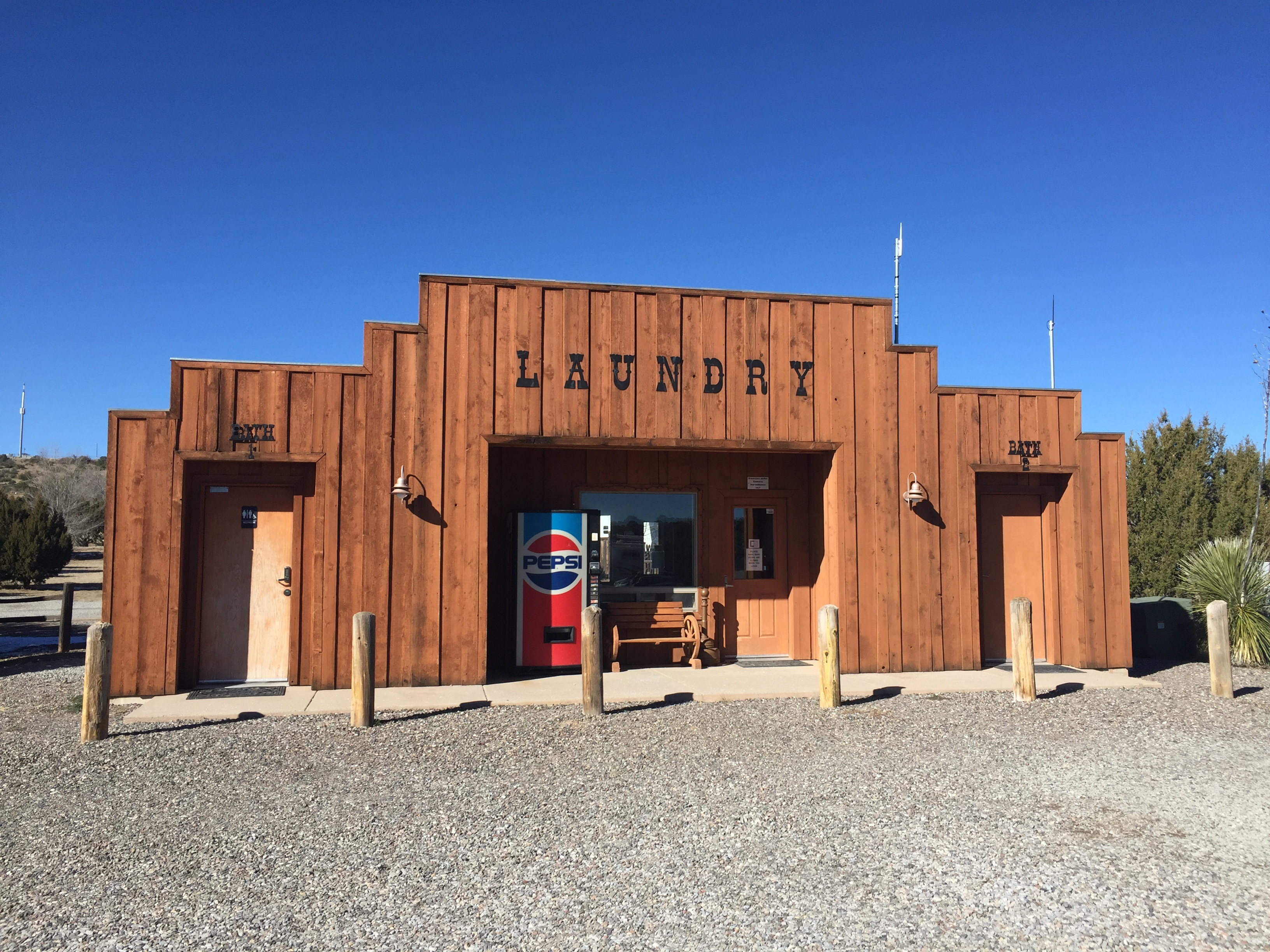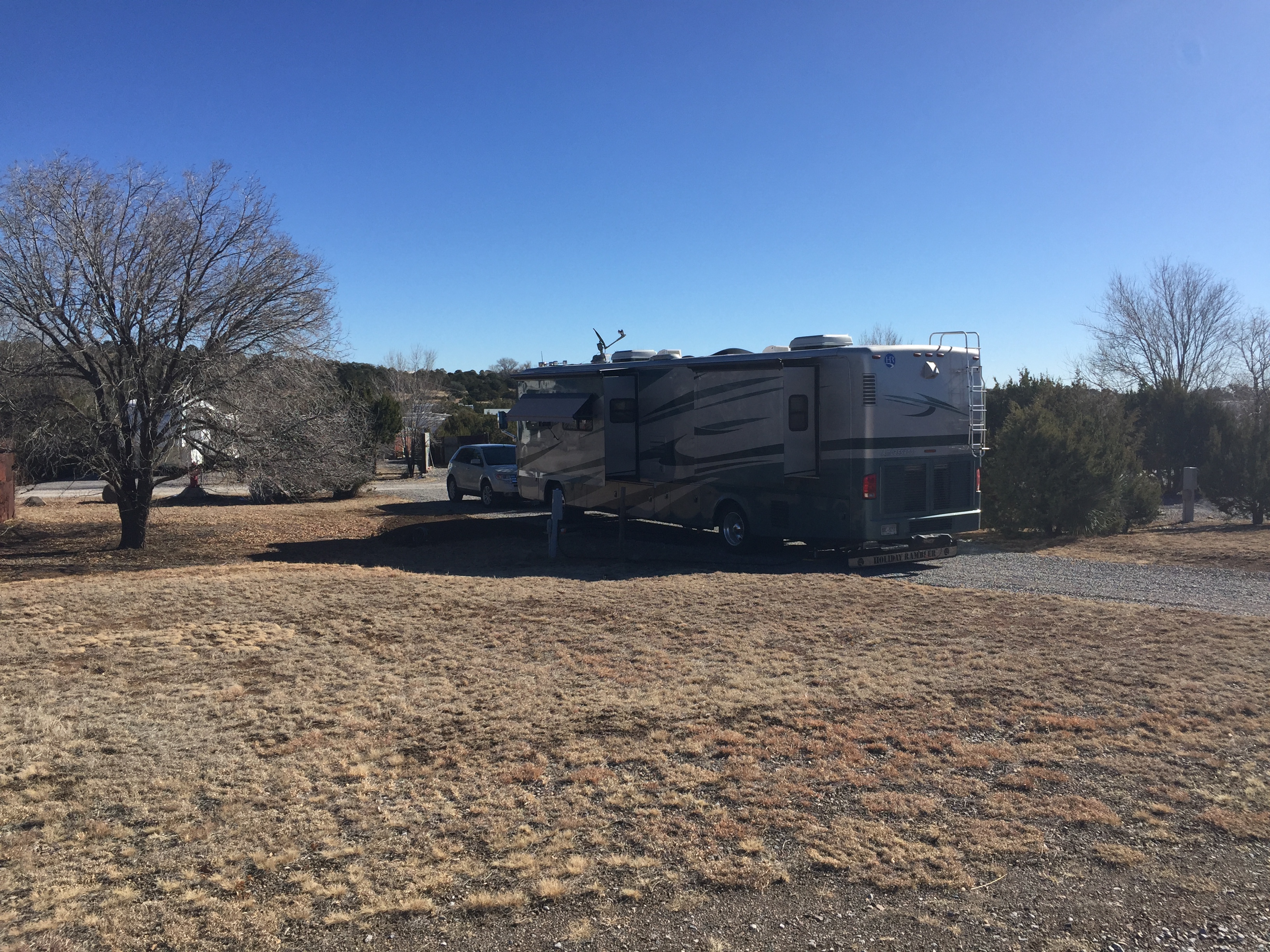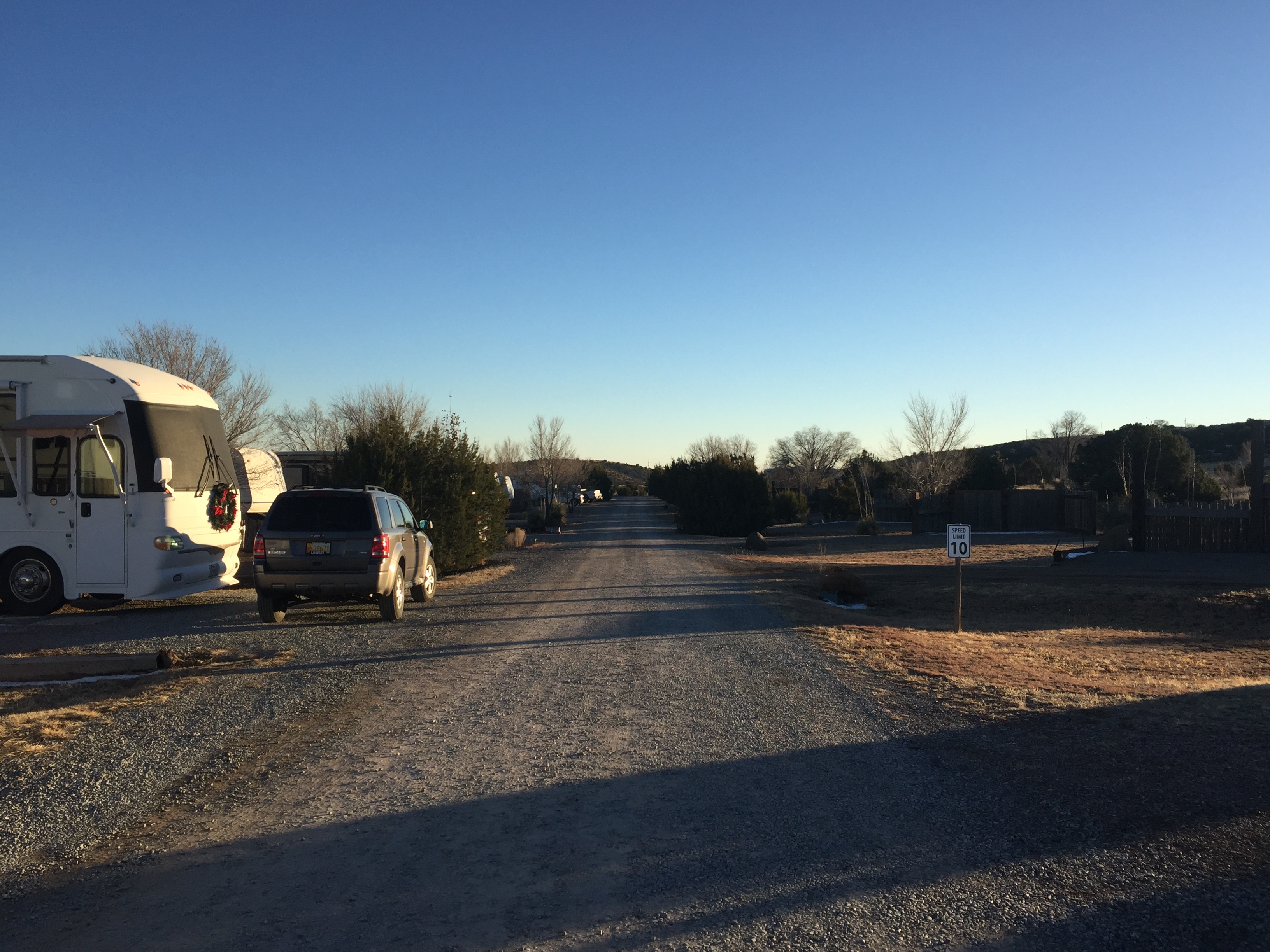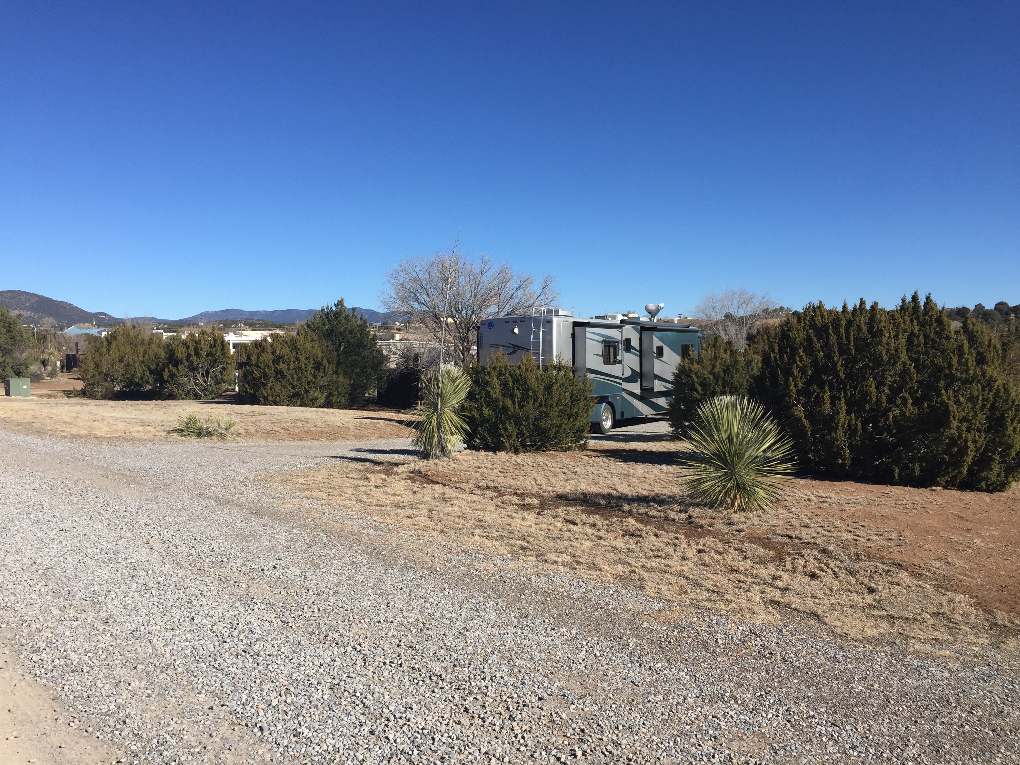 Setting: This is one of the nicest park we’ve stayed in this year. Sites are spacious and buffered by low trees and wooden privacy dividers, lots of room and privicy at each site. Restrooms/laundry are modern and clean. Gravel roads and pads that are level. Wi-fi signal is strong. Even though this park is close to town it is very quite with Wal-Mart and Safeway is nearby. The dog walk was great. there is a good walking trail beyond the ranch about 2 miles one way.