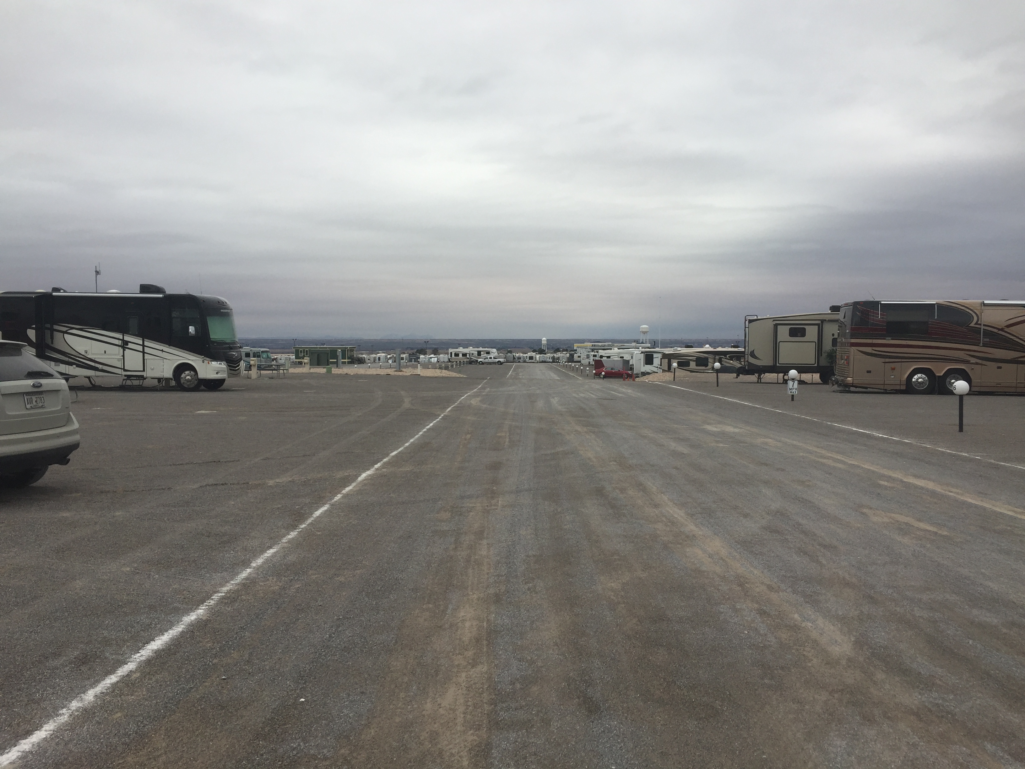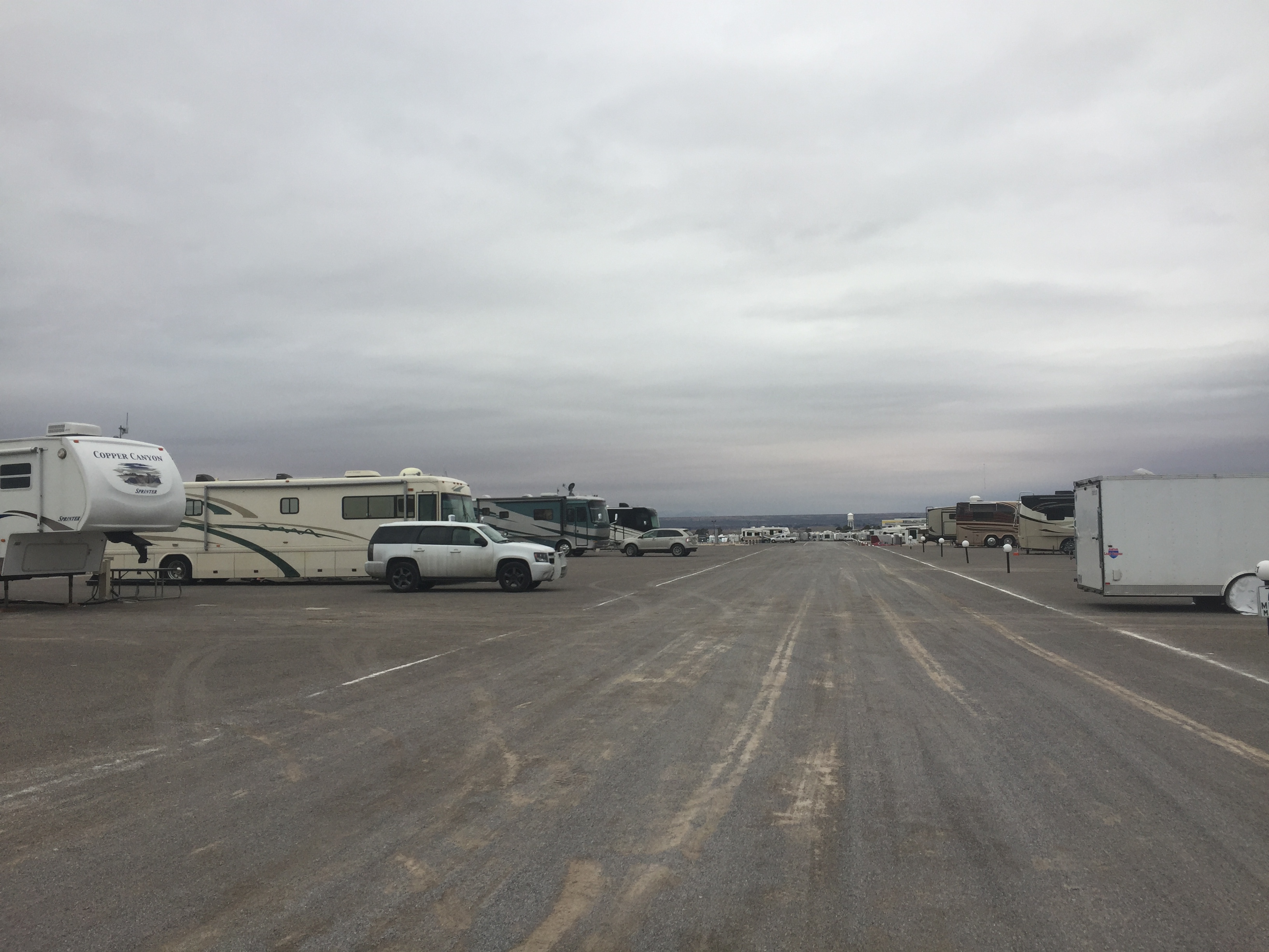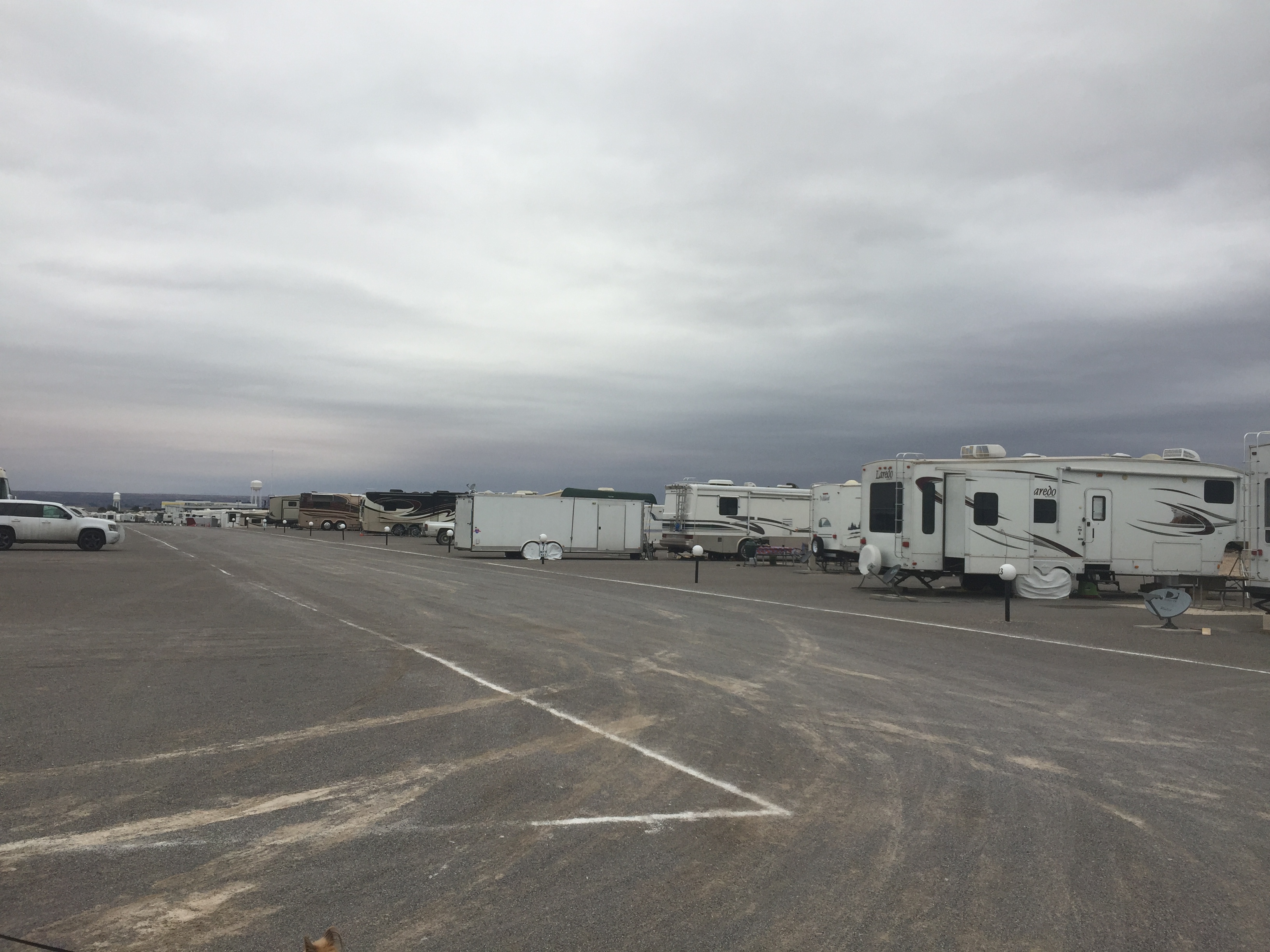 Setting: This campground used to be the American RV & Marine Resort Rally Campground. This is a very large facility and could accommodate any size RV, the hook-ups are modern and spaces are very wide and long. Only one section was open when we checked in and the office is a ‘temporary’ modular building. Camping World store is located on across the street and Flying J is conveniently located as you make your way back to the interstate. Although the hook-ups are excellent, this campground is just a large gravel parking lot with virtually no landscaping. The view of the mountains is quite dramatic, however.