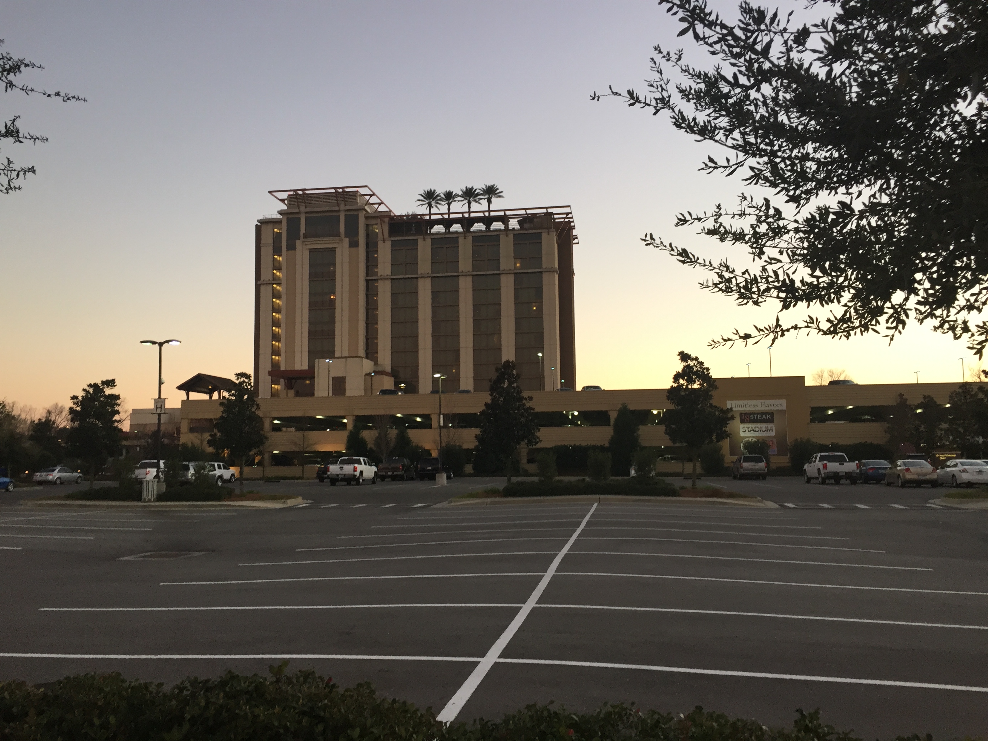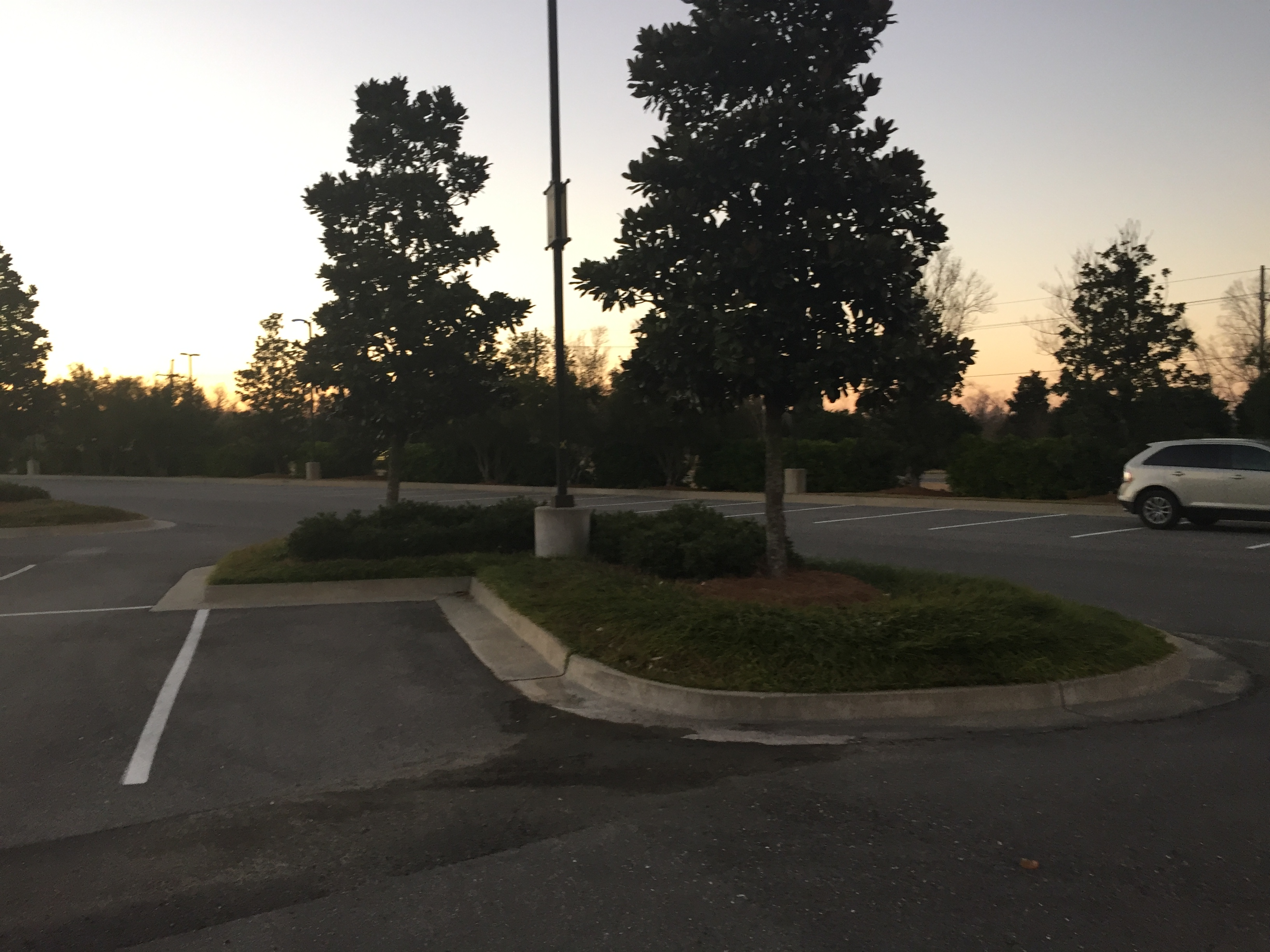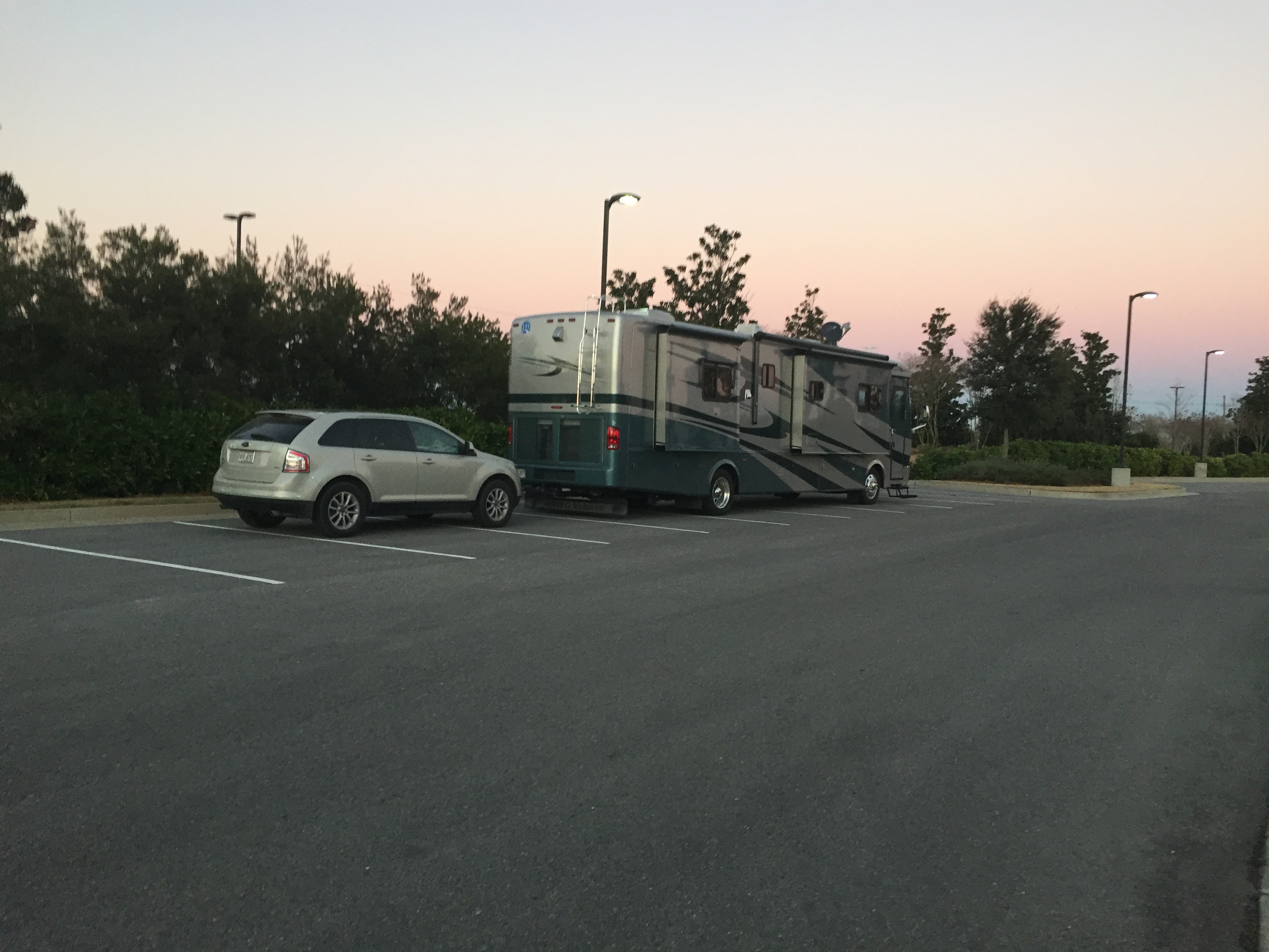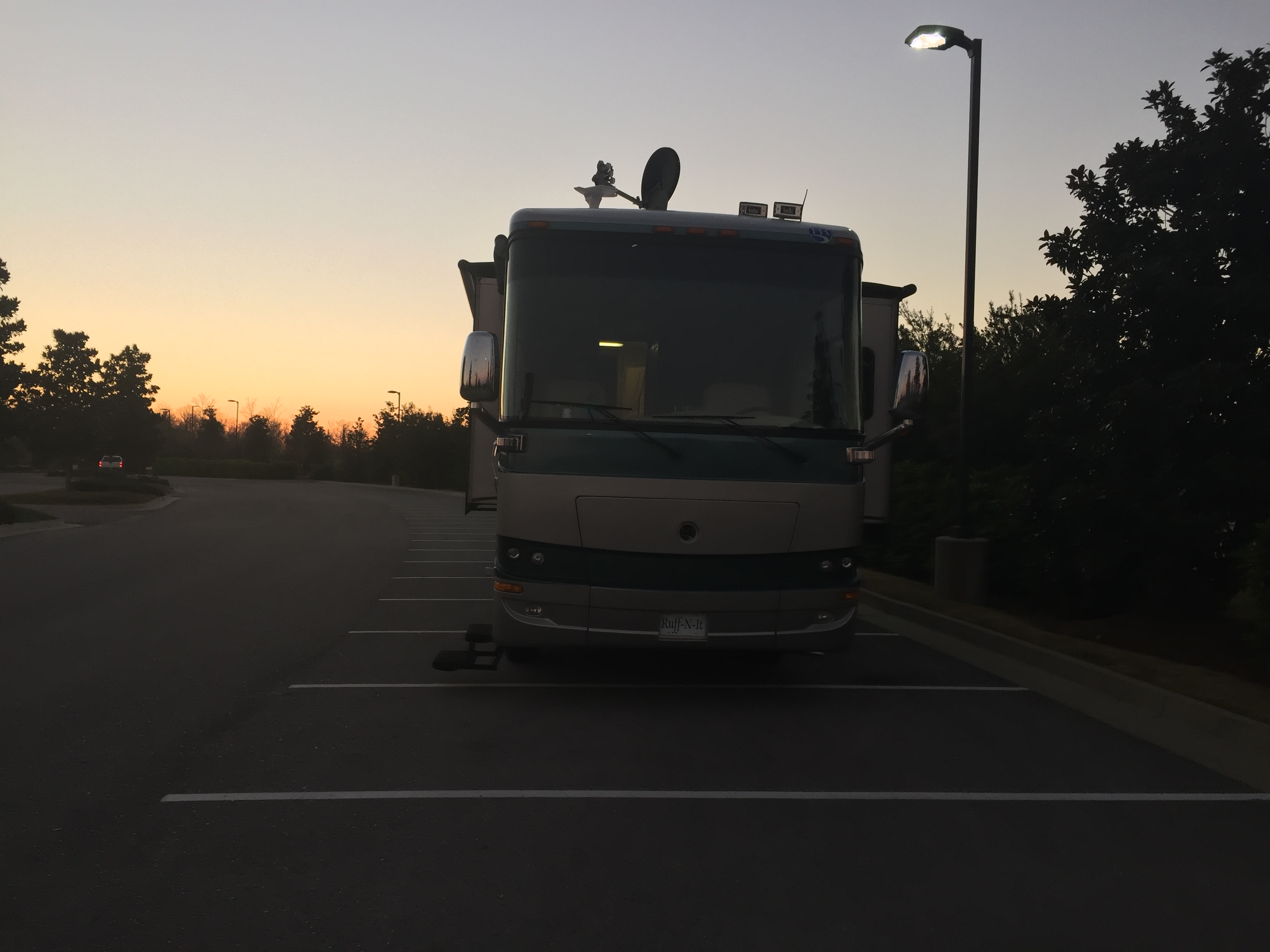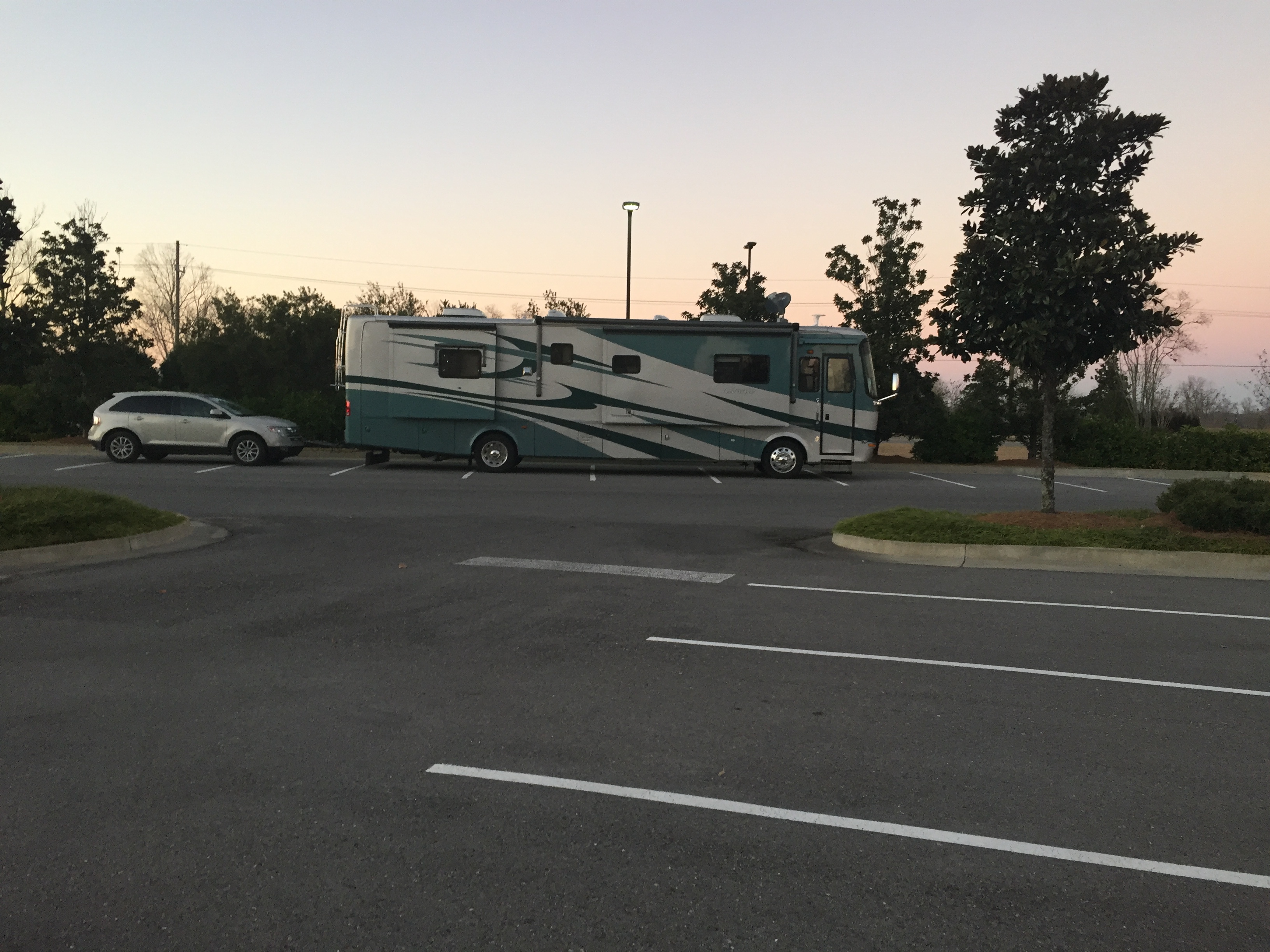 Setting: Parking lot – on outside of curved parking area. There is also a seperate lot across street which would give more privacy if desired. They stated no limit but I would check before a long stay. It is possible to find level although numerous drainage grates.