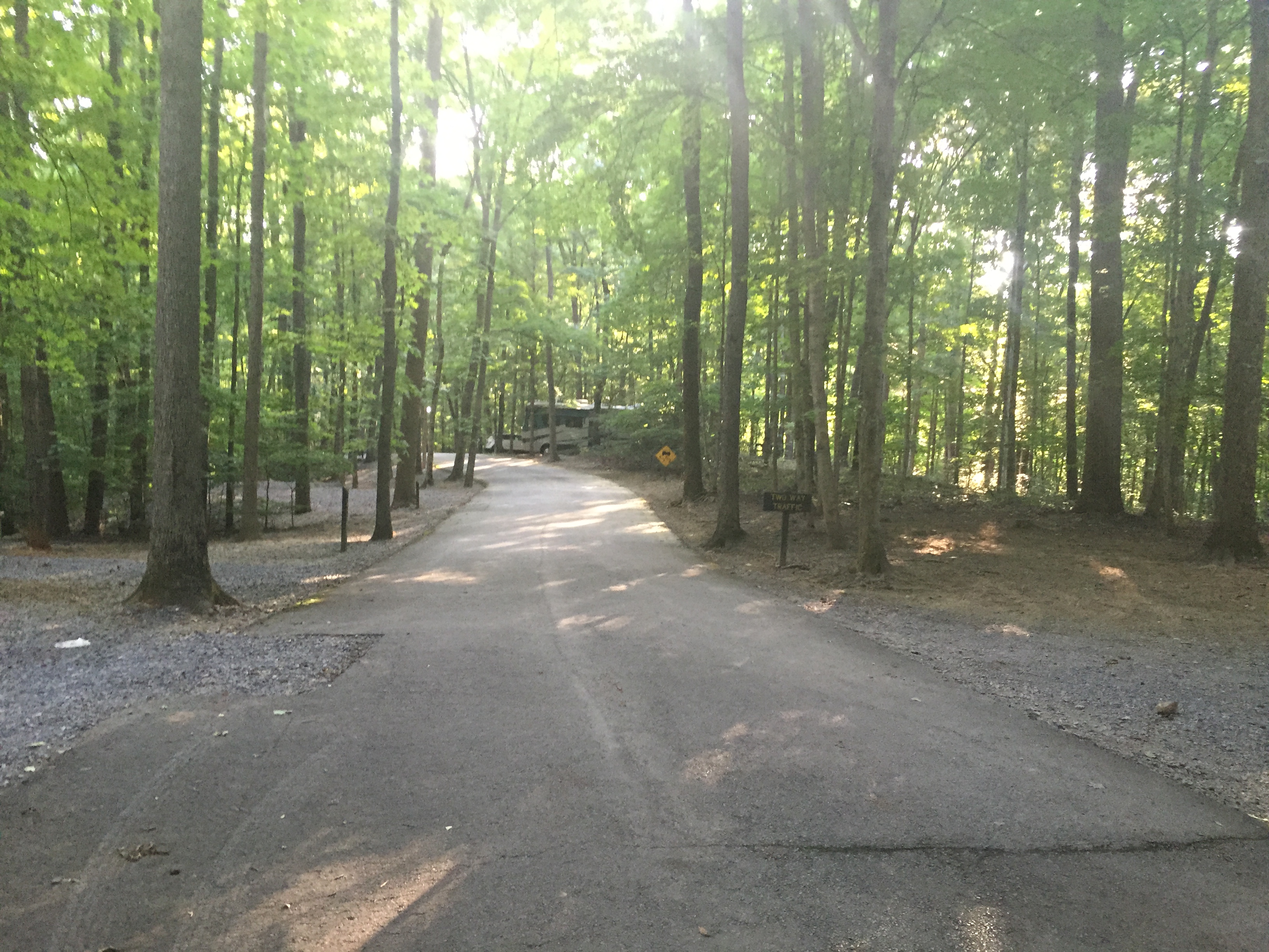 Setting: This city park is located on densely wooded hills. Although the blacktop roads throughout the park are steep and narrow, the gravel sites are reasonably level. There is a mix of back-in and pull-thru sites. WiFi was supposedly available; however, we used our Verizon hotspot with good signal strength. The park was very quiet with only a few other campers. The water hook-ups are shared between several sites. The 30 amp electric was on a 20A breaker. No sewer hook-ups, but there is a dump station. No satellite TV due to the tall trees.