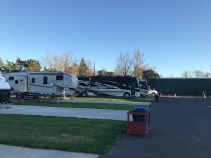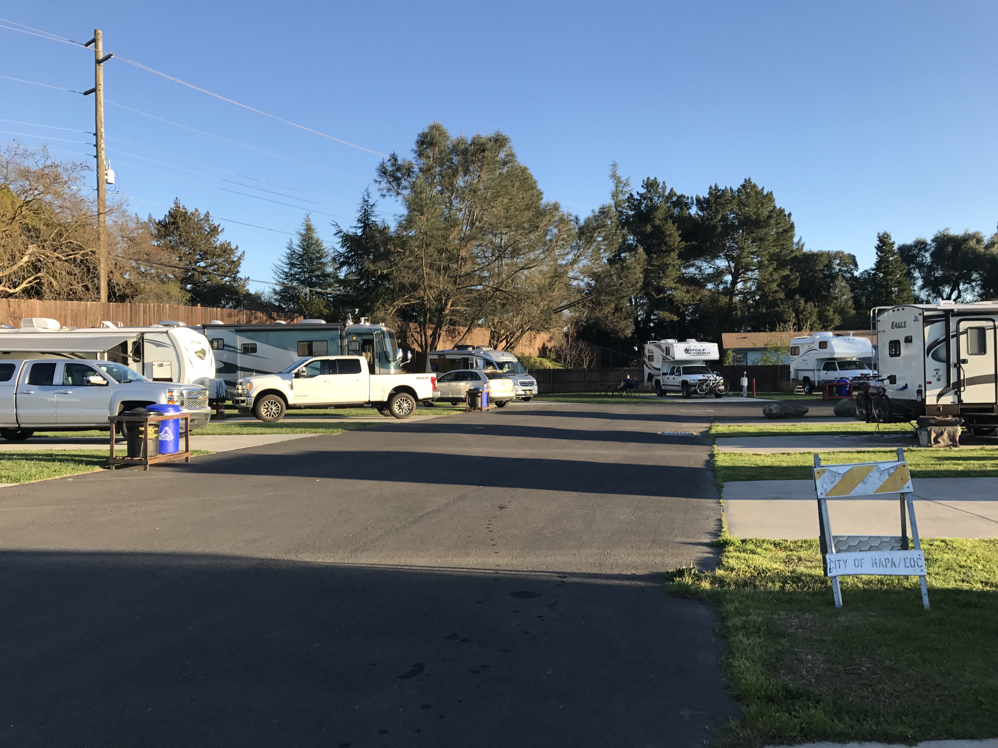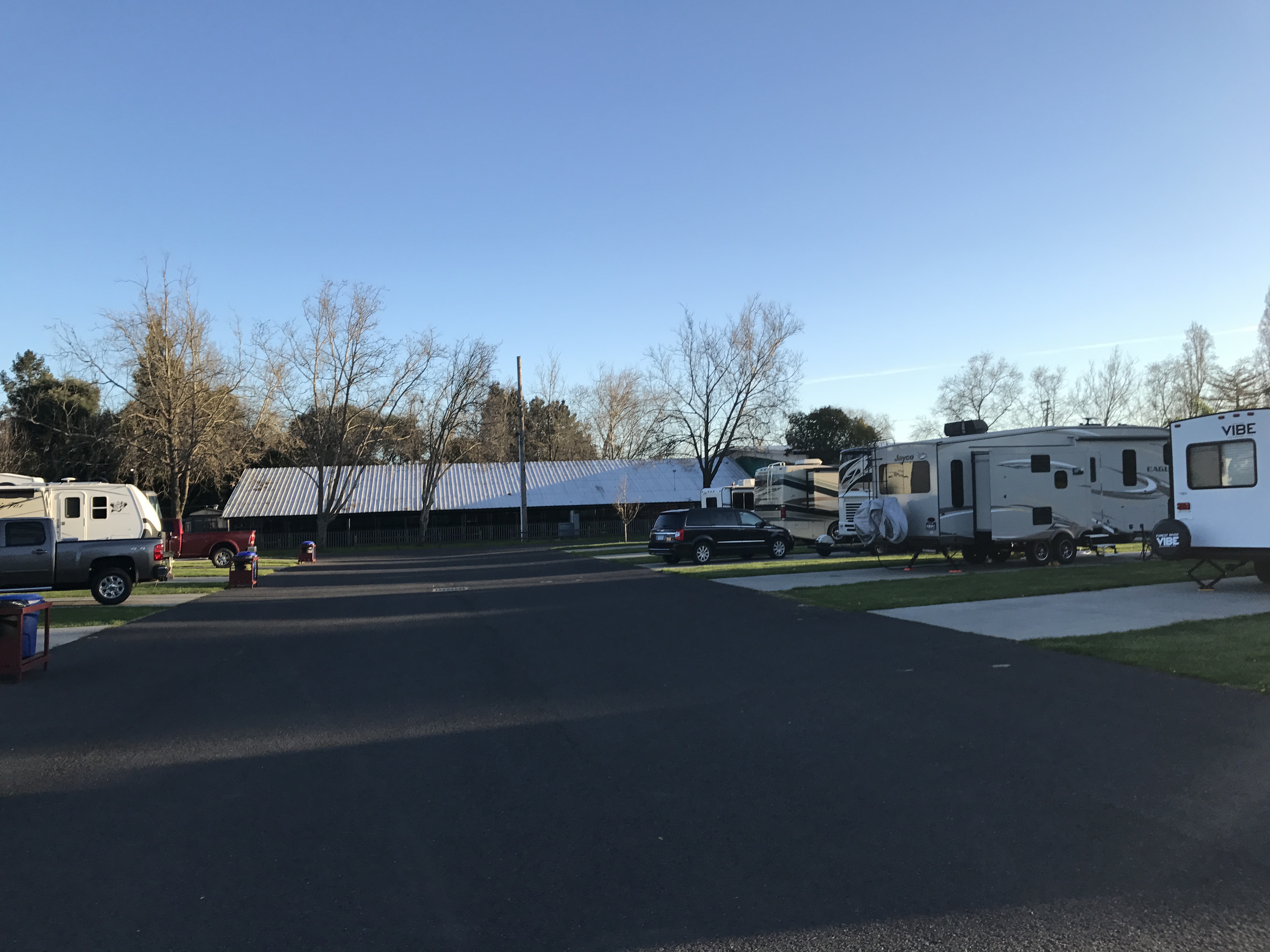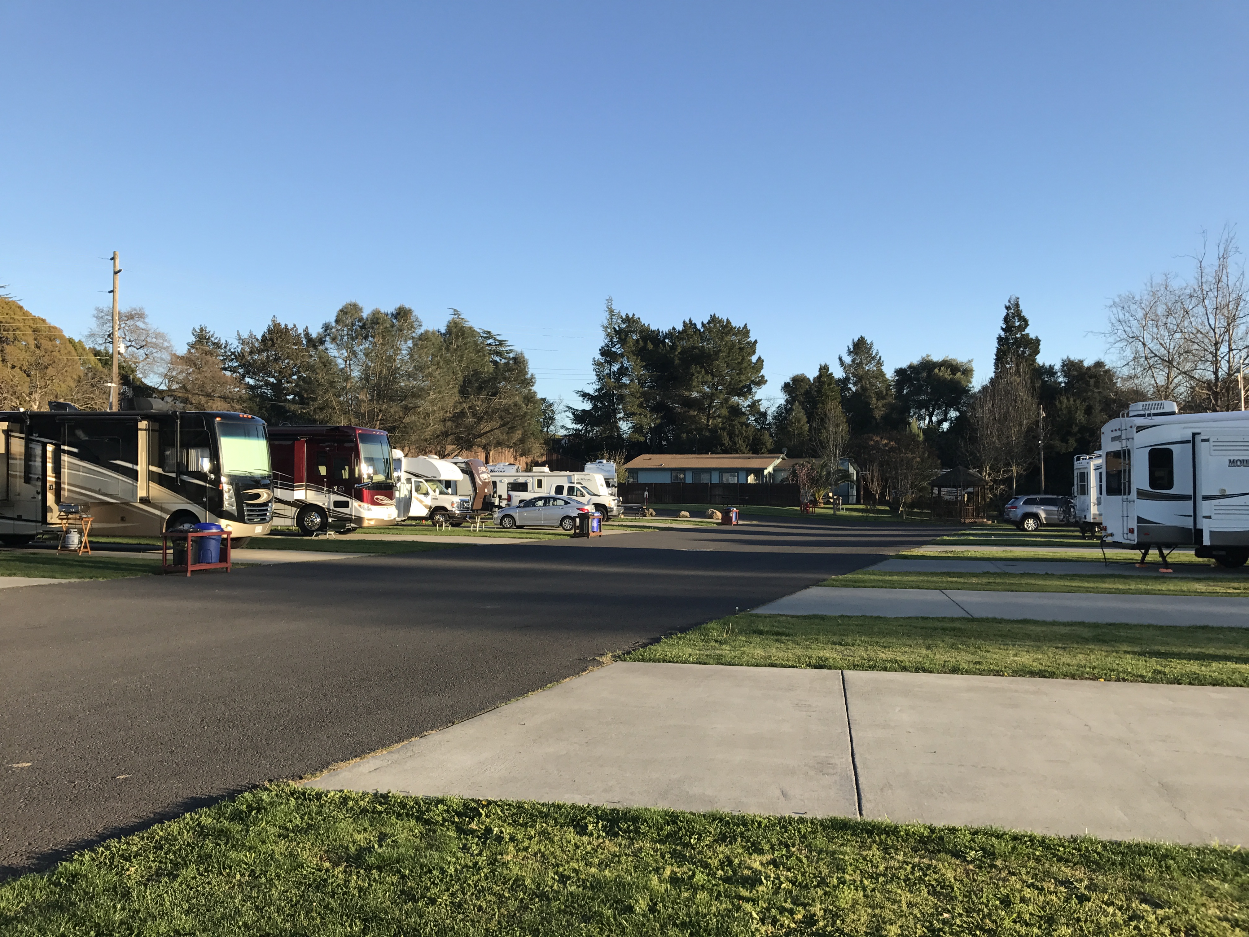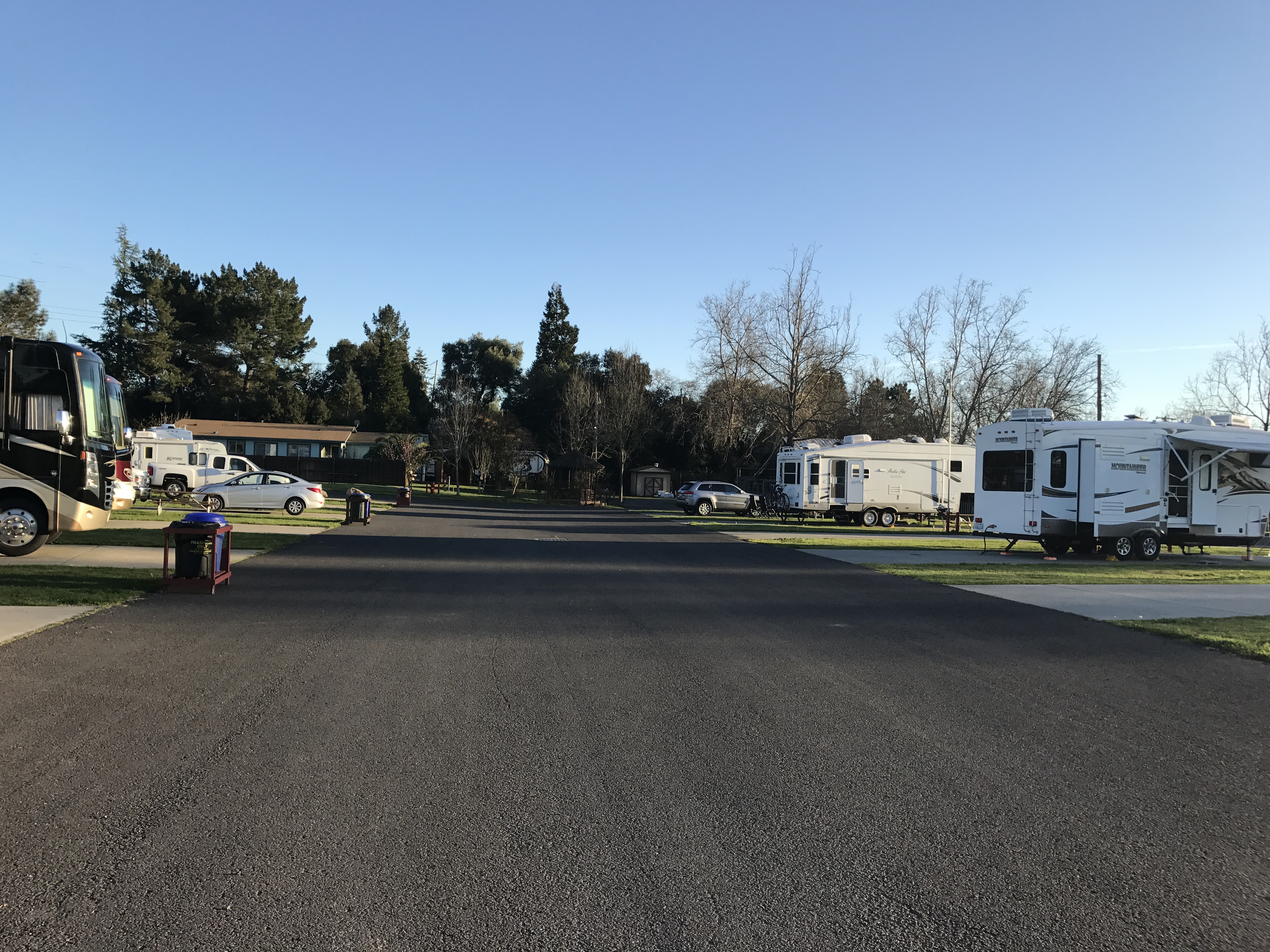 Setting: This park is a great location for visiting the area but a little pricey for the accommodations. Our spot was level and did have grass between spots. Most sites are pull through and all are all paved, level and with room to park a car in front. The camp host was helpful and accommodating. But the noise level was really loud due to a busy road right behind our motorhome,