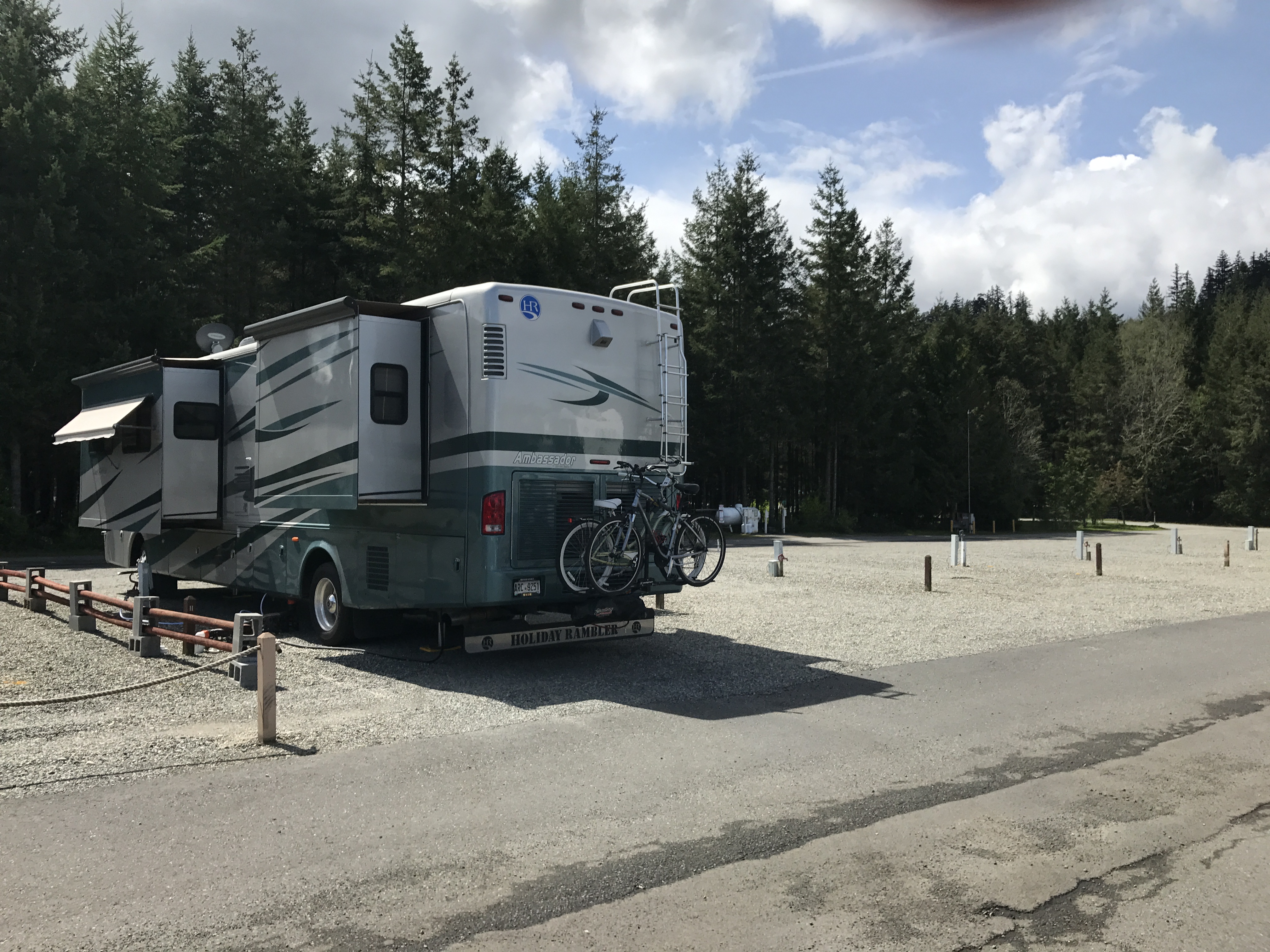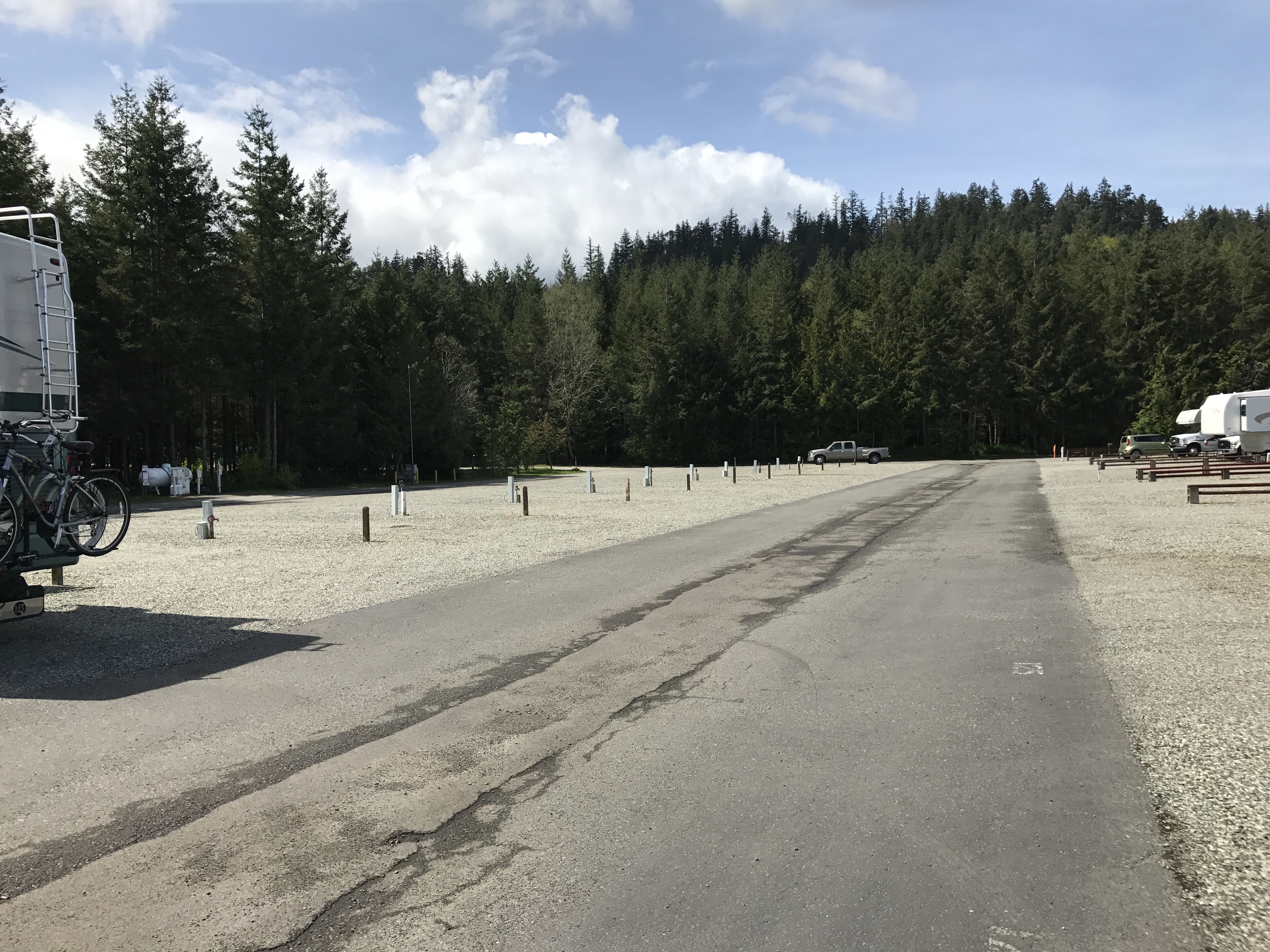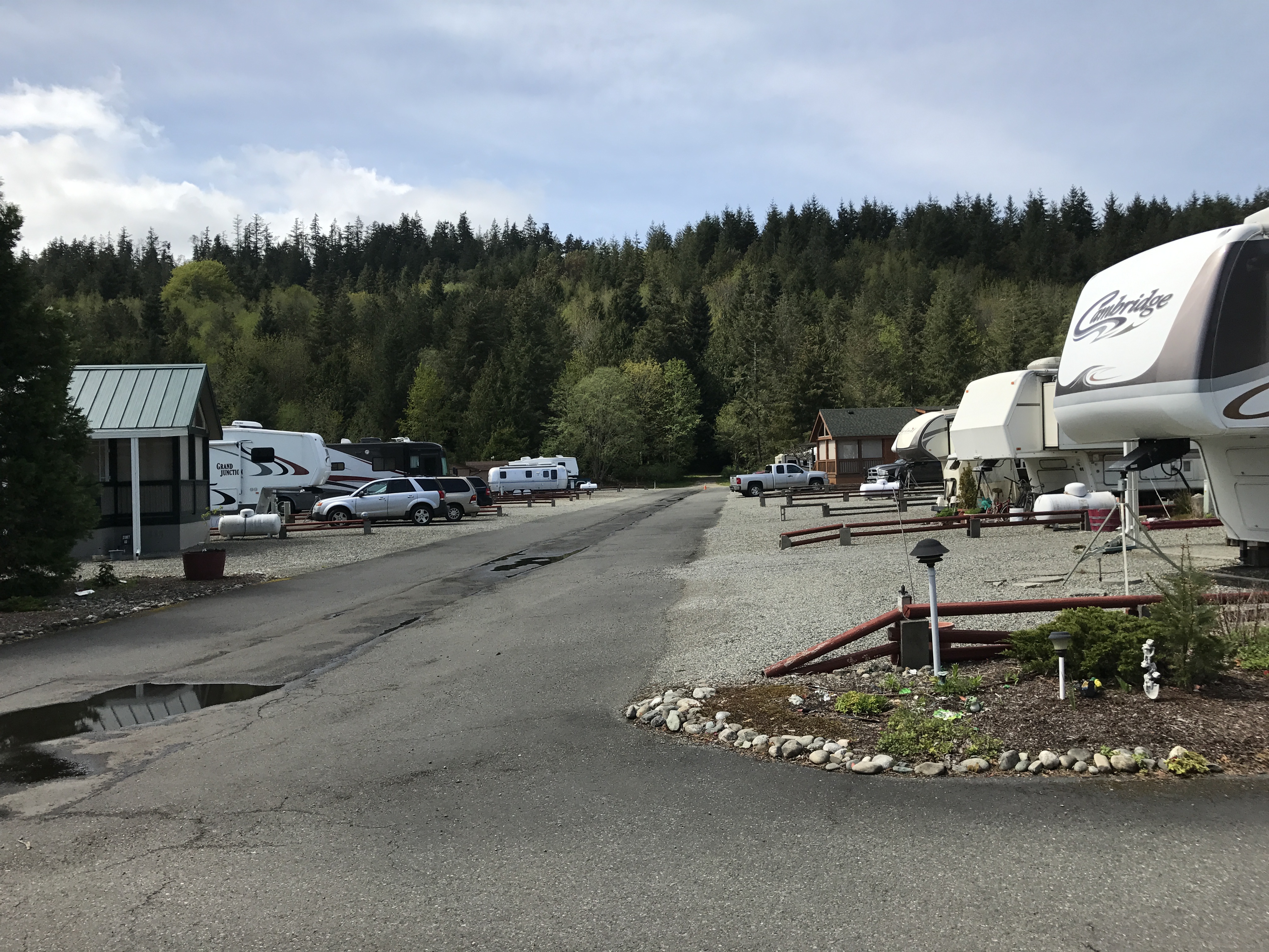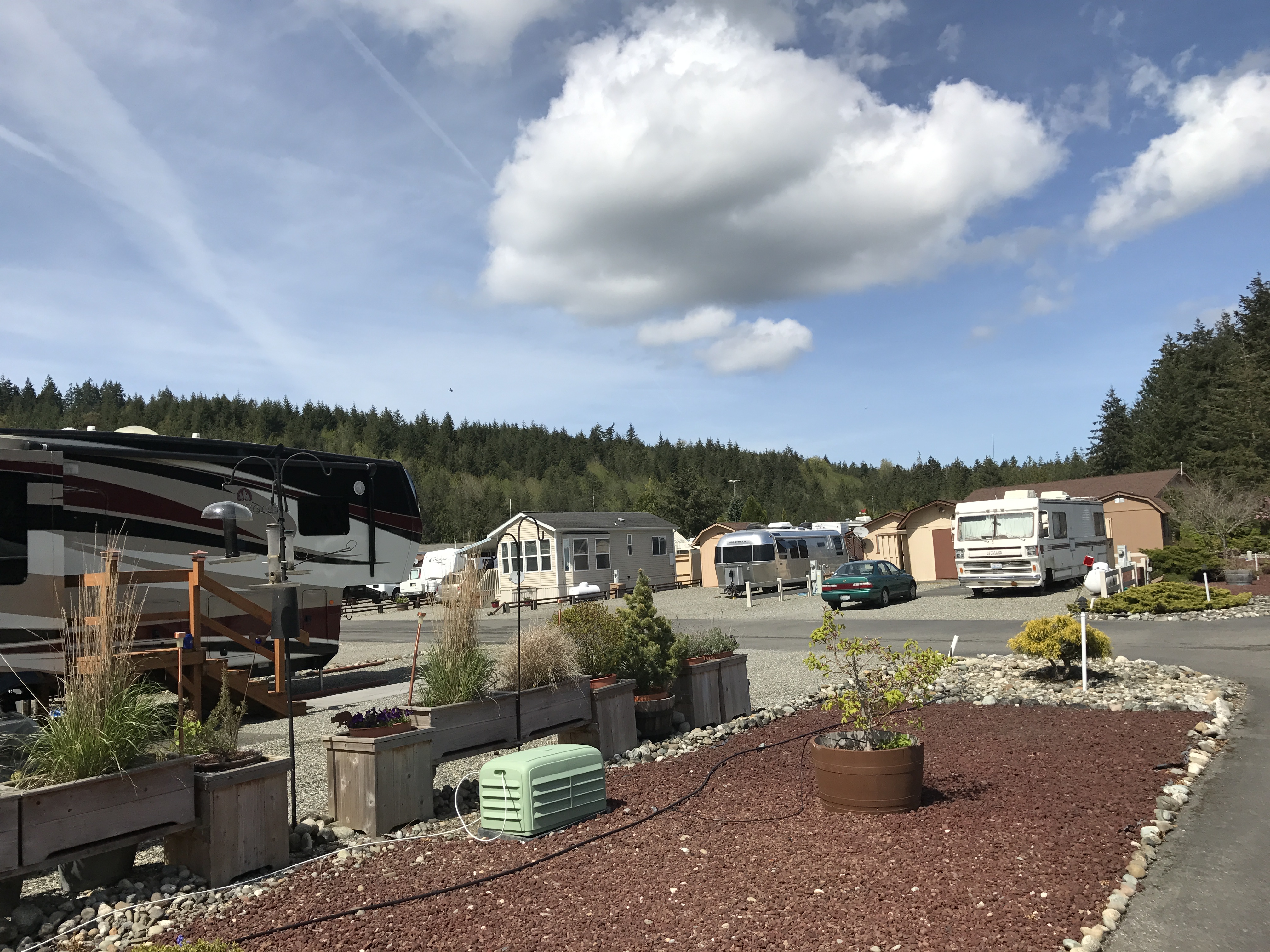 Setting: This park is extremely well kept and clean. We had no problems with getting in or out of our site. Sites are gravel, level in the transient RV’s portion but some what close together if the lot is full, there was only a few RV there during our stay so we had plenty of room. All sites are in full sun and are 3o amp. If you plan ahead you can get a leased site with 50 amp service and in a much better location. There is a very nice fenced dog area, as well as an area specific to wash RV’s and cars. Very convenient location to Port Townsend, Port Hadlock (nearest grocery store) with Sequim and Port Angeles within a little longer drive. Friendly check-in and very accommodating.