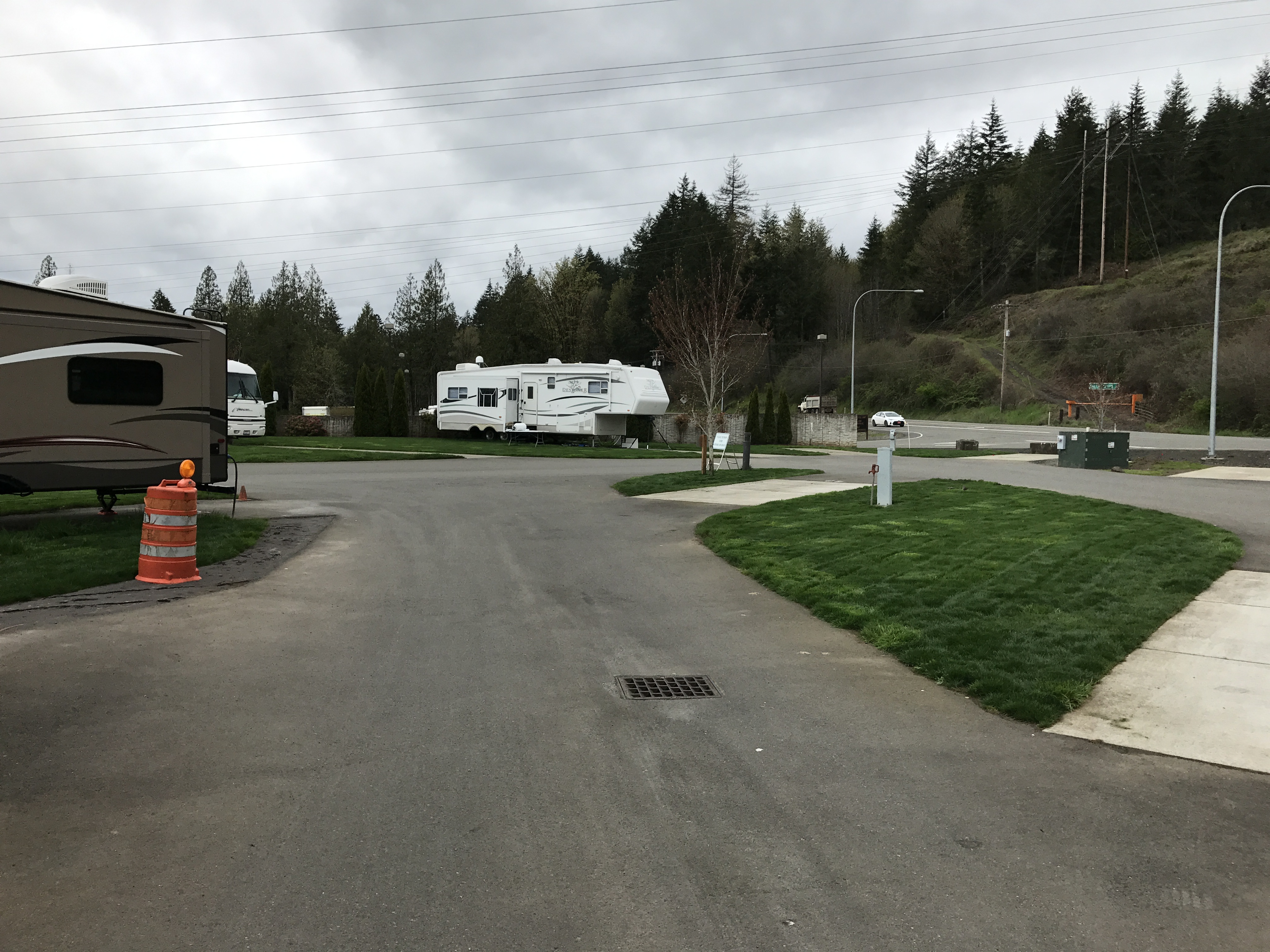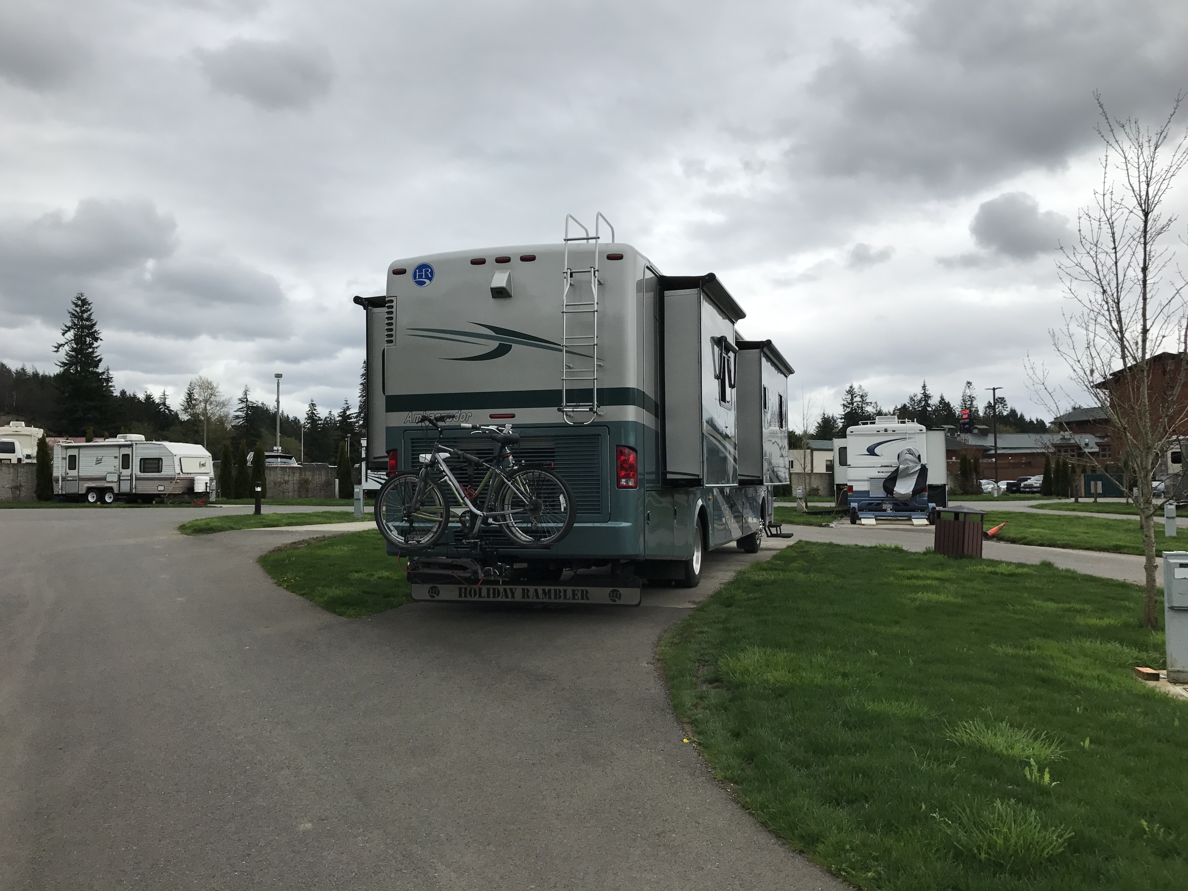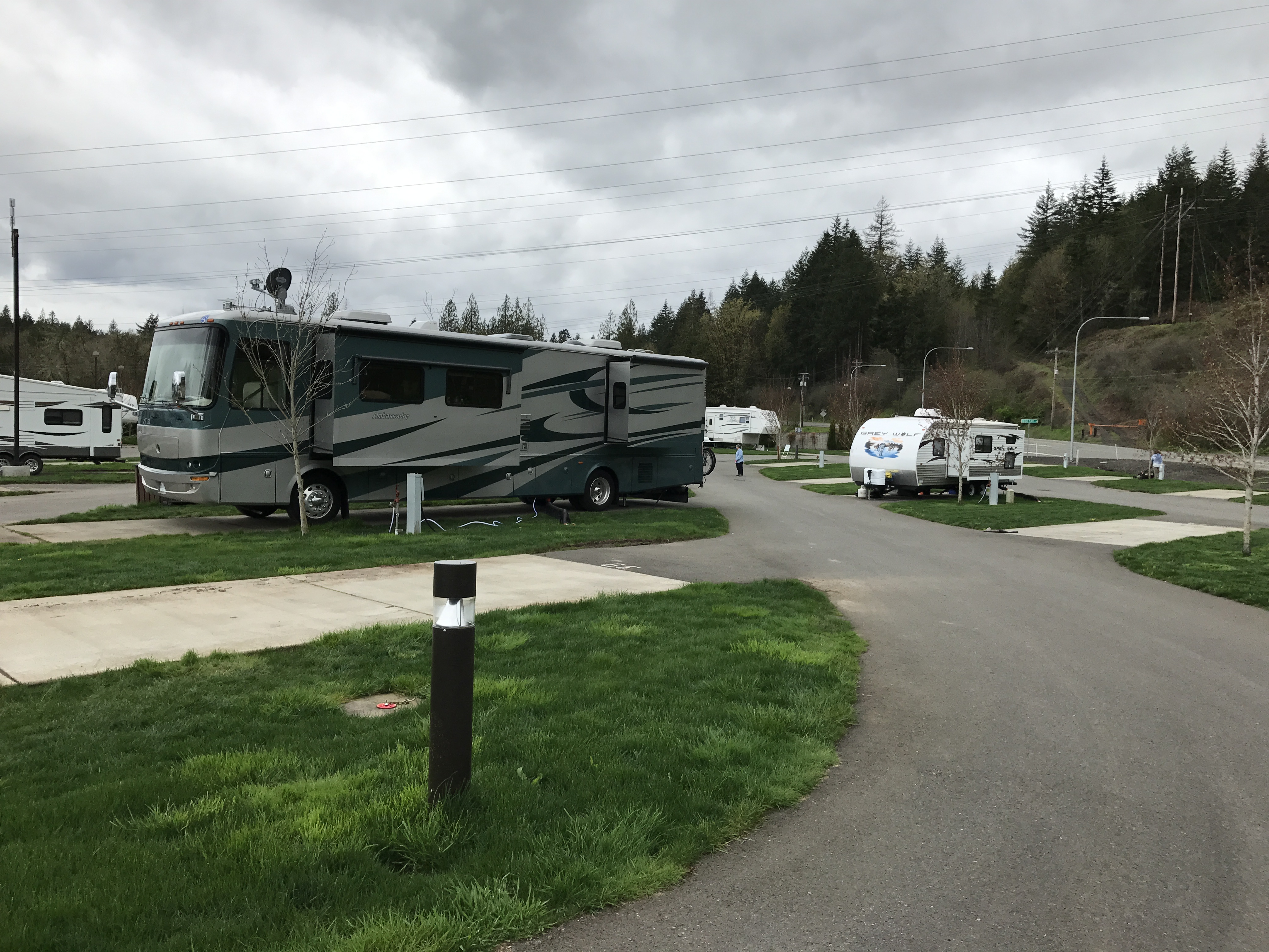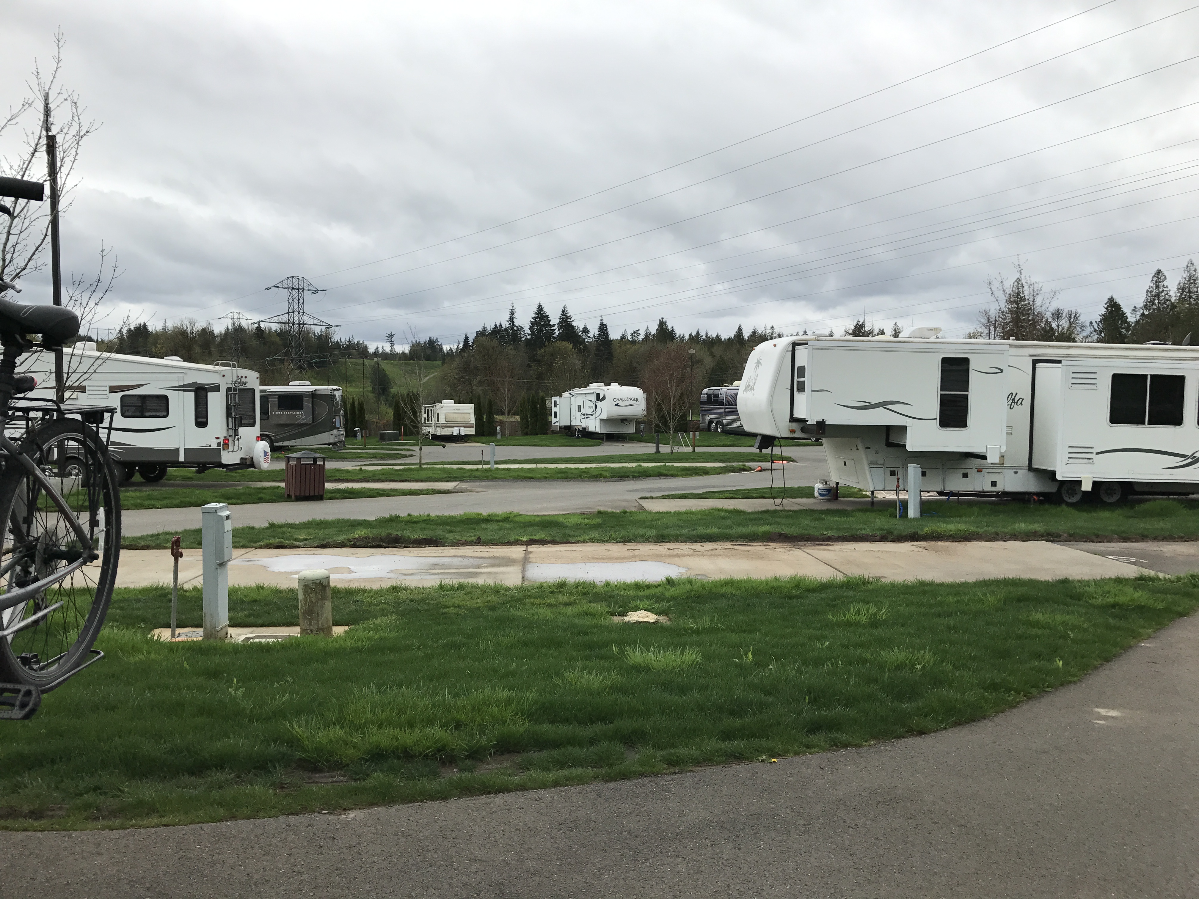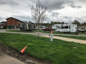 Setting: Sites are spaced out with cement pads with grass between. Most of the 44 sites are pull-through varying in size from about 30 ft up to 60 ft.(Would suggest booking early for a larger site. We were not able to park our car on site but there is plenty of room a short walk away. Restrooms and showers are very clean, tile floor to ceiling. Also have use of pool, and hot tub at resort. Restaurants are available at the casino. Very well maintained. We will stay here again.