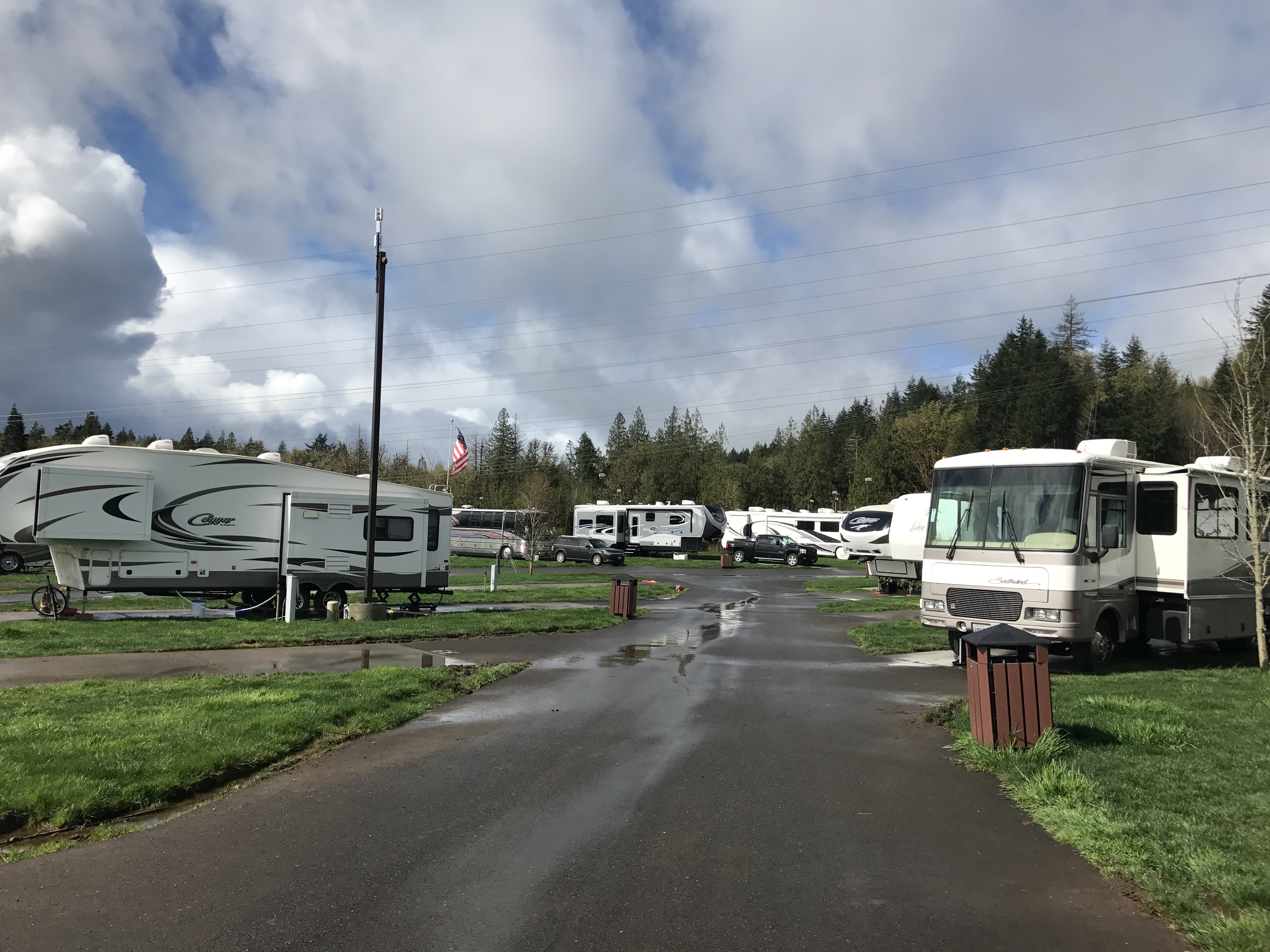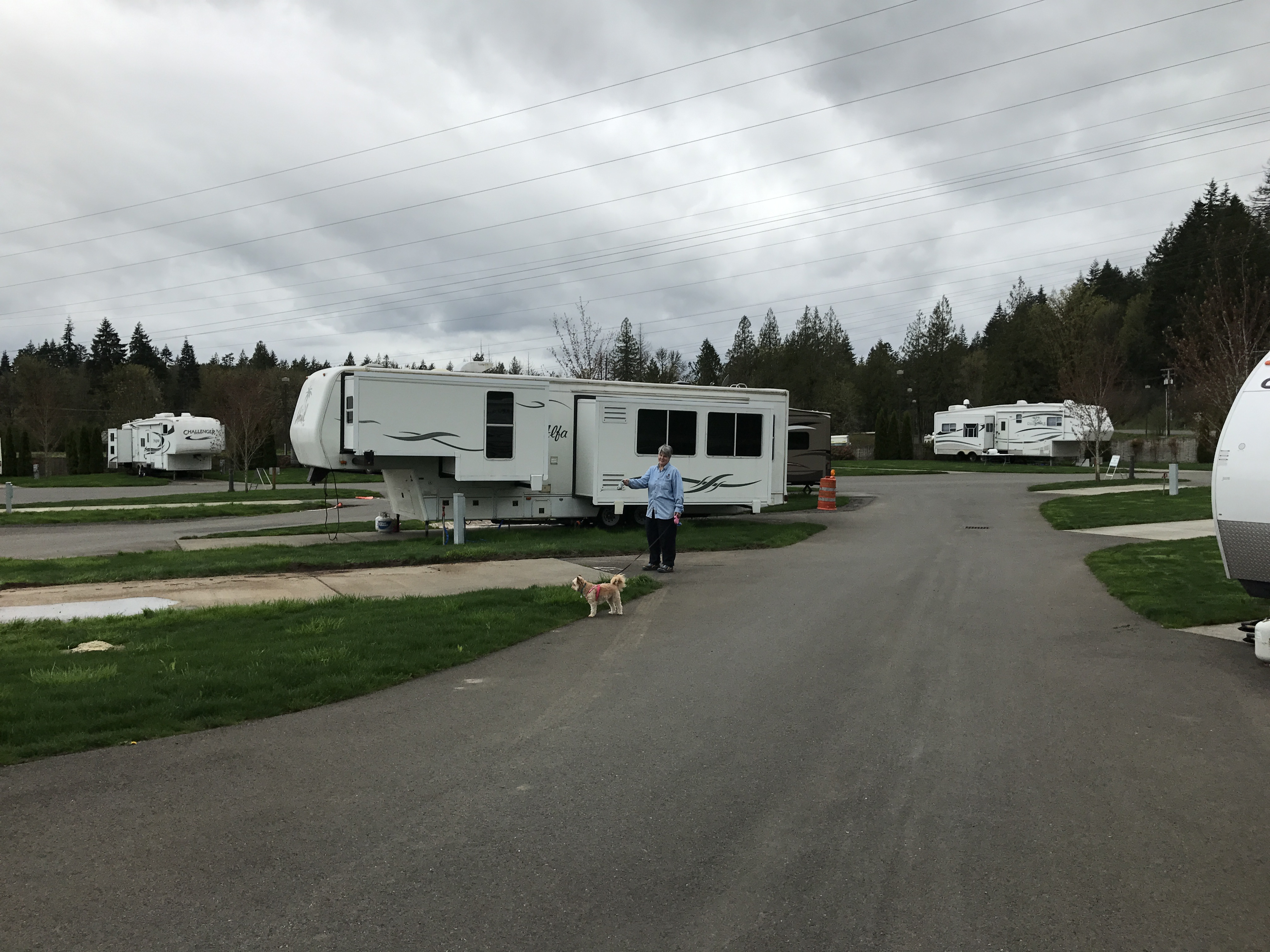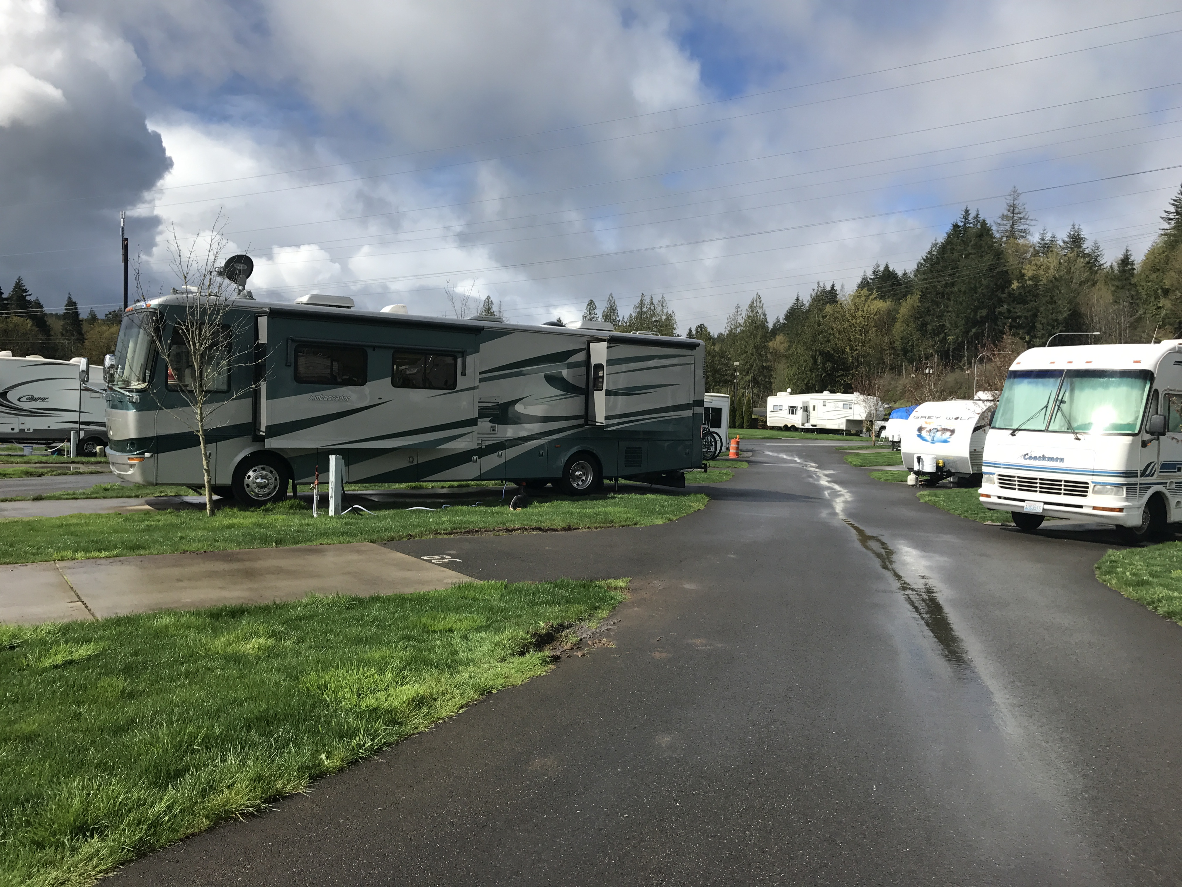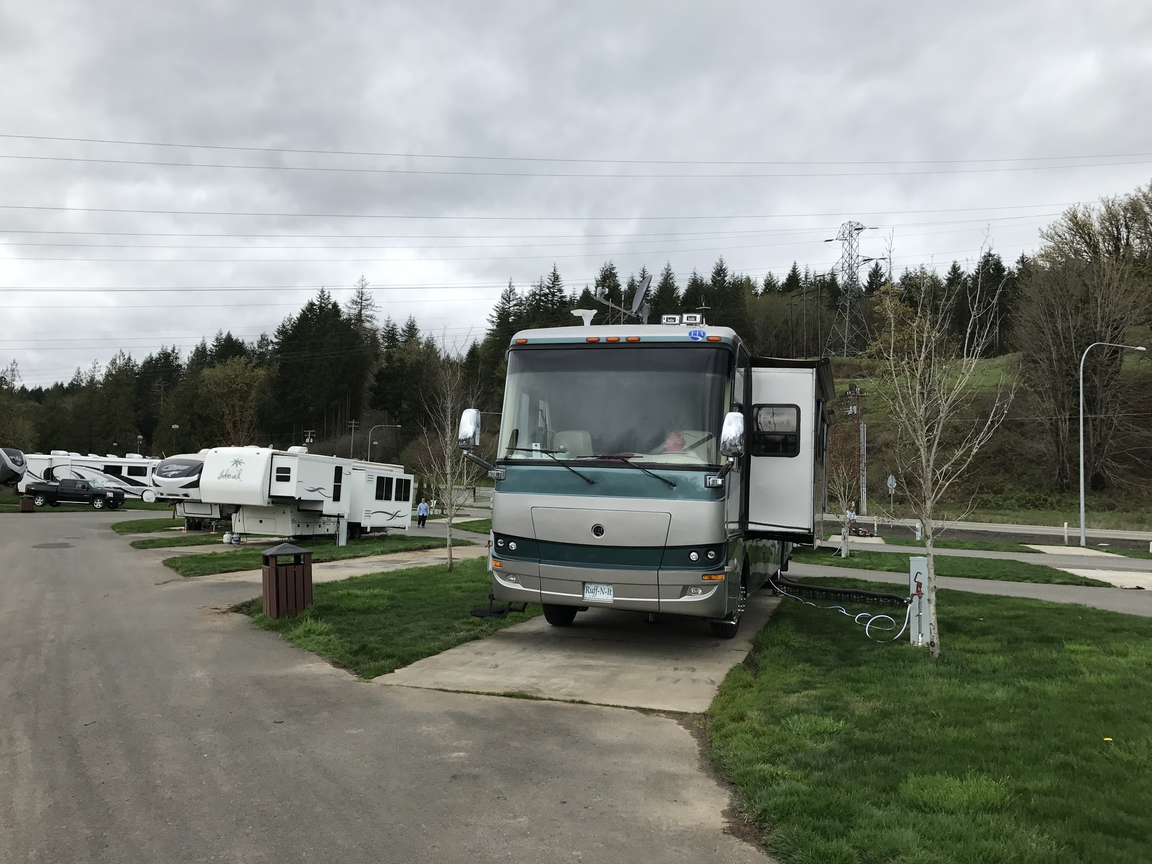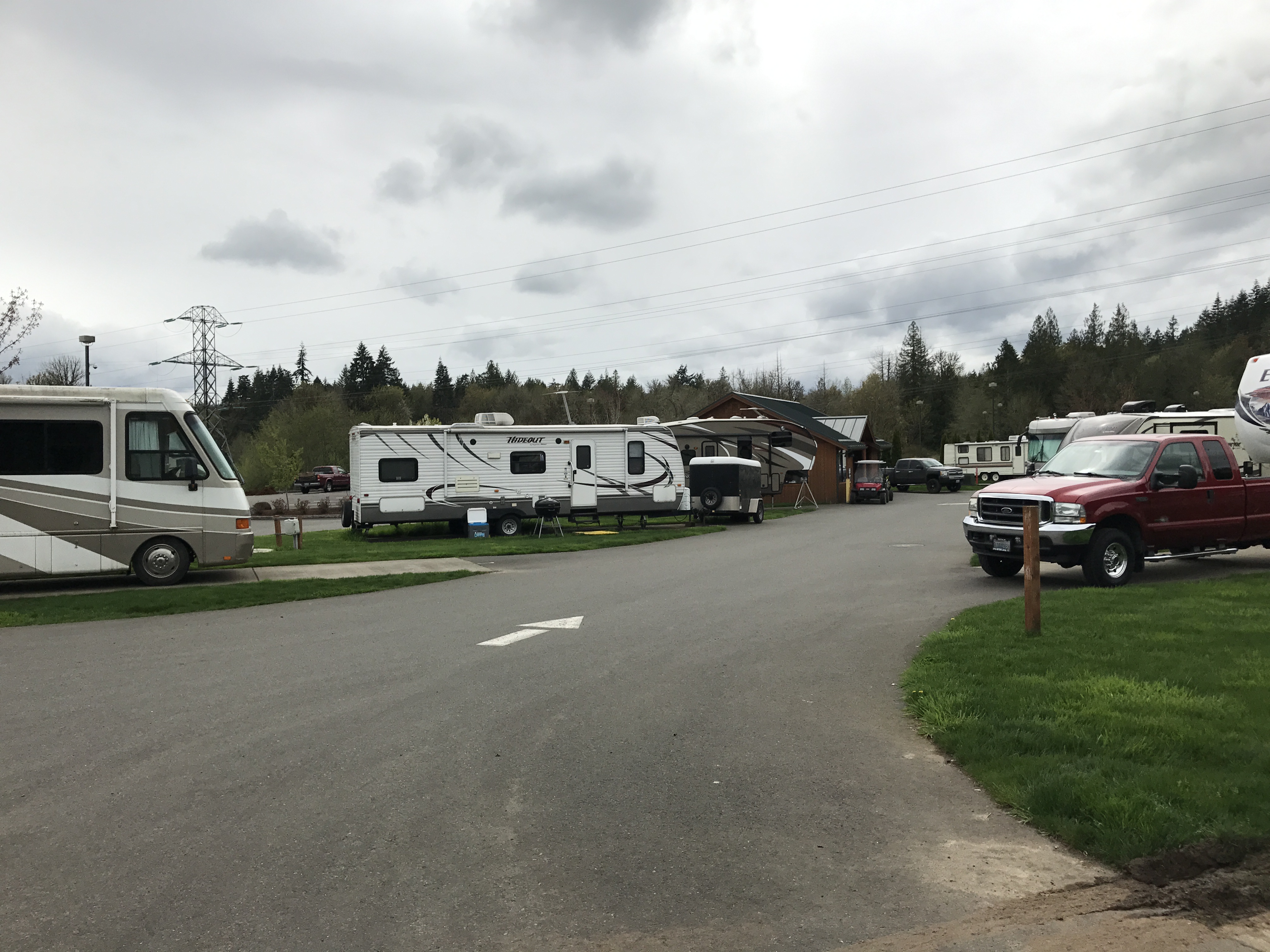 Setting: Sites are spaced out with cement pads with grass between. Most of the 44 sites are pull-through varying in size from about 30 ft up to 60 ft.(Would suggest booking early for a larger site. We were not able to park our car on site but there is plenty of room a short walk away. Restrooms and showers are very clean, tile floor to ceiling. Also have use of pool, and hot tub at resort. Restaurants are available at the casino. Very well maintained. We will stay here again.