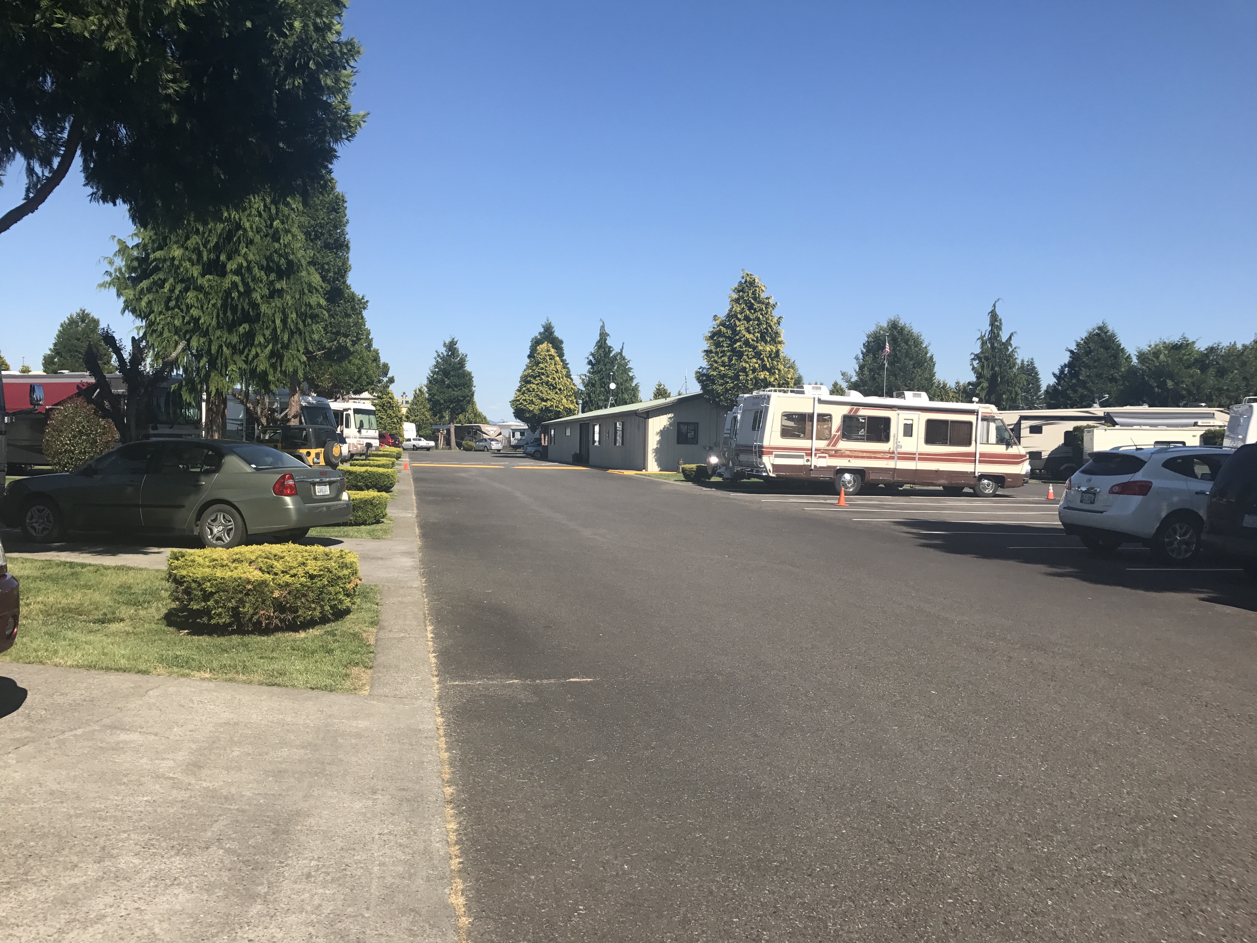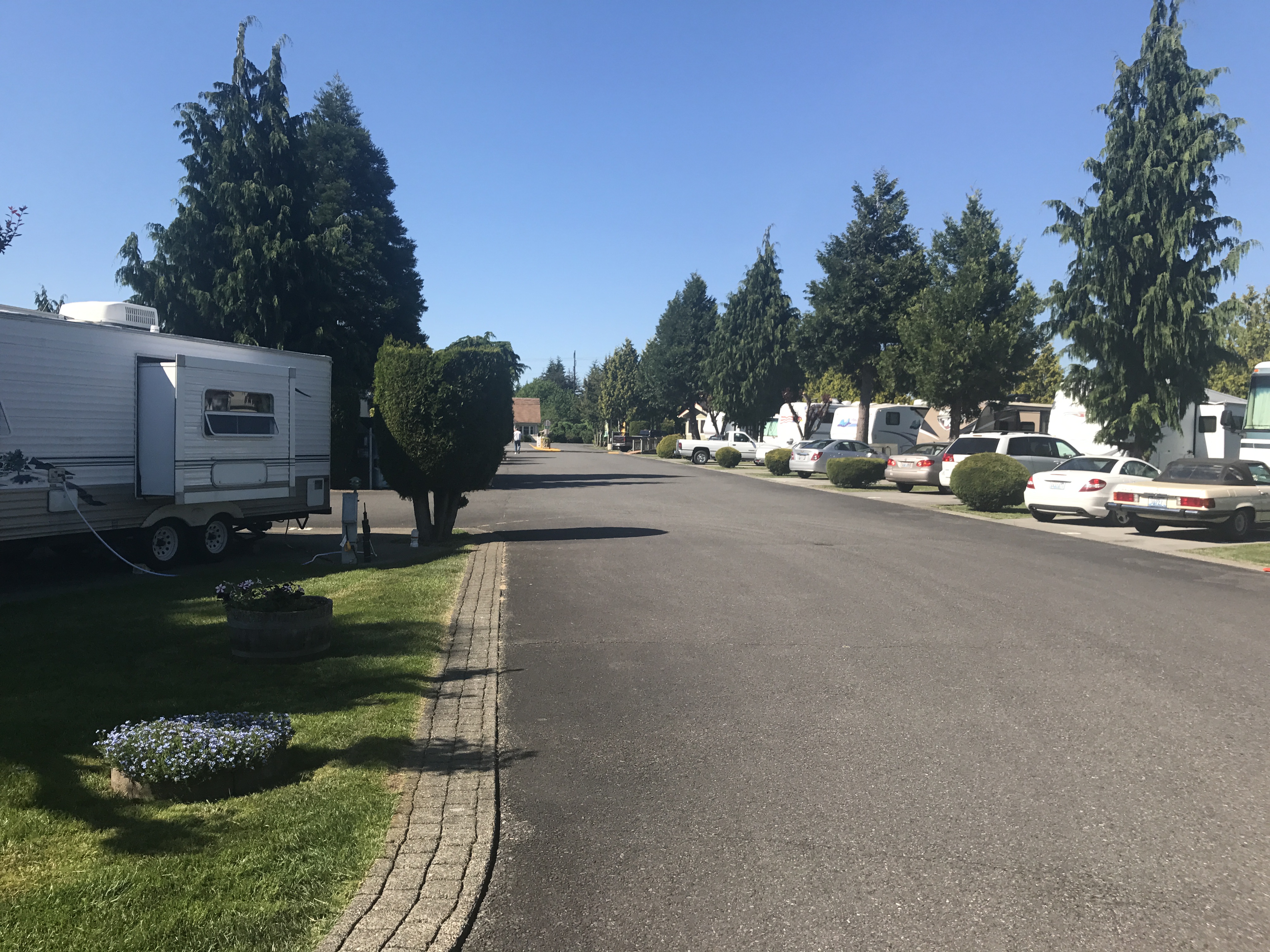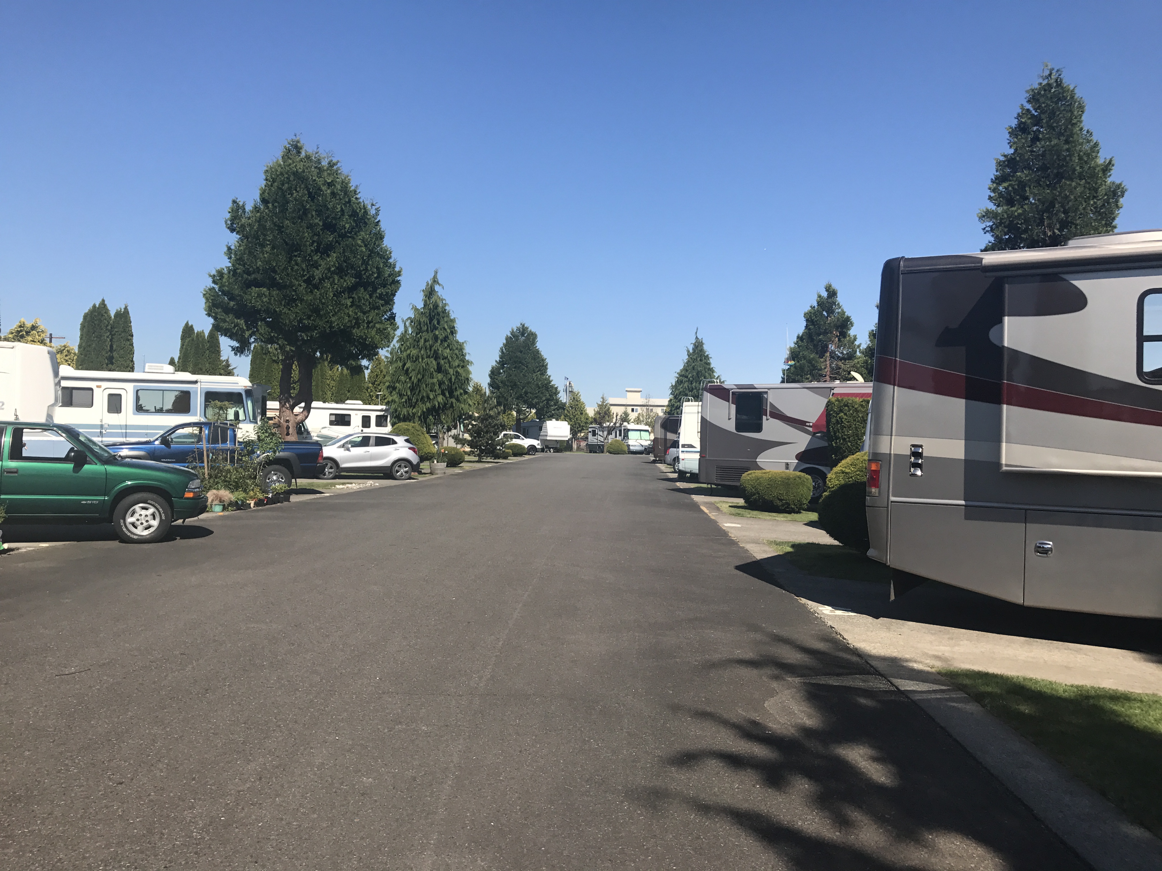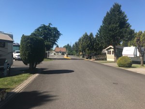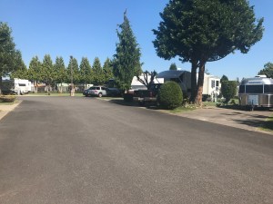 Setting: There are a lot of permanents/seasonal rigs in the park that occupy the back in spots around the perimeter of the park and the rigs that show up for a day or two get assigned the pull thrus. We were given a pull thru 30 amp electric with all the services located at the rear, well away from our sewer opening. The sites are about 60 foot long concrete pull thrus and ours was fairly of level. There are bushes and mature trees that provide some screening, no picnic benches or patios but there is some grass to sit out at night. There was a common room but it was locked. The WIFI is strong and cable is good. The temperature was in the high 80’s and with only 30 amps we were able to only run one AC unit making it a little uncomfortable. Judy’s Country Kitchen has great food but closes at 2:00 and is located at the front of the park, just a short walk.