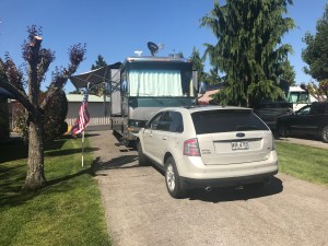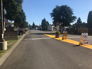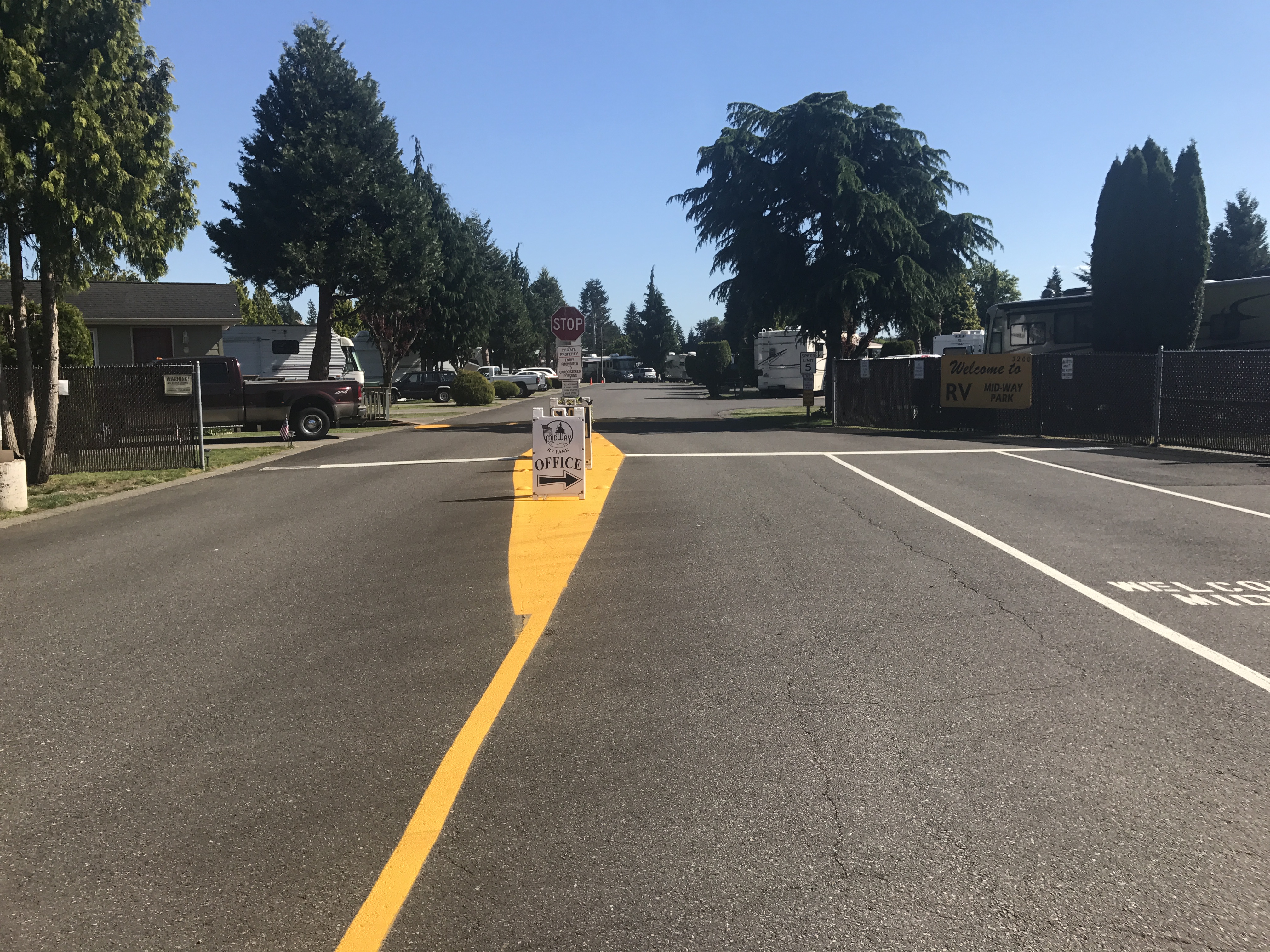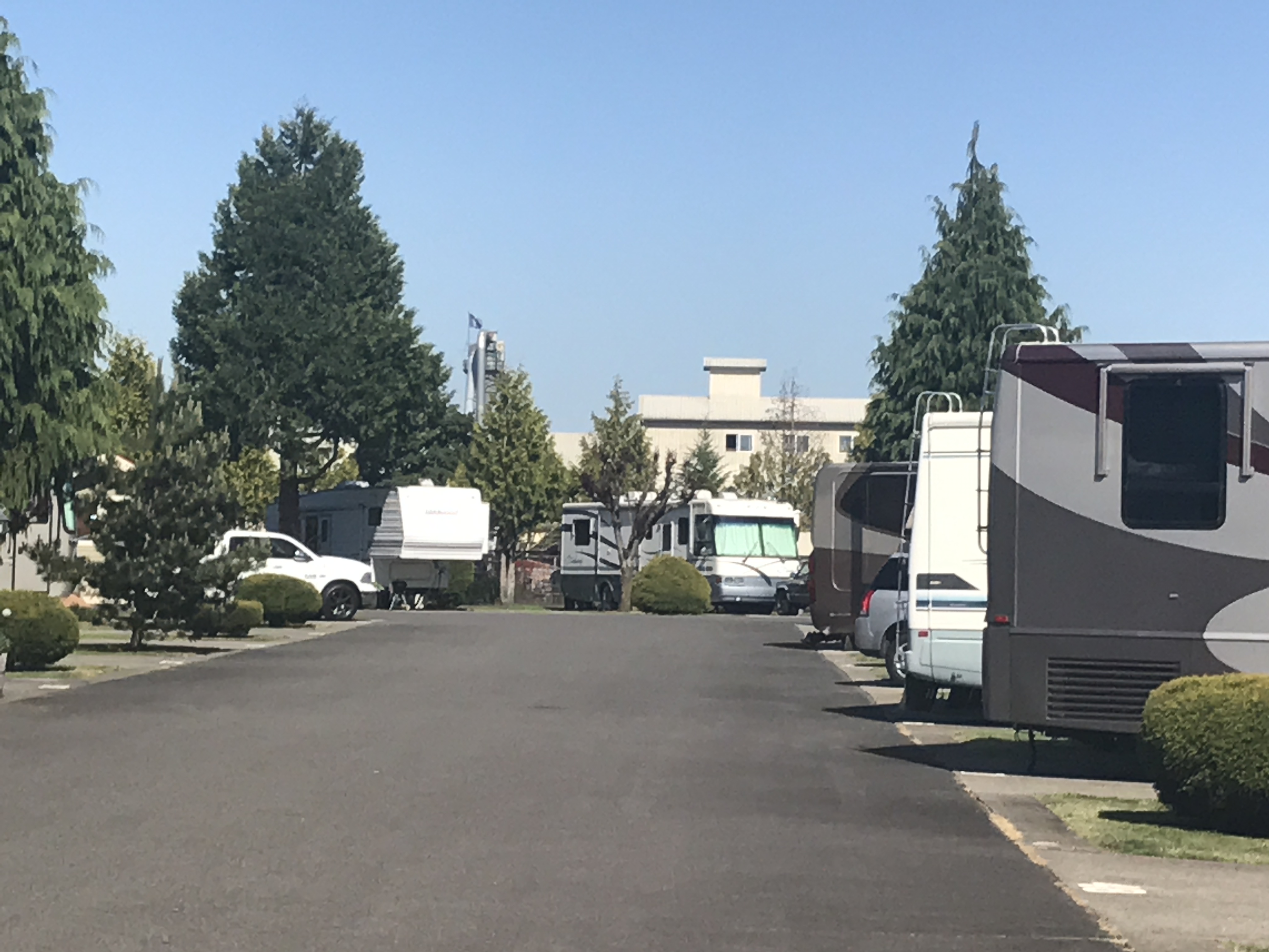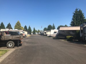 Setting: There are a lot of permanents/seasonal rigs in the park that occupy the back in spots around the perimeter of the park and the rigs that show up for a day or two get assigned the pull thrus. We were given a pull thru 30 amp electric with all the services located at the rear, well away from our sewer opening. The sites are about 60 foot long concrete pull thrus and ours was fairly of level. There are bushes and mature trees that provide some screening, no picnic benches or patios but there is some grass to sit out at night. There was a common room but it was locked. The WIFI is strong and cable is good. The temperature was in the high 80’s and with only 30 amps we were able to only run one AC unit making it a little uncomfortable. Judy’s Country Kitchen has great food but closes at 2:00 and is located at the front of the park, just a short walk.