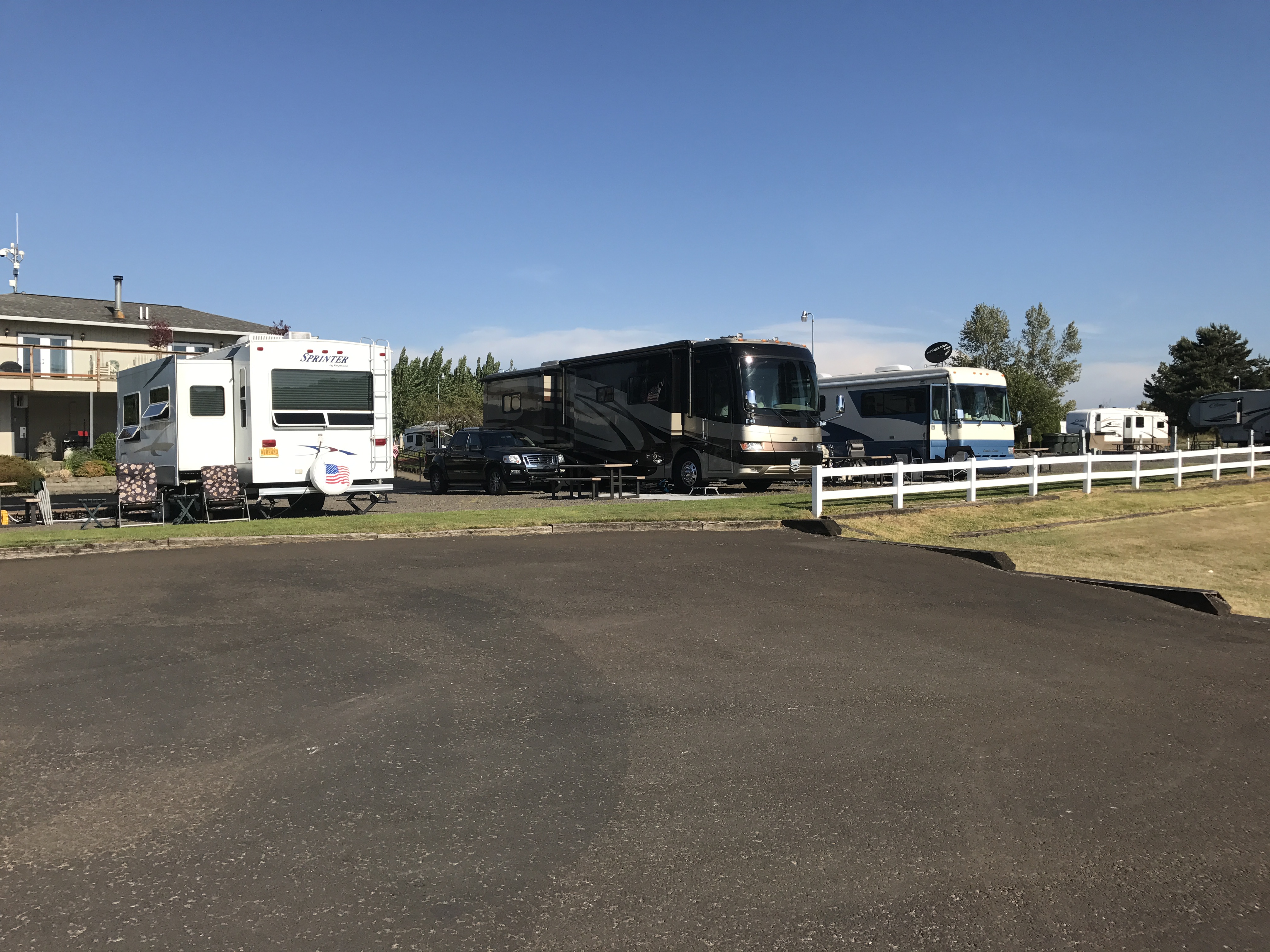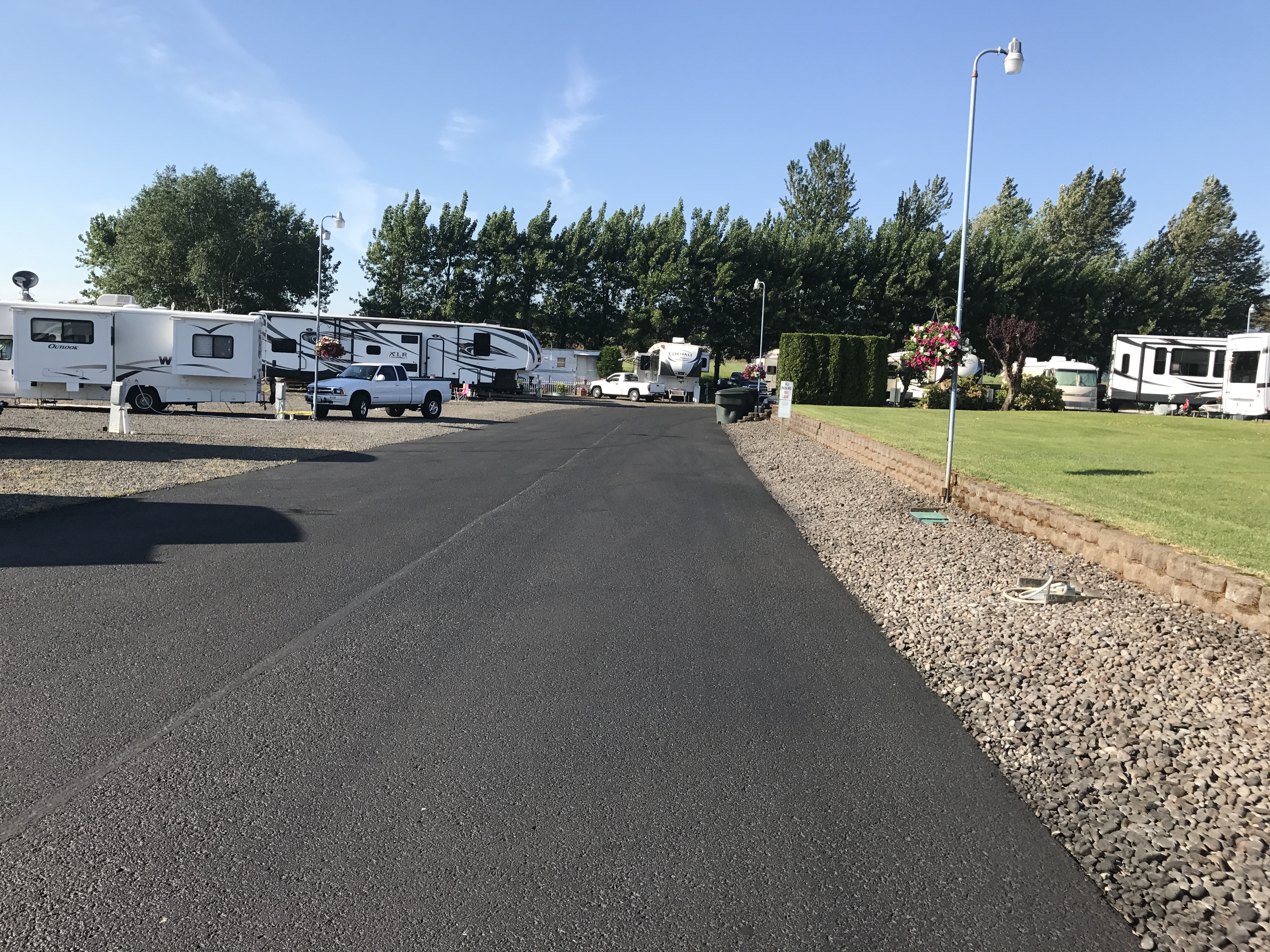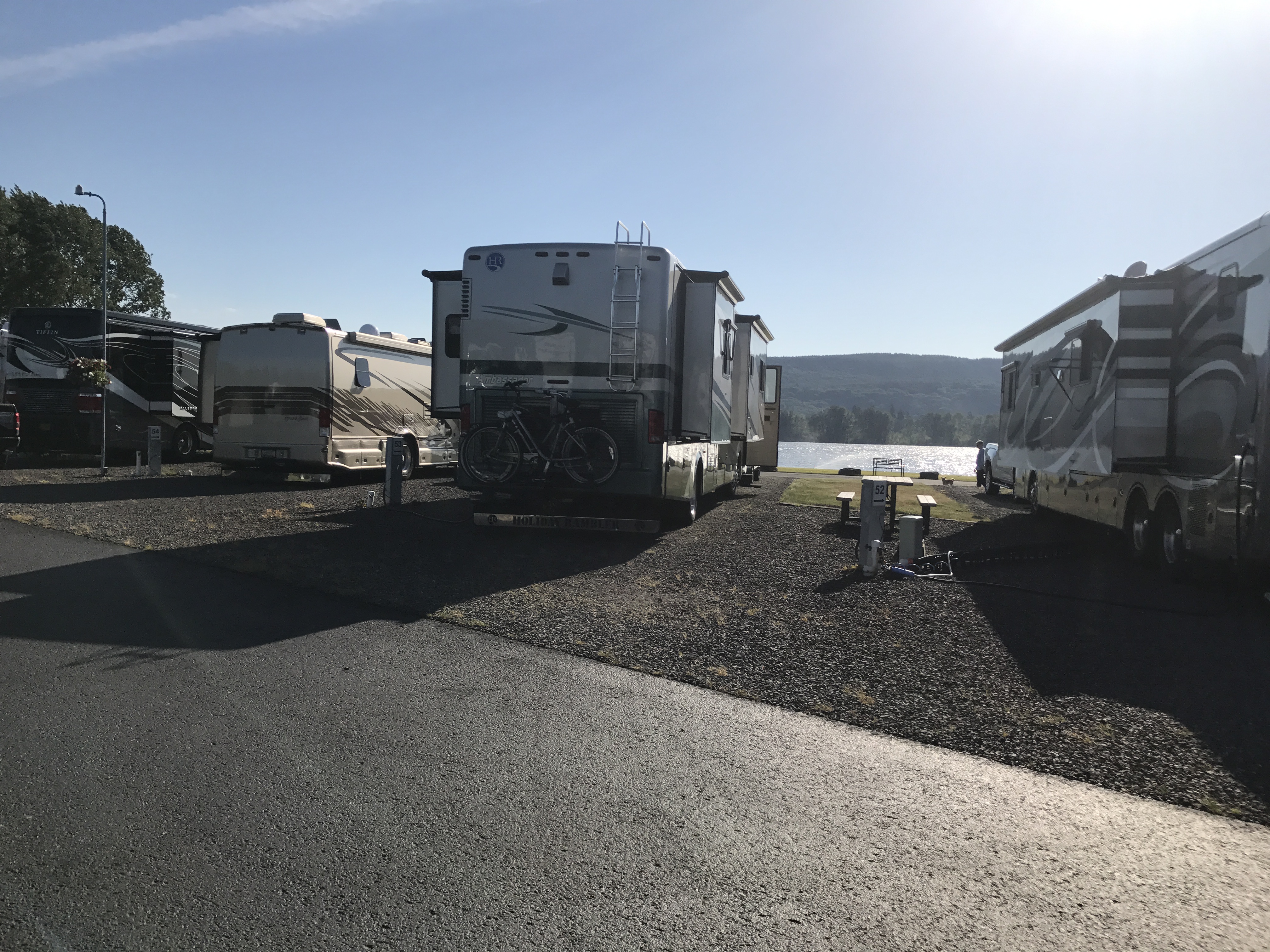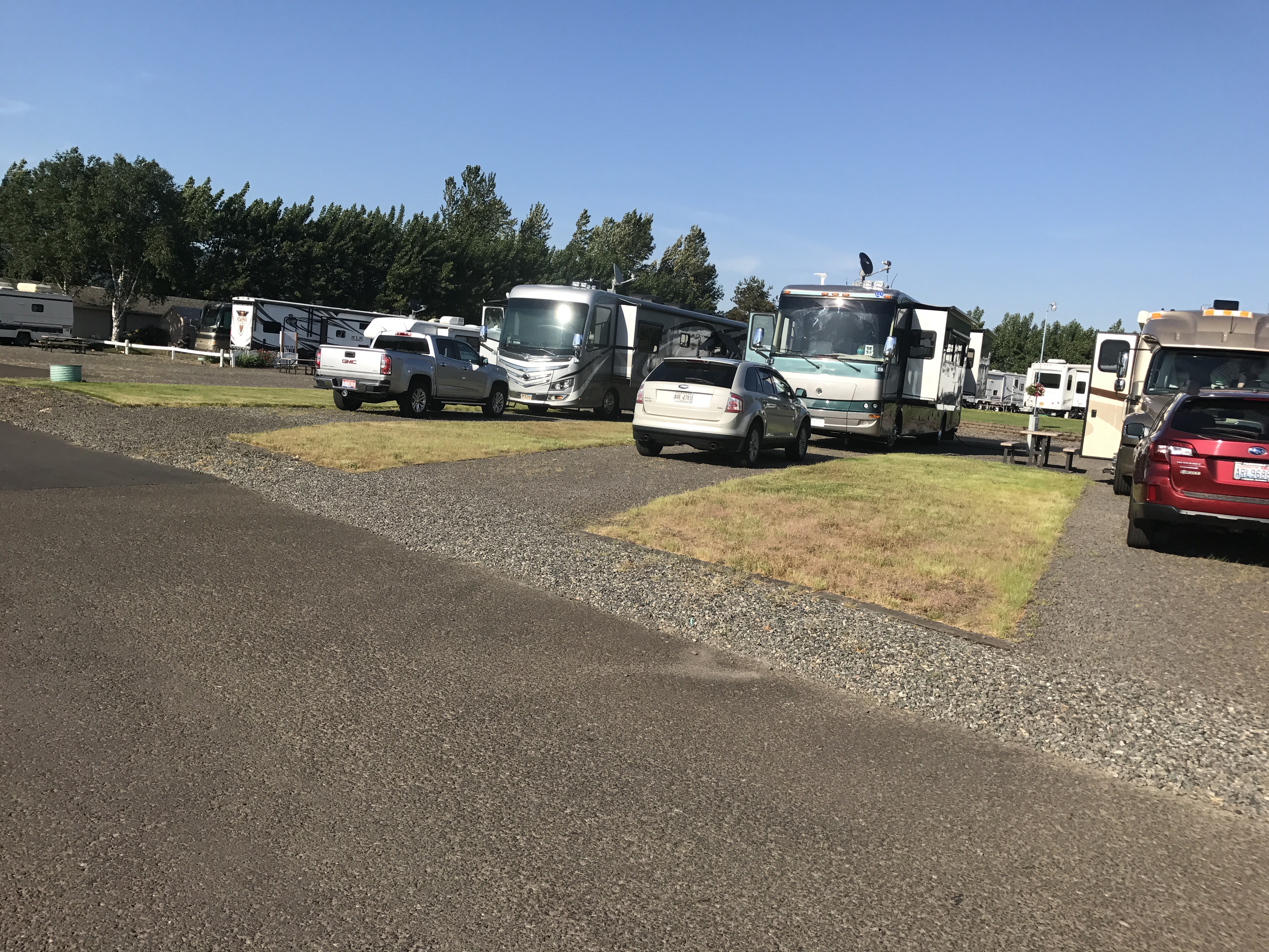 Setting: This is a nice, clean, well run park. Interior roads are paved and well maintained. Pads are fairly level on gravel. Some sites have grass, quite a few don’t. My only complaint is that there is the impression that management appears to be a bit over zealous in their enforcement of park rules, making one watch over ones shoulder for fear that they may be watched, and then yelled at for some infraction. It is very Important to Note: When checking in, be sure you show your Good Sam card PRIOR to using your credit card to pay for your stay…or you will not get the Good Sam discount.