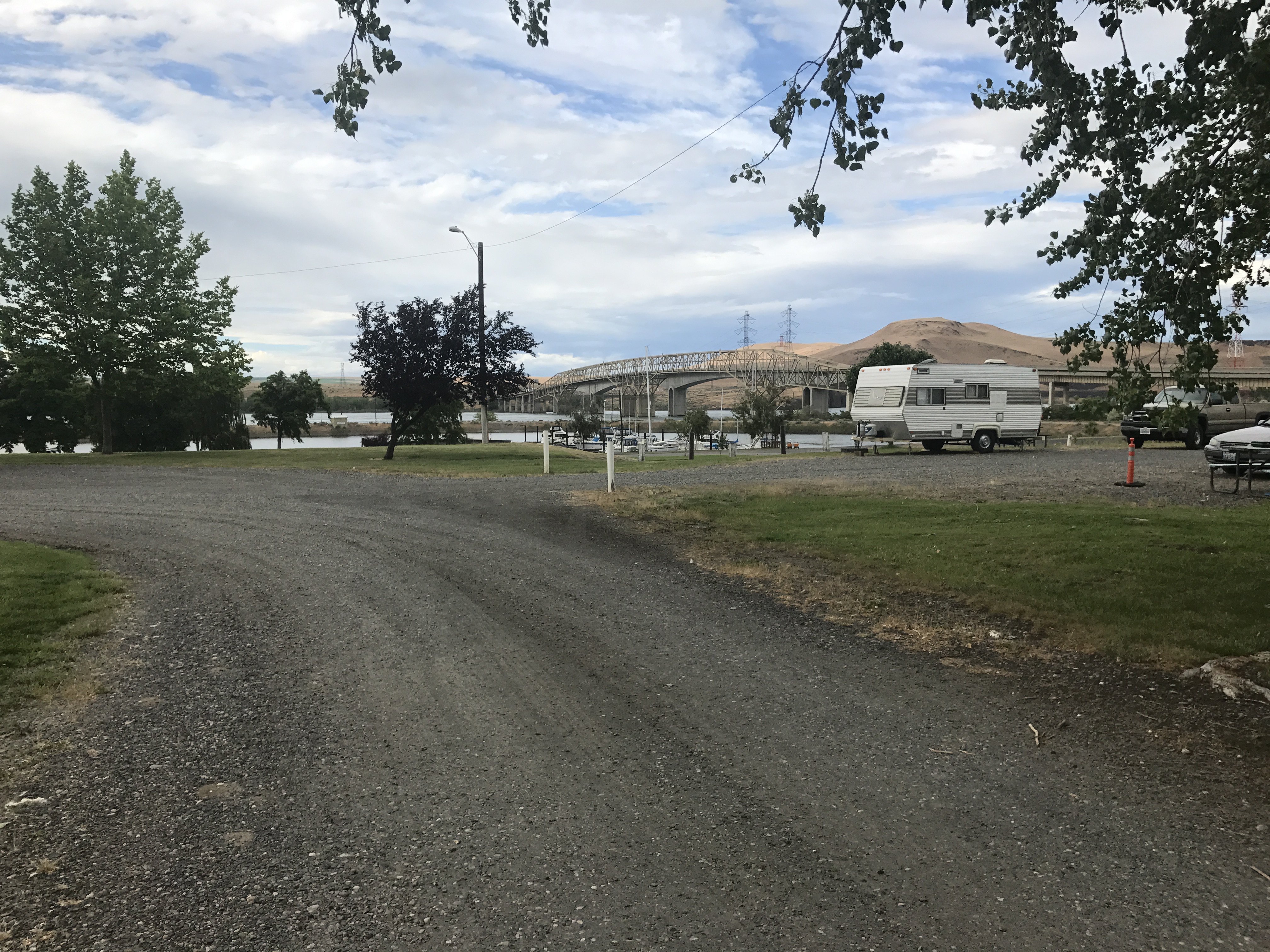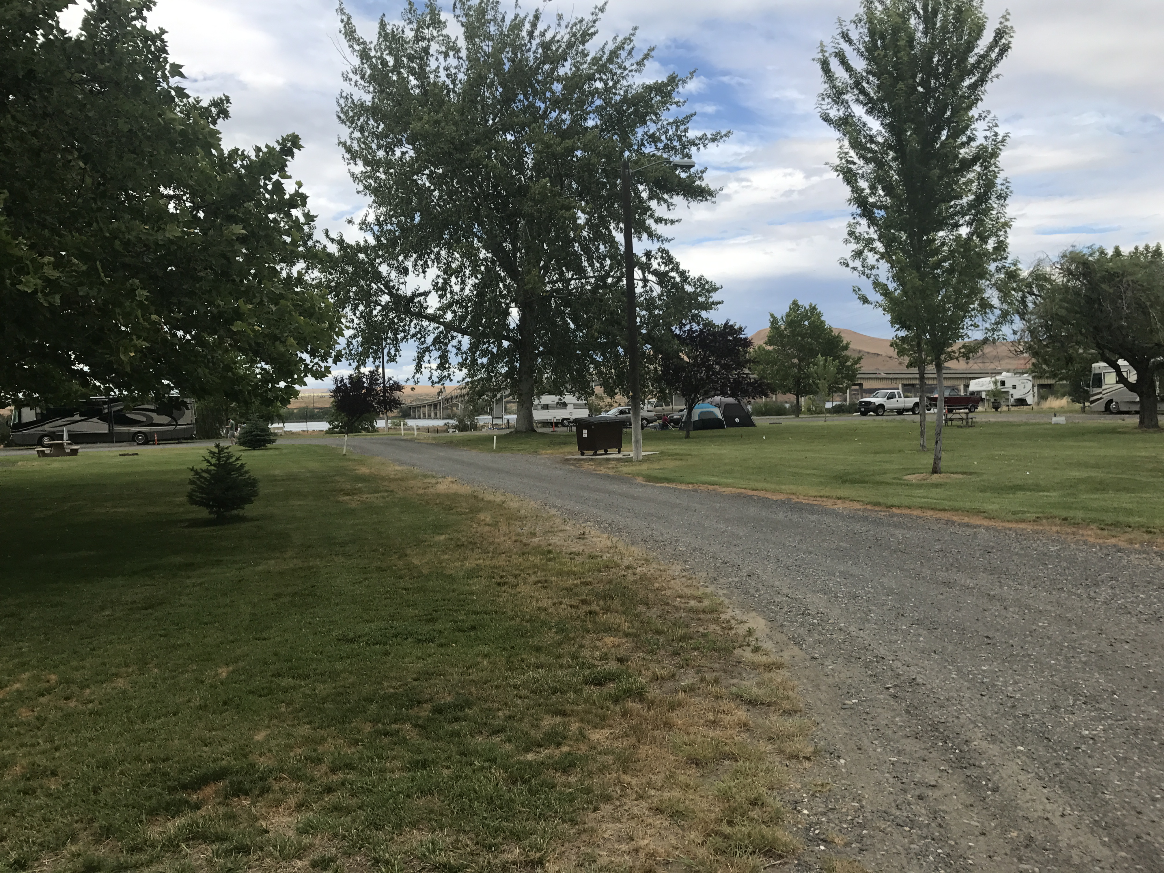 Setting: Park roads are gravel and in good condition. Our site was a level gravel back-in with a nice concrete picnic table, fire ring, and shade tree. Perimeter sites are mainly pull-through and interior sites are back-in. There are only six Columbia River view sites with 50 Amp service so reserve well in advance for these spots, it was in the nineties during our stay and could only run front AC . Office manager was friendly and efficient. All utilities worked fine. No cable TV, but plenty of network stations off the antenna. Wi-Fi very strong and AT&T works well.