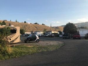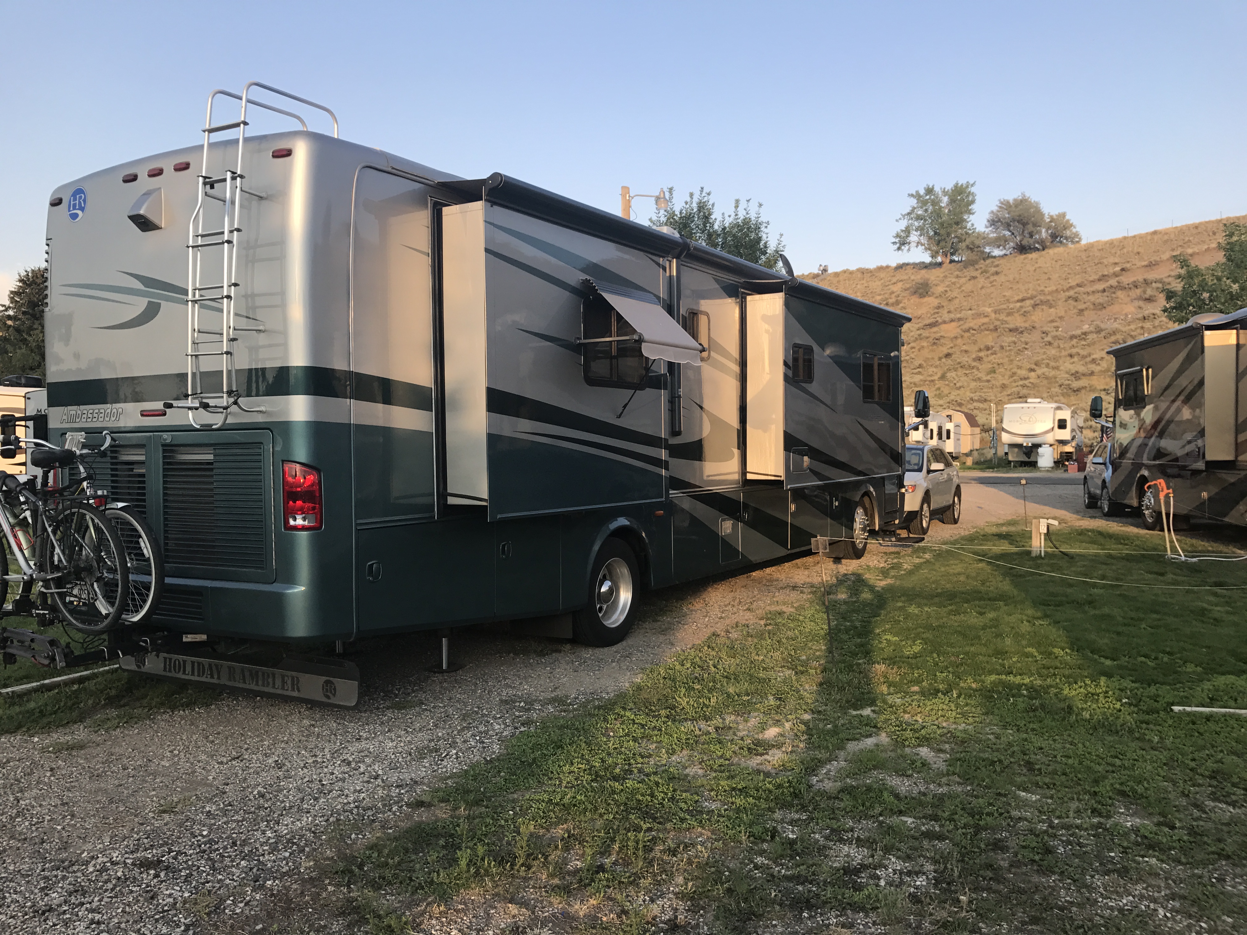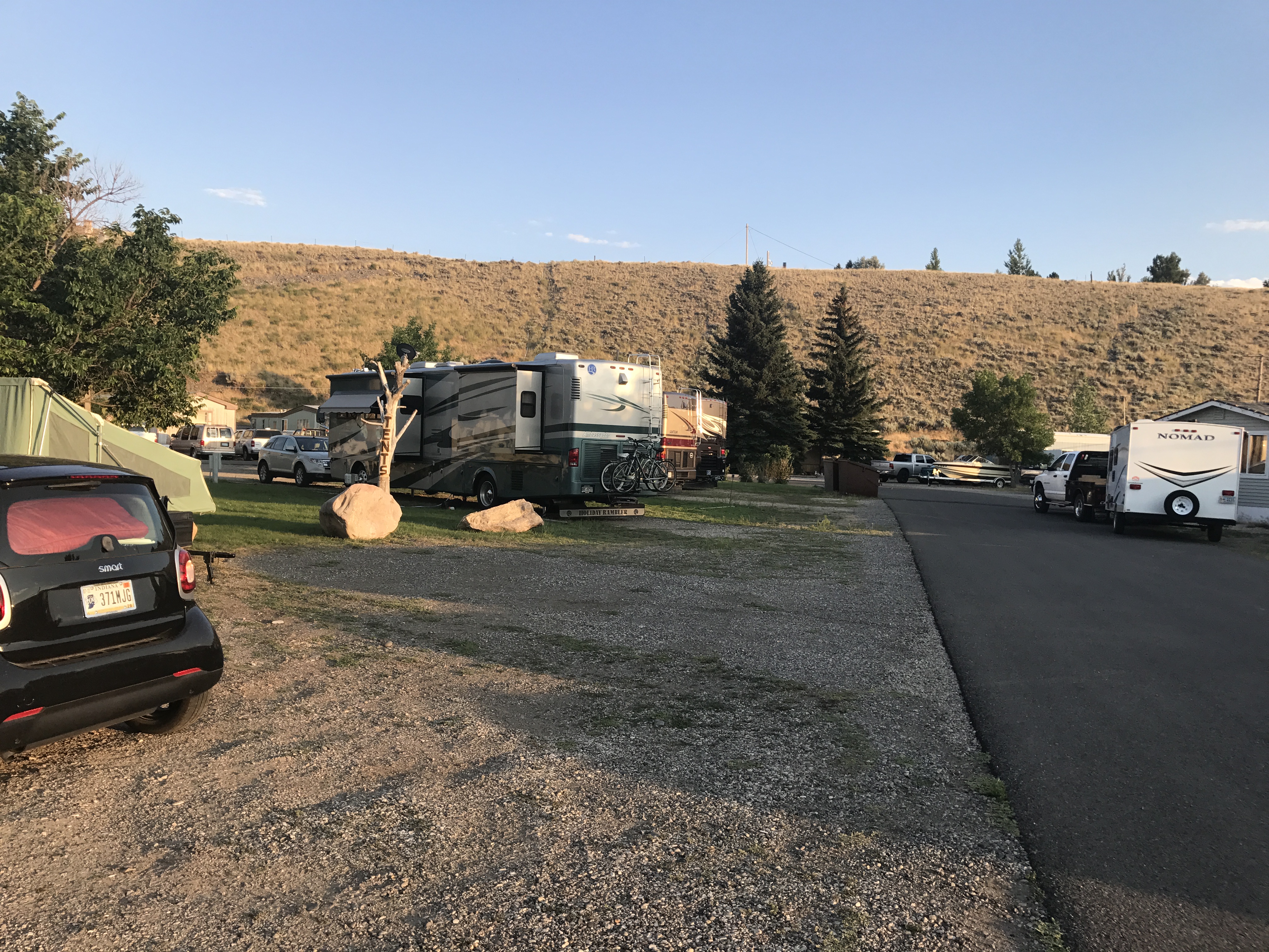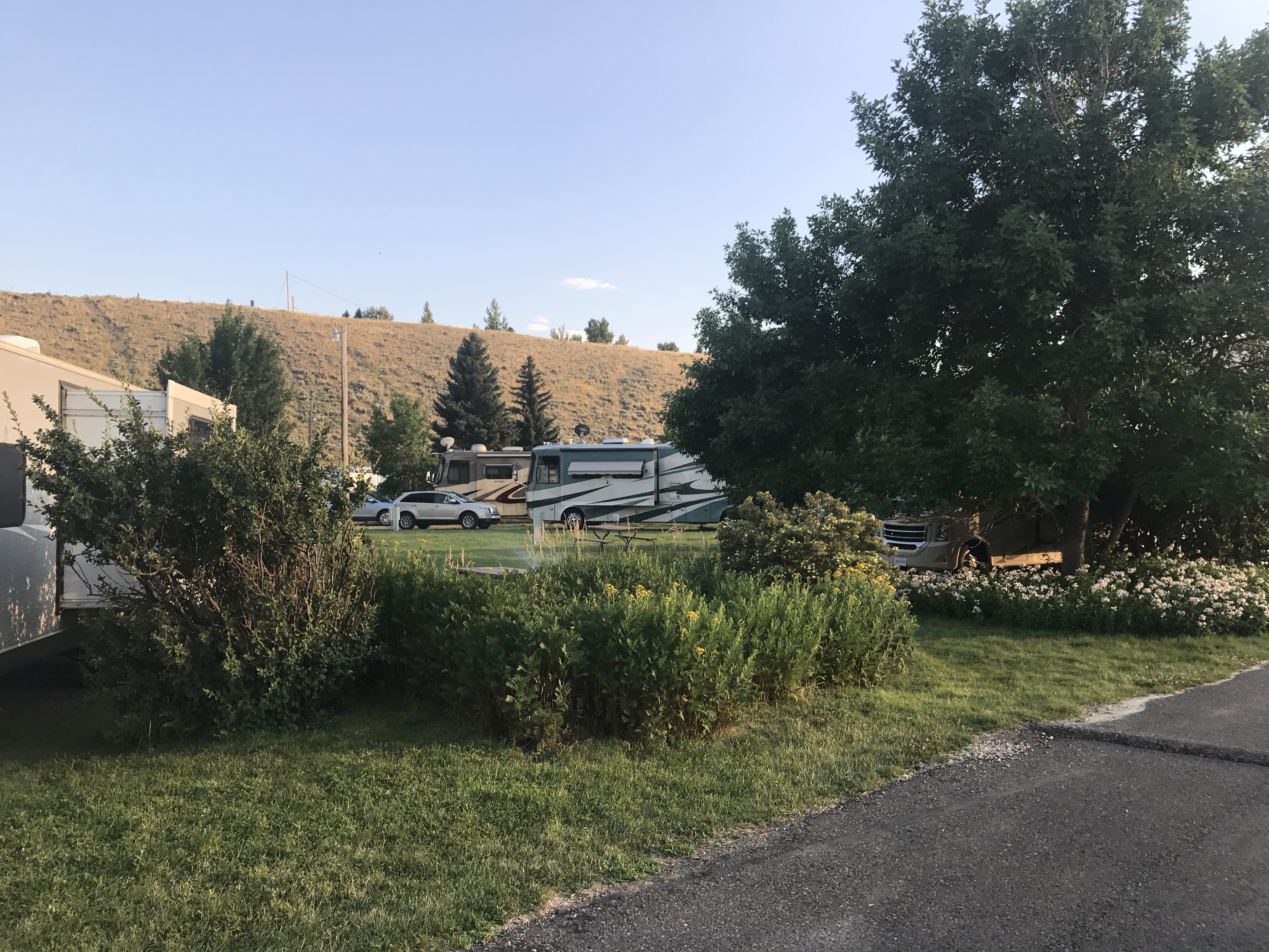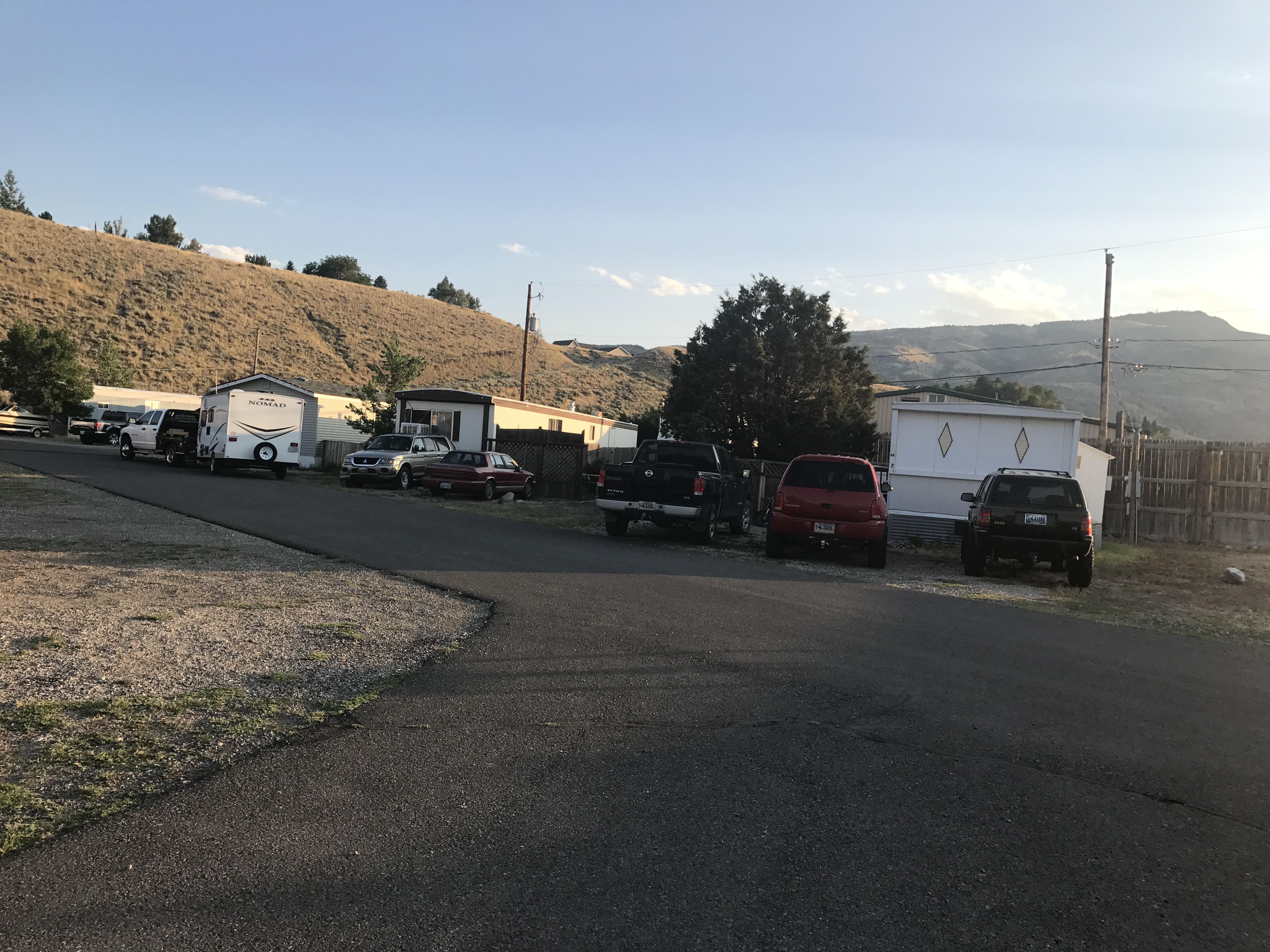 Setting: Small RV and trailer park with mobile homes around the perimeter and RV spaces in the center. The park was well maintained and staff was very friendly and helpful. Our site was spacious and had plenty of room for our slides plus a small grassy area with a picnic table. Full hookups with good water pressure. The park is off the main highway on the west side of town so easy access to everything in Cody. Wifi was weak and mostly unusable, AT&T only had 1 bar 4G service. If visiting the Cody area this is a reasonably priced RV park in a good location.