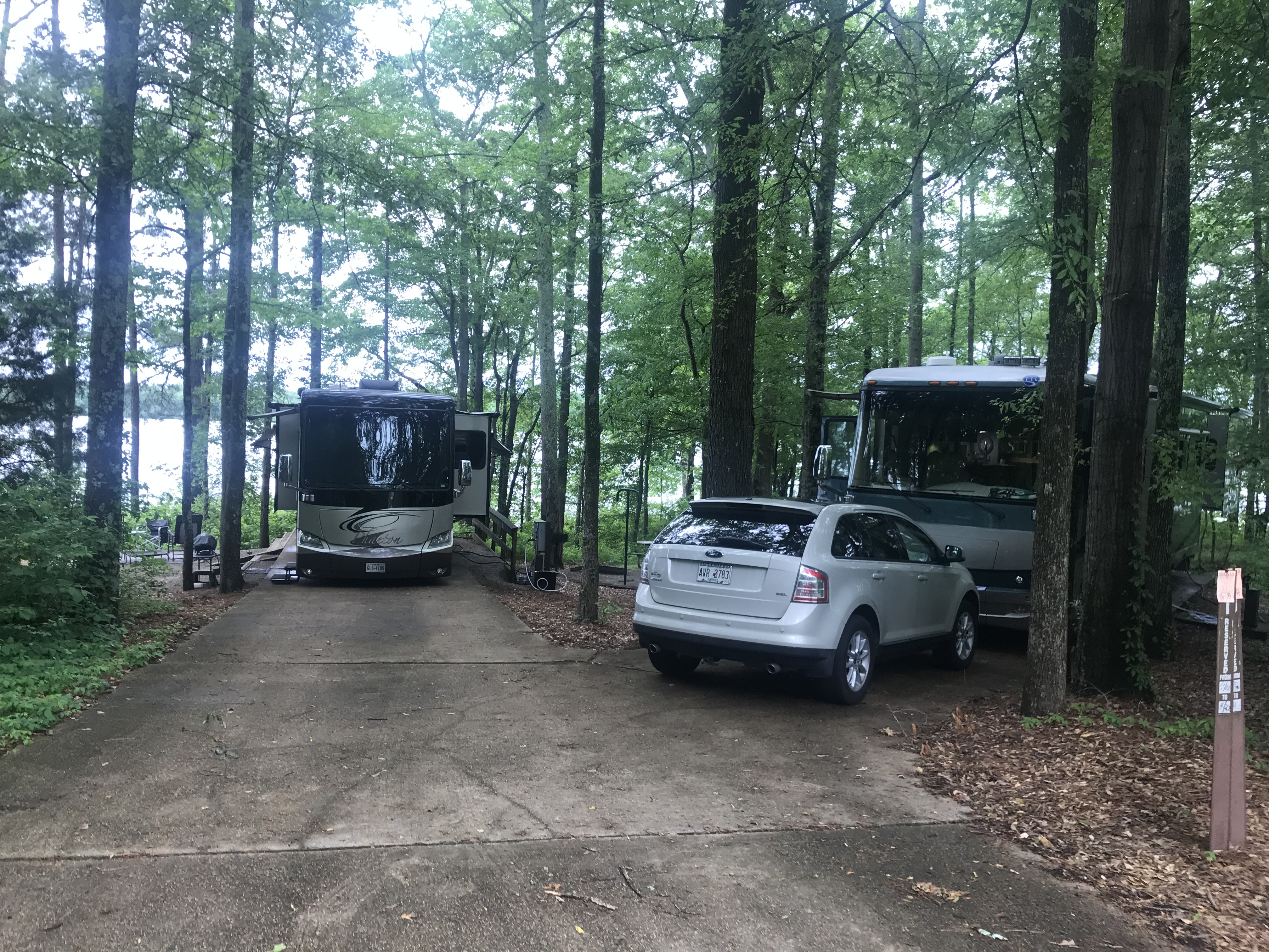 Setting: A lot of sites are unlevel and would be hard to set-up a larger RV, so be sure to select in advance, ours was level with a paved pad with mature pines to either side. There quite a few long term sites and these are the only one with sewer hook-ups. Hosts were friendly and access to I-40 was good. Burns Park is a very large city park many actives including golf course and nice biking trails.