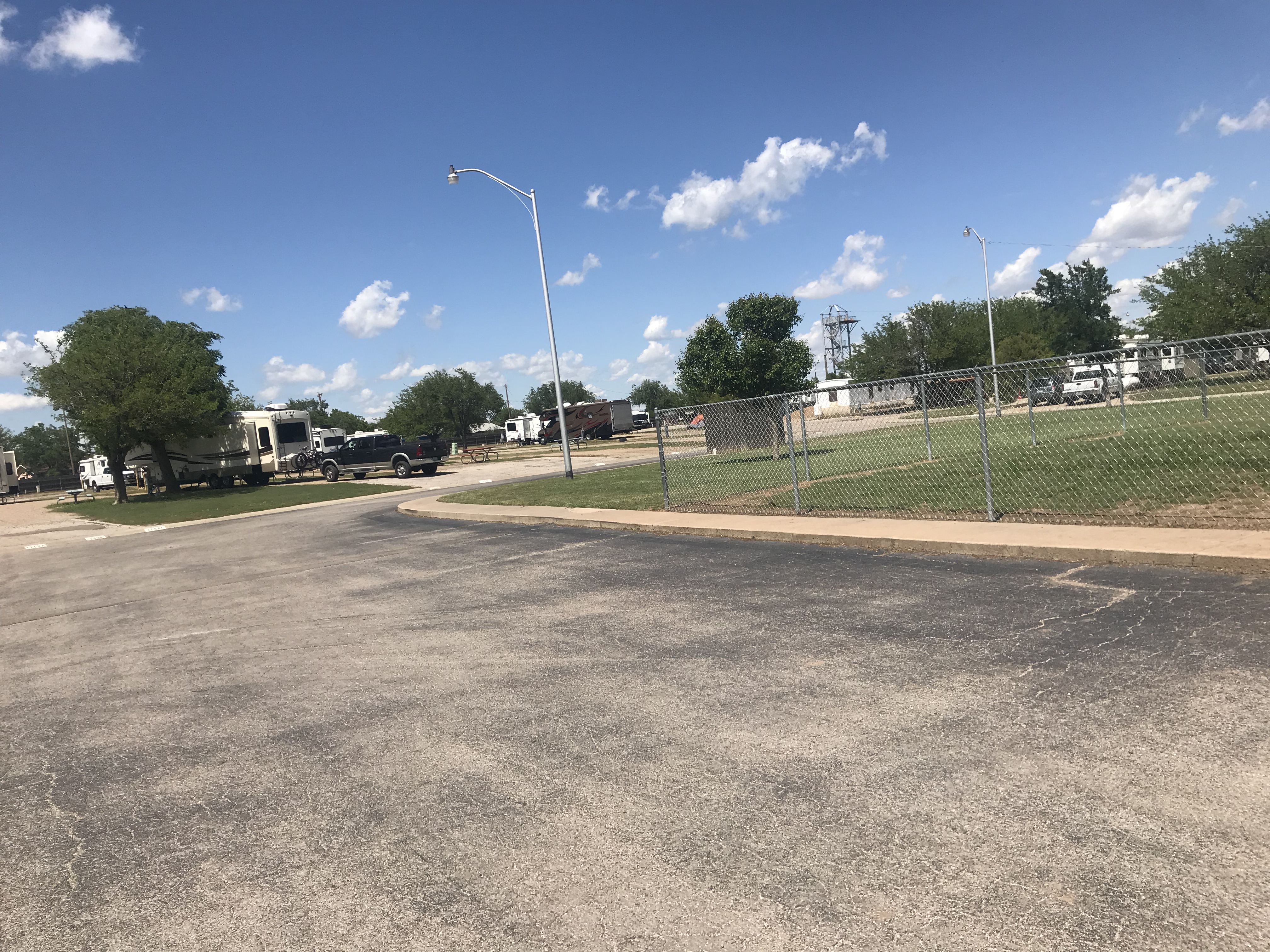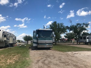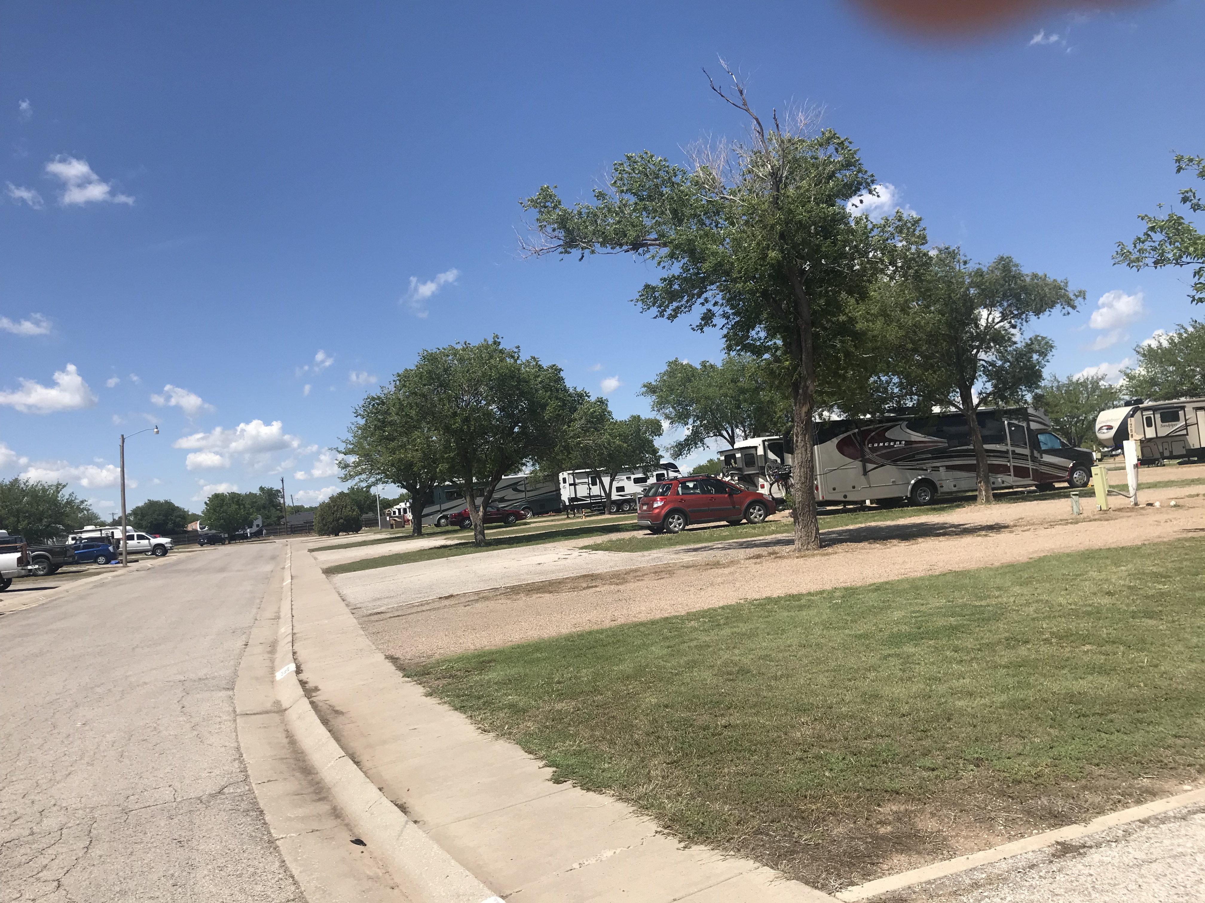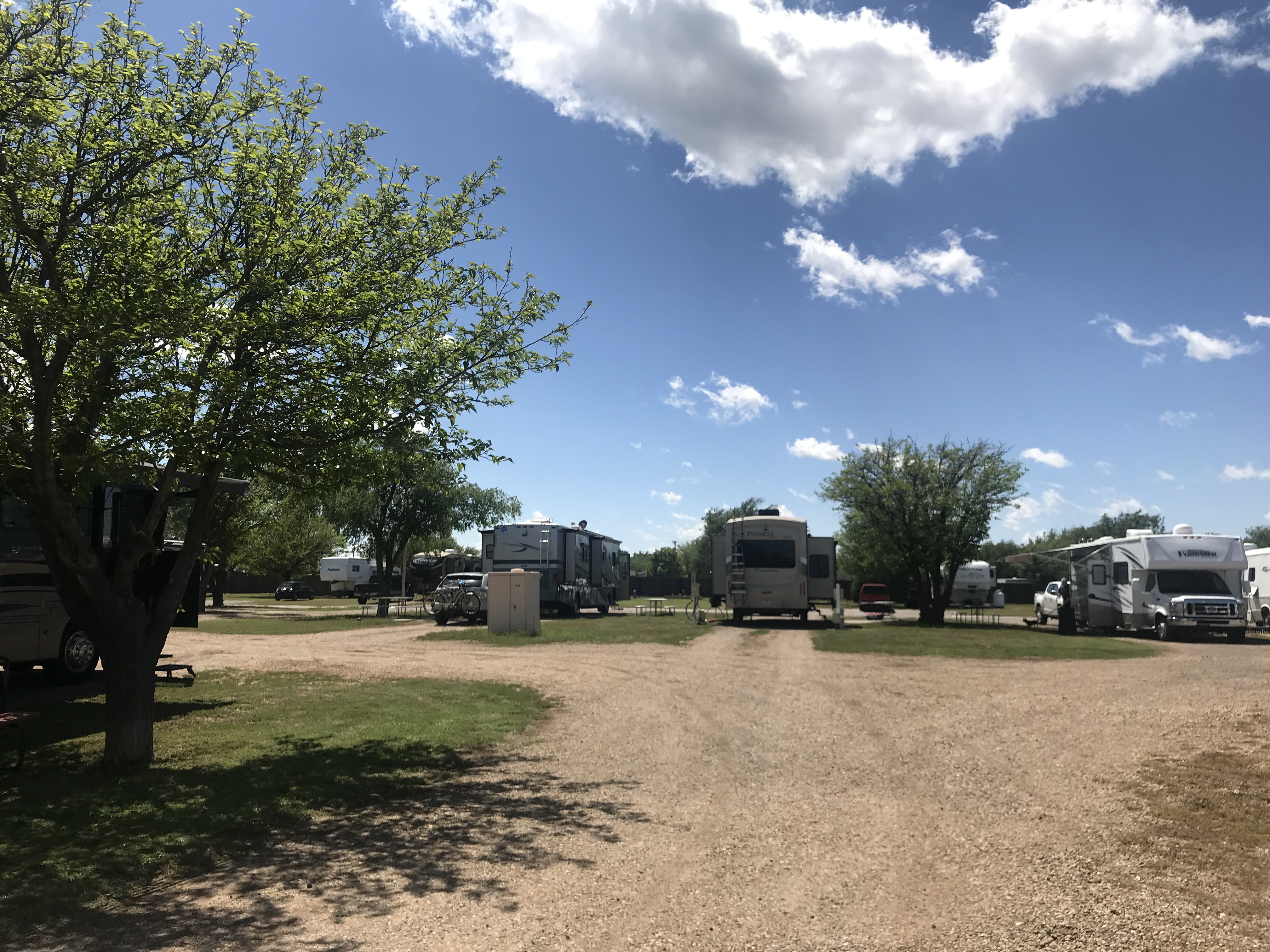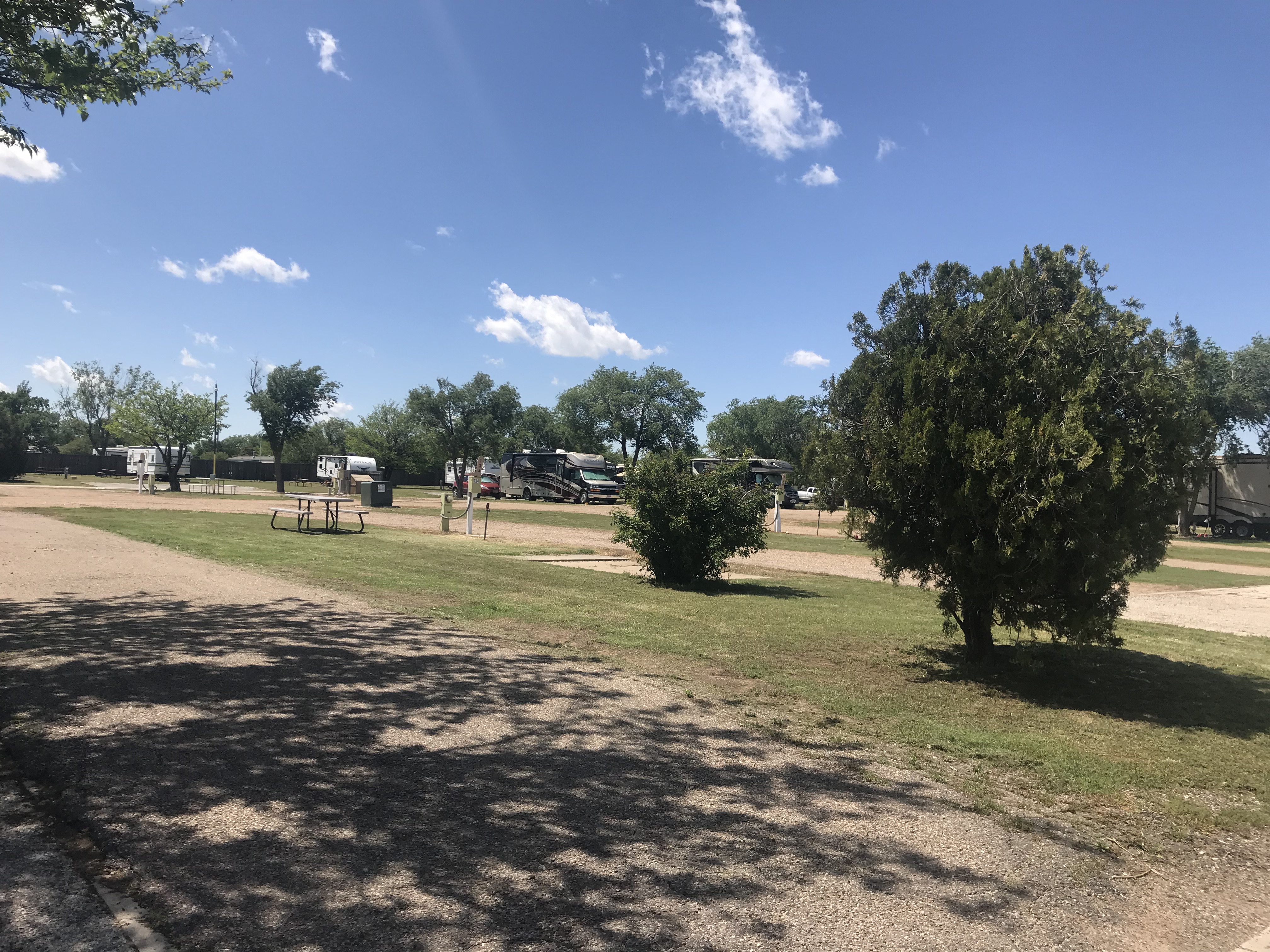 Setting: Large sites, mostly pull-thru’s but there is someone in front of or behind you so only pull thru if you are there first. Guided help to your site. Level gravel surrounded by grass. Power good water ater pressure is 85lbs. be sure you use a regulatory. Indoor swimming pool, hot tub and 3 fenced in dog walk. Walking distance (across the street) to a water park. Friendly staff. AT&T Cell & wifi ok but slow. Free coffee and donuts in the morning. Although we didn’t utilize it, they have a free limo shuttle service to the Big Texan Steak Ranch restaurant. We will stay again when in the area.