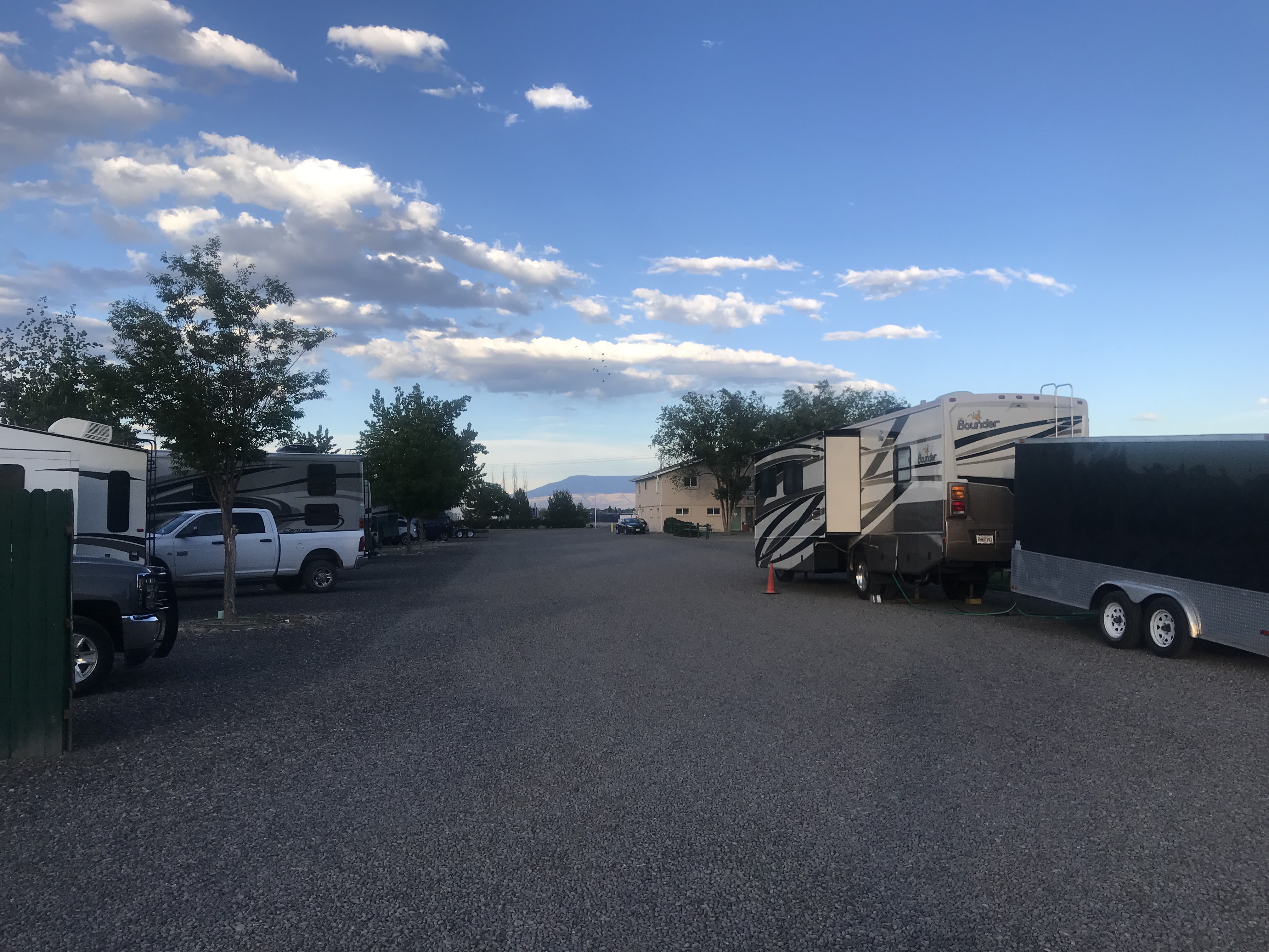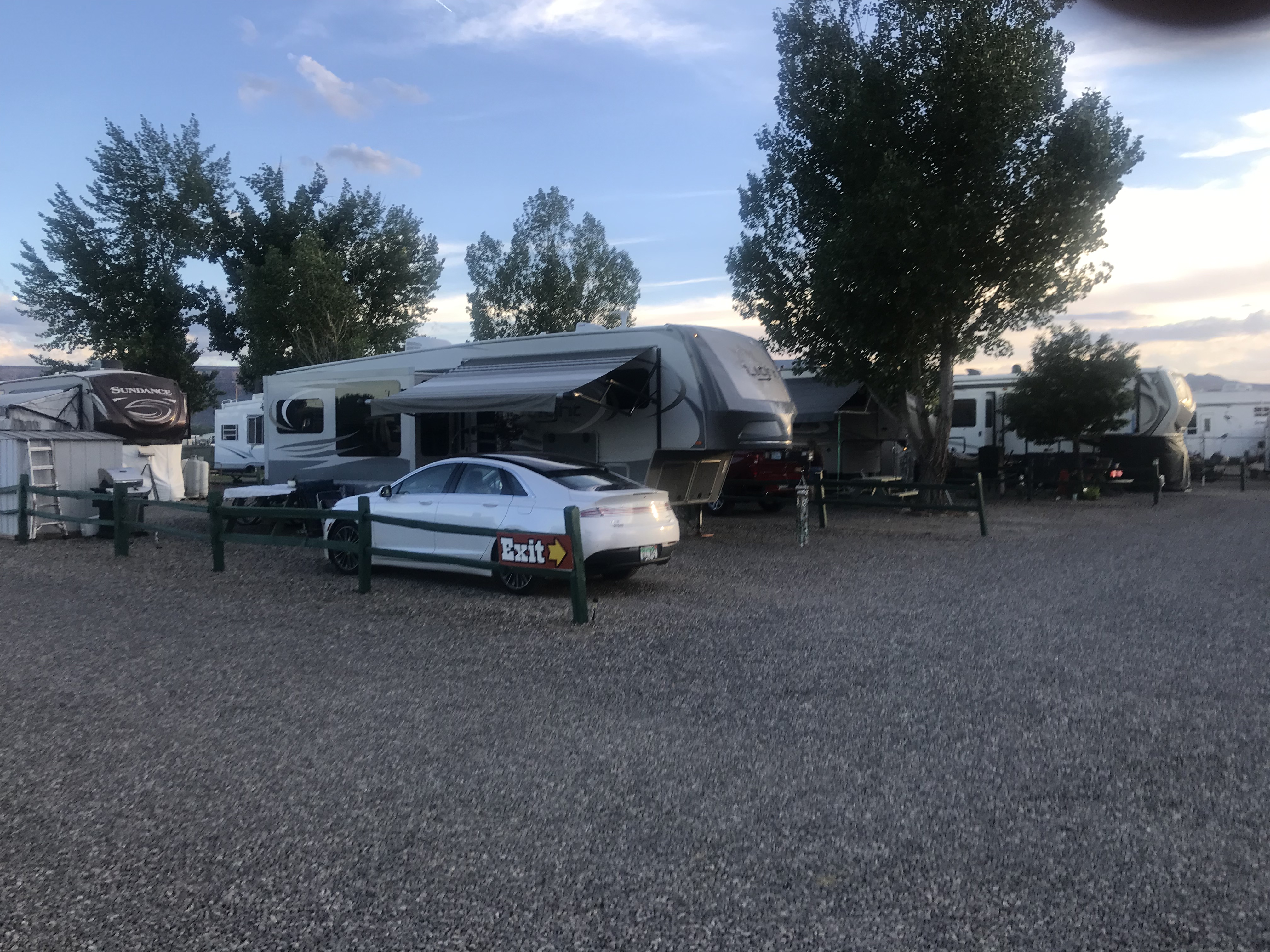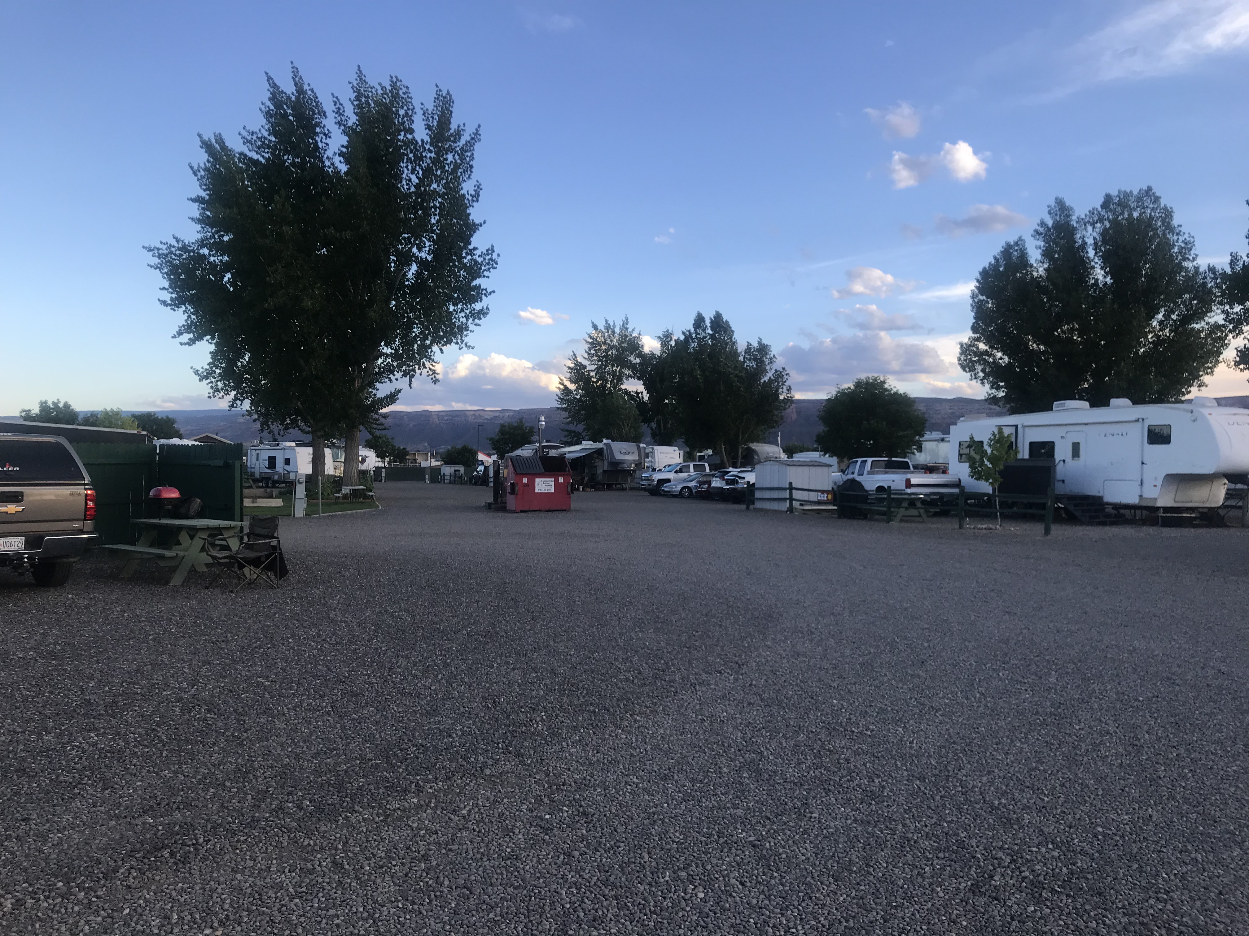 Setting: We stayed in Grand Junction for six nights on our way to Idaho Falls . The park is easy to find neat Love’s and Pilot truck stops. It is short drive into Grand Junction where there is a wide verity of shopping and restruants. The park and the RV sites are level gravel with room for parking of tow next to RV. Would have given a higher rating except for pricing of $53.88 seemed excessive for the amenities if back in this area would probably look elsewhere.
